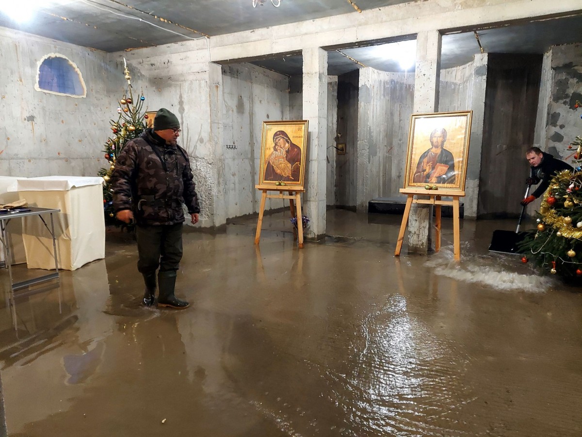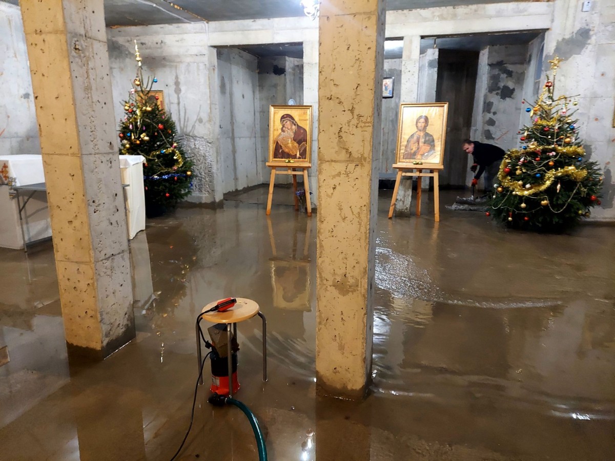 Zalanie zmusiło nas do przeniesienia wszystkich przedmiotów cerkiewnych z powrotem do drewnianej świątyni. W ostatnią niedzielę wierni ściśnięci jak przysłowiowe sardynki uczestniczyli w Boskiej Liturgii.