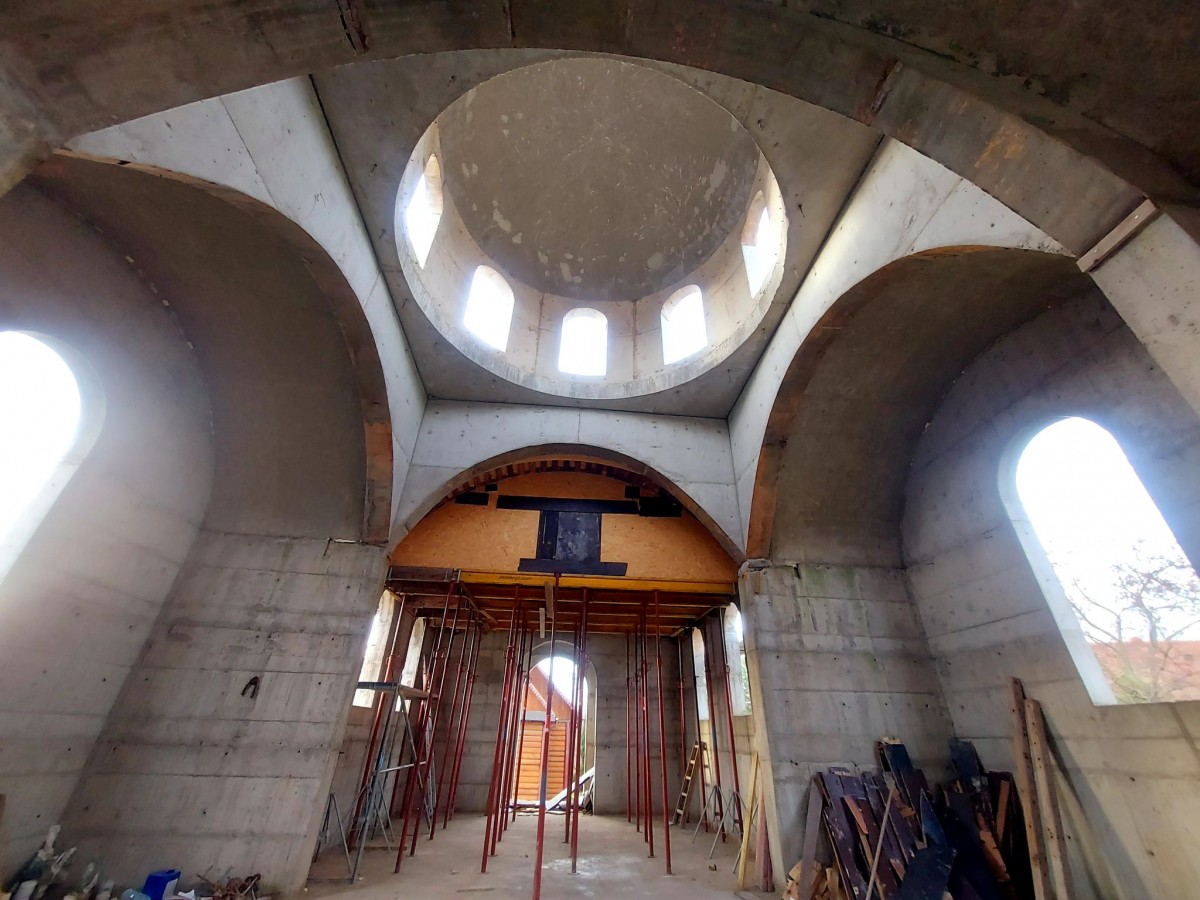 Przewidziane prace na wiosnę tego roku to: nakrycie kopuły blachą i zwieńczenie jej krzyżem, montaż stolarki okiennej w bębnie kopuły, ocieplenie styropianem i otynkowanie bębna kopuły oraz pendentywów ją podtrzymujących. Późniejszym etapem będzie odeskowanie i ocieplenie wełną budowlaną wszystkich sklepień i pokrycie ich blachą ocynkowaną.