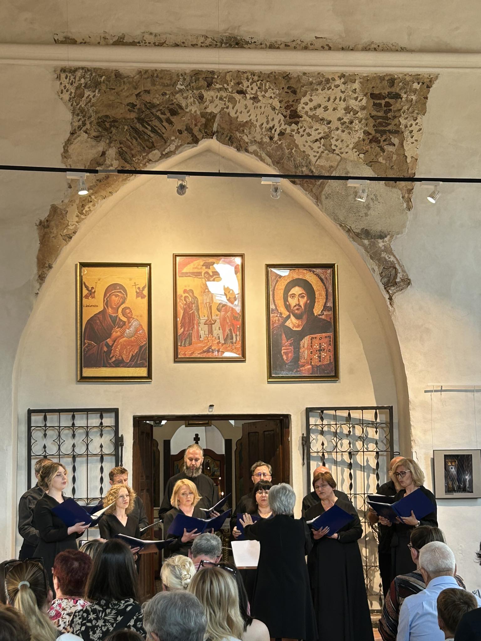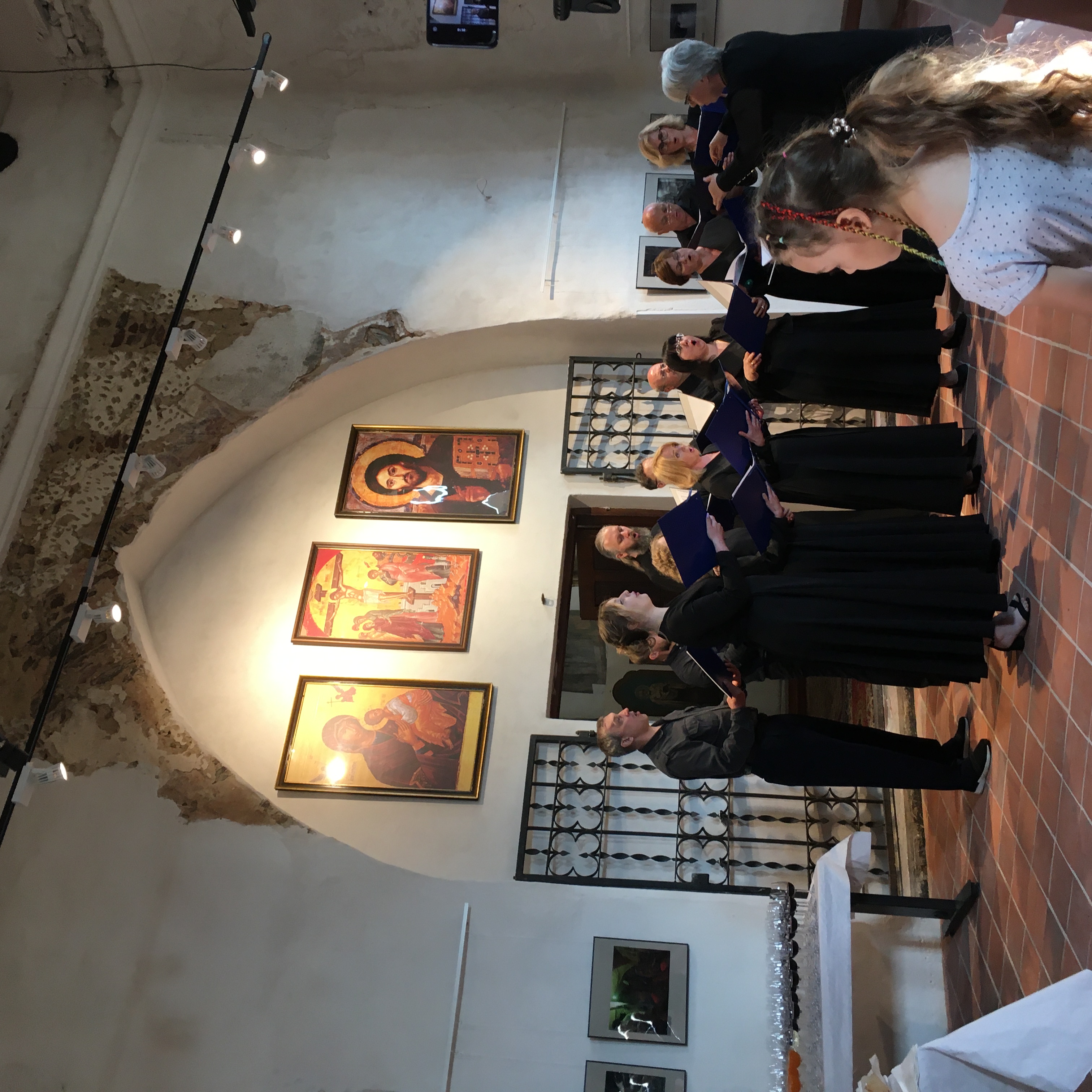 Sobotnie popołudnie w „Galerii przy Cerkwi” rozpoczęliśmy od wieczornego nabożeństwa i wyjątkowego koncertu Chóru św. Jerzego z Ząbkowic Śląskich. Nasi Goście mogli doświadczyć po raz kolejny przepiękny śpiew głosowy w języku staro-cerkiewno słowiańskim, a także w języku greckim. Były to pieśni liturgiczne i nie tylko, bo na koniec koncertu była niespodzianka. Chór w swojej świetności zaśpiewał w własnej aranżacji starą polską pieśń „Bogurodzica”.