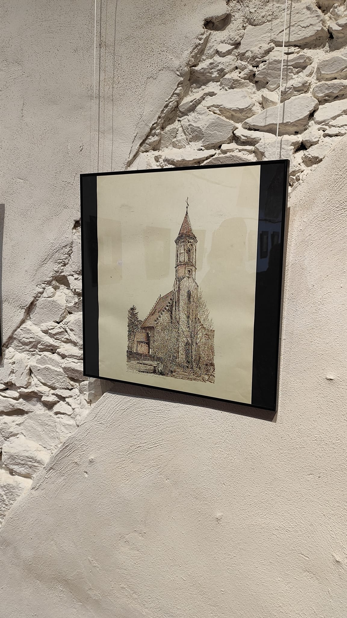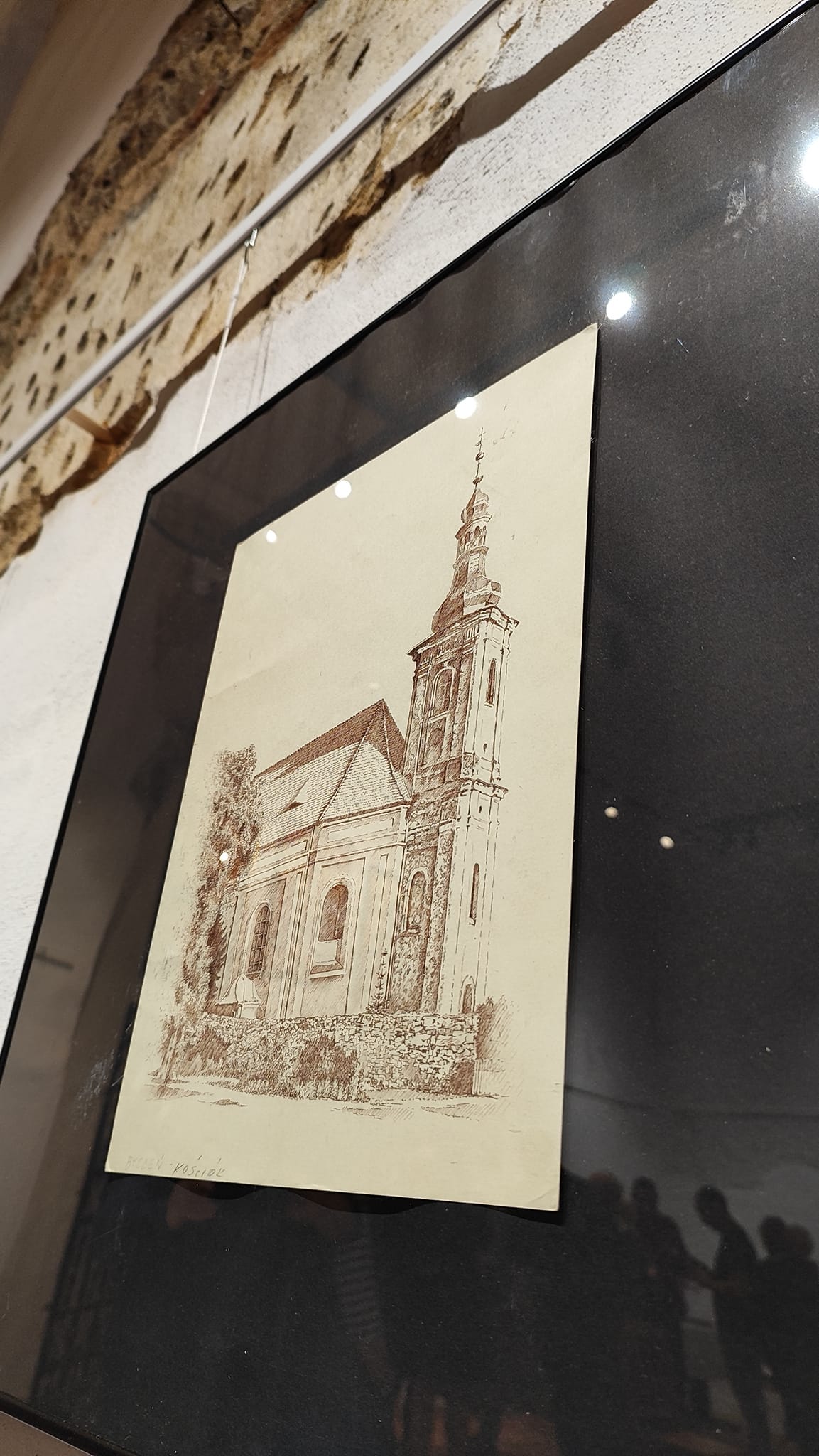 Rysunek piórkiem to dzieło sztuki częściowo lub w całości wykonane linearną metodą tworzenia. Do rysowania piórkiem używa się tuszu lub atramentu oraz najczęściej gładkiego papieru. Ta technika rysunkowa wymaga operowania kreską (tzw. kreskowanie) lub cieniowaniem. Dzięki dopełnianiu konturów zróżnicowaniem tonalnym rysownik chce osiągnąć trójwymiarową formę na papierze. Jest ona przez niego modelowana za pomocą blisko zestawionych ze sobą pociągnięć piórkiem w postaci cieniowanych pól lub cieniowanych, równoległych i przecinających się linii. W celu osiągnięcia mocniejszego waloru stosuje się gęściej kładzione kreski, które jednak nie mogą zlewać się w plamę. Większość wykonywanych tą techniką rysunków powstaje poprzez nanoszenie ważnych granic figur bądź elementów krajobrazu za pomocą linii ciągniętej piórkiem. Można także podmalowywać rysunek (lawowanie pędzlem) lub też nanosić warstwę koloru na rozległą powierzchnię. Różnicowanie efektów końcowych można osiągnąć dzięki operowaniu różnymi tuszami (węglowym, ciemnobrunatnym zwanym bistrem i tzw. atramentem galusowym). W trakcie otwarcia wernisażu Chór św. Jerzego, w pomniejszonym składzie, zaśpiewał kilka utworów dwugłosowych w języku staro-cerkiewno słowiańskim.