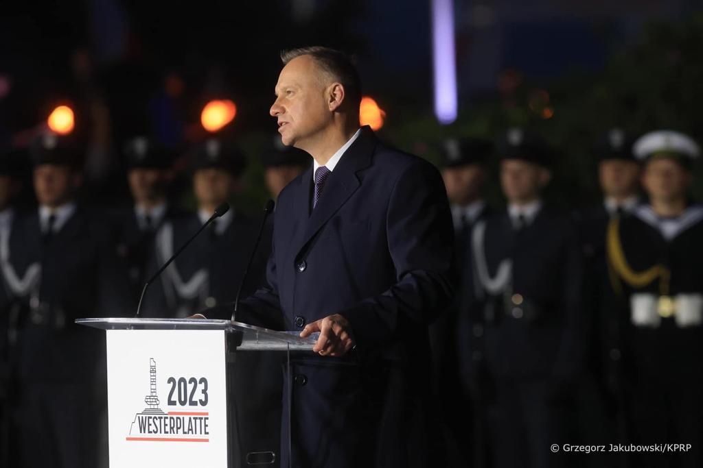 “Jakże przejmujący jest ten moment kiedy słyszymy dźwięk syren w momencie, kiedy padły pierwsze salwy. Możemy sobie tylko wyobrazić co oznaczała tamta salwa w tamtym momencie. Wystarczy powiedzieć, że salut armatni, który zabrzmiał przed chwilą to zaledwie wystrzał z niewielkich dział w porównaniu z tym czego użył pancernik Schleswig-Holstein atakując polskich żołnierzy na Westerplatte. Na archiwalnych zdjęciach widać, że to była miazga. Nazwano to miejsce “małym Verdun”. Kompletnie zniszczone drzewa, zburzone praktycznie wszystkie budynki, zryta tysiącami bomb ziemia. I taka niezwykła bohaterska obrona, taka twarda, niezłomna, legendarna.” - mówił prezydent Andrzej Duda.
