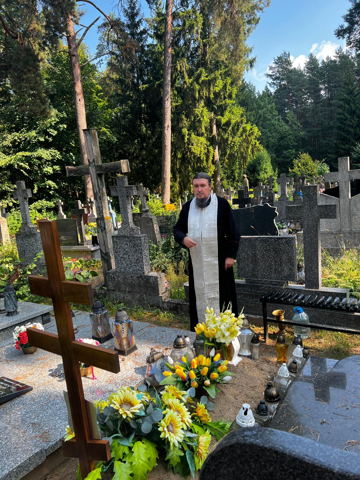W sobotę 2 września Jego Ekscelencja abp Jerzy odwiedził miejsce spoczynku śp. Grzegorza Zinkiewicza - jednego z najwybitniejszych polskich ikonografów. Na grobie Władyka sprawował litiję za duszę zmarłego.