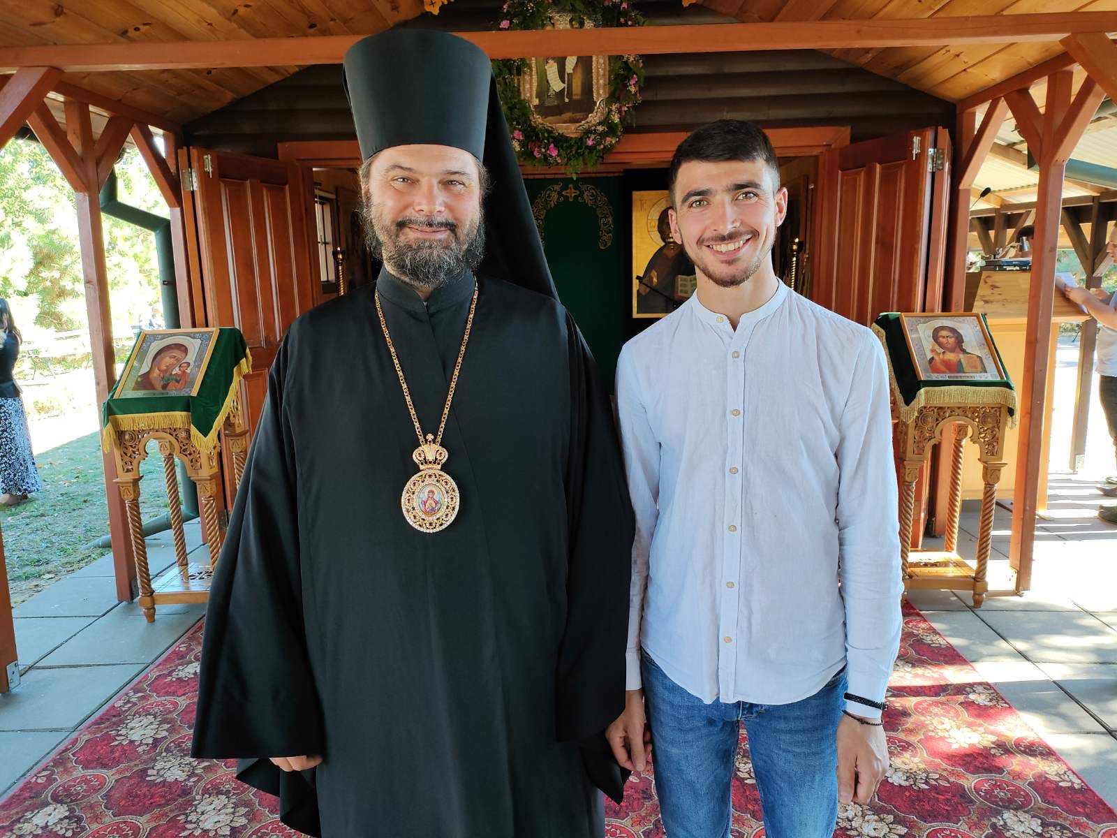 15.09.Rano powracamy do Skitu na świąteczną Liturgię. Przy pięknej pogodzie w otoczeniu bajecznego krajobrazu , pod przewodnictwem biskupa Supraskiego Andrzeja ,duchowieństwa i mnóstwa wiernych wznosimy nasze modlitwy do św św Antonia i Teodozja Kijowsko- Peczorskich, wszyscy pielgrzymi przystępują do sakramentu Eucharystii . Nie zabrakło również świątecznego poczęstunku.