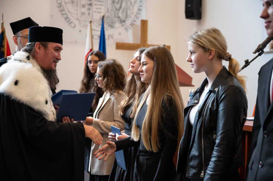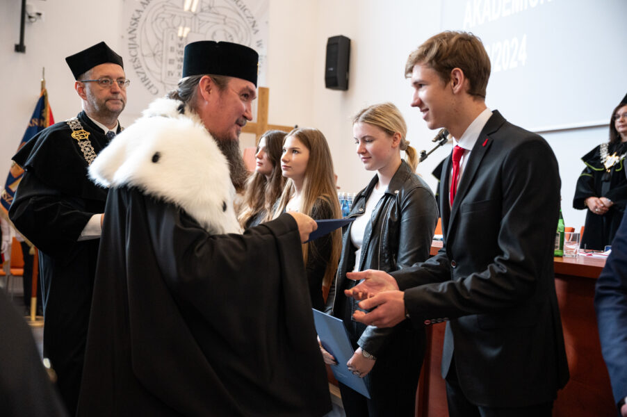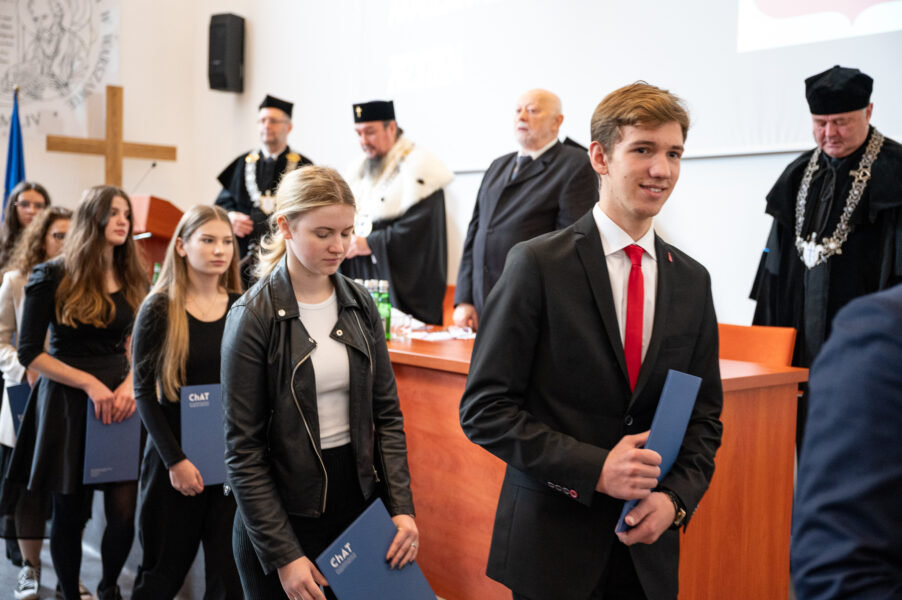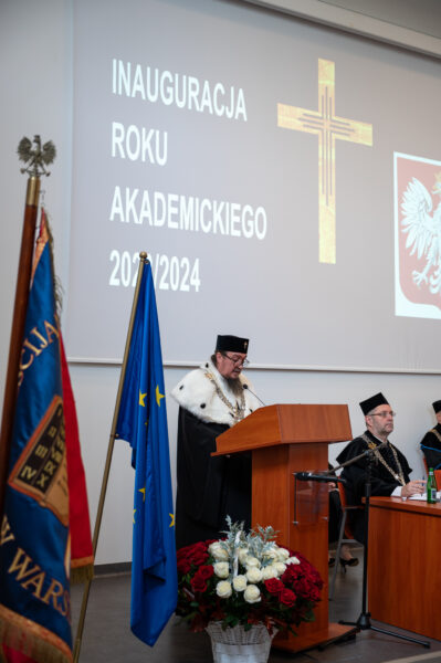 Na zakończenie wystąpienia doceniając wysiłek i zaangażowanie pracowników uczelnie JM Rektor stwierdził: życzę wszystkim nam, aby był on nieco spokojniejszy w każdym wymiarze – społecznym, politycznym i geopolitycznym. Pomyślmy o tych, którzy rozpoczynają swoje studia na pierwszym roku i mają prawo doświadczyć piękna życia studenckiego. Ich szczególnie witam w murach Chrześcijańskiej Akademii Teologicznej w Warszawie. Bądźcie rozsądnie krytycznymi studentami i obywatelami względem otaczającej Was rzeczywistości. Nie dajcie sobie zabrać pięknego spojrzenia na zdrowe, mądre i spokojne życie. Miejcie świadomość, że jest ono Wasze i że nie kończy się wraz z upływem studenckich lat. I że jest ono oparte o zasadę zależności przyczyn i skutków, a to rodzi potrzebę świadomej odpowiedzialności za wszystko – za wasze słowa, za wasze czyny i za wasze decyzje. Oby zawsze były one jak najbardziej trafne. Życzę, aby studia w Chrześcijańskiej Akademii Teologicznej ukształtowały Was na inteligentnych, mądrych i myślących ludzi.