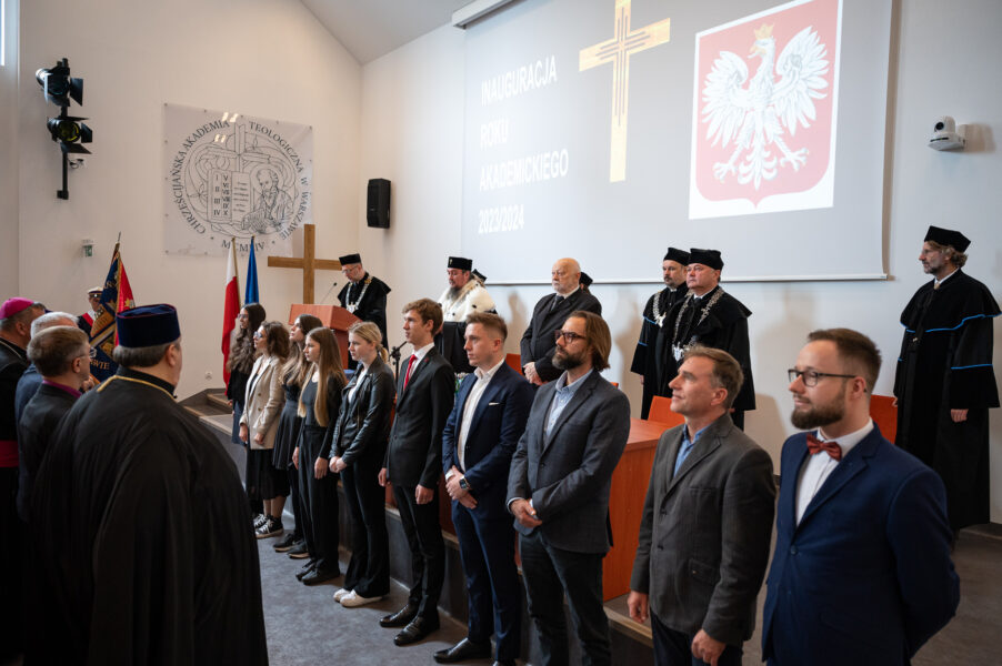 O godzinie 10:00 odśpiewaniem Hymnu państwowego rozpoczęła się uroczystość Inauguracji roku akademickiego 2023/2024 w Chrześcijańskiej Akademii Teologicznej w Warszawie.