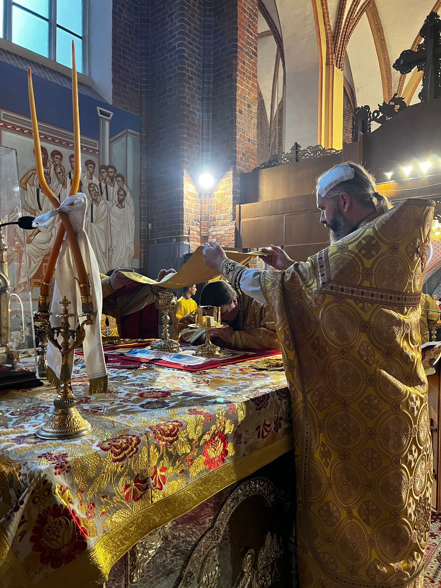 Boską Liturgię śpiewem upiększył chór katedry pod dyr. lektora Dawida Dubeca.