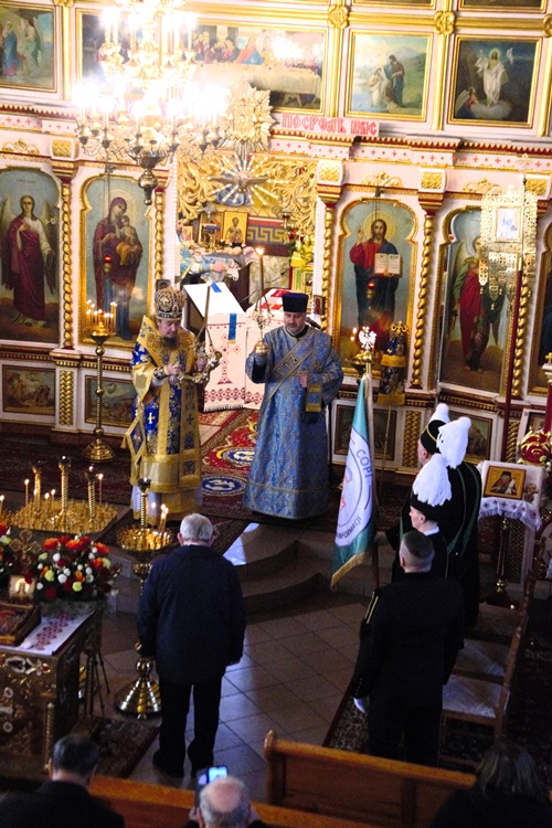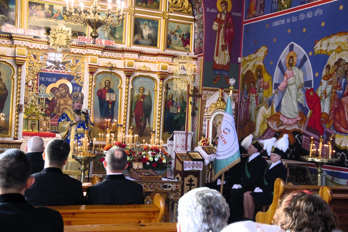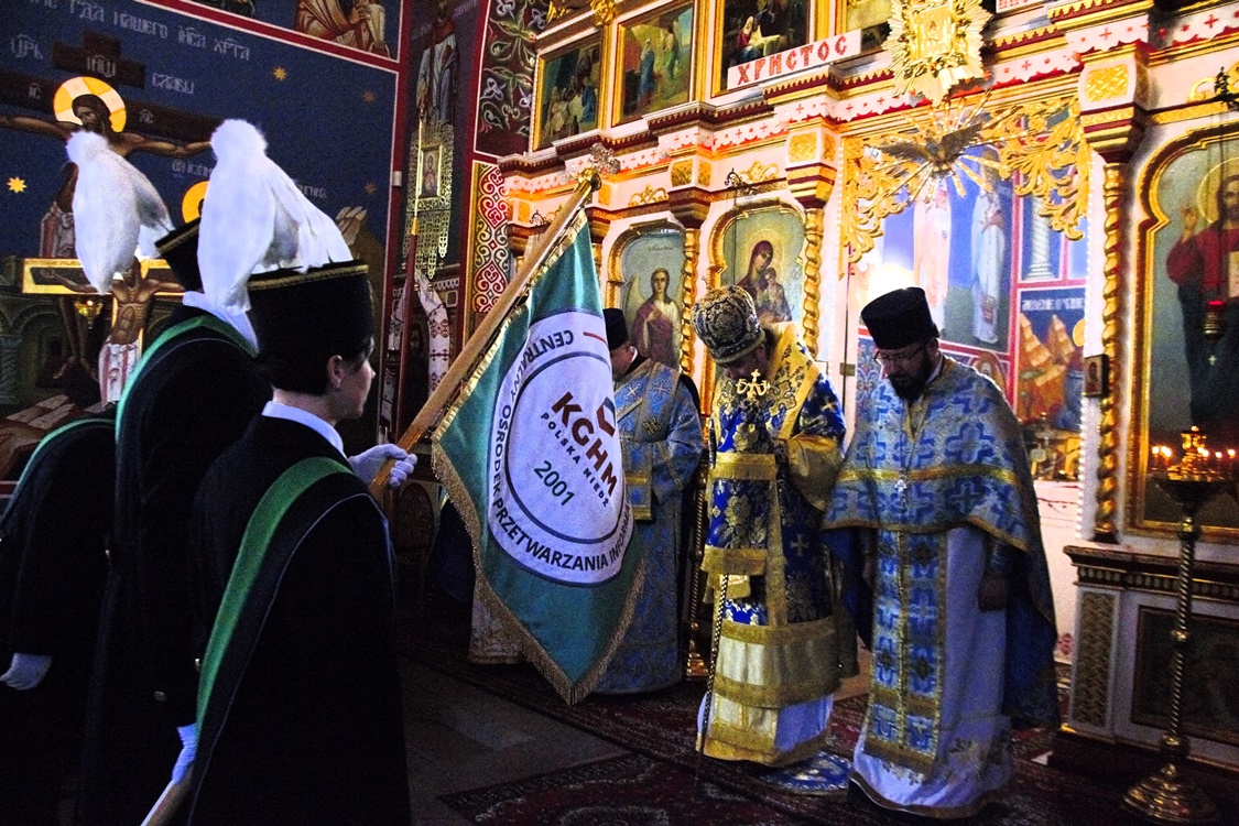 W poniedziałek 4 grudnia wczesnym rankiem mieszkańcy Lubina mieli okazję podziwiać ubraną w galowe stroje orkiestrę górniczą, która w dzień Święta Braci Górniczej dźwiękami instrumentów wzywała swoich przełożonych do świątecznych uroczystości. Następnie o godz. 9:00 w Lubinie rozpoczęły nabożeństwa w intencji Braci Górniczej i ich rodzin. Tegorocznej Świętej Boskiej Liturgii dla Dolnośląskiej Prawosławnej Braci Górniczej przewodniczył Jego Ekscelencja, Najprzewielebniejszy Jerzy, Ordynariusz Diecezji Wrocławskiej i Szczecińskiej, Prawosławny Ordynariusz Wojskowy w Parafii Prawosławnej Świętej Trójcy w Lubinie. U progu Świątyni Władykę przywitał Komitet Górniczy w osobach Mariana Szkurata, Ireneusz Szpytko i Adama Herbuta, którzy w słowach powitania podziękował Ekscelencji za przybycie na świąteczne uroczystości Barbórki, za duchową opiekę i modlitwę za cały Stan Górniczy. Górnicy wręczyli Władyce także górniczy upominek. Następnie słowa powitania i podziękowania za przewodniczenie w świętej Boskiej Liturgii oraz modlitwę za cały Stan Górniczy skierował do Ekscelencji kapelan Dolnośląskiej Prawosławnej Braci Górniczej, proboszcz lubińskiej parafii ks. prot. Bogdan Repeła. Powitał dostojnych gości oraz wszystkich zebranych na tegorocznym barbórkowym święcie, w szeczególności: Dyrektora ds. Pracowniczych KGHM Polska Miedź S.A O/ZG Polkowice-Sieroszowice Pana Łukasza Wereszczyńskiego, Dyrektora ds. Produkcji O/ZWR w Lubinie Pana Rafała Pępkowskiego, Dyrektora ds. Finansowych Huty Miedzi Cedynia, Pana Bogdana Droździaka, Doradcę Gabinetu Ministra Kultury, Ministerstwa Kultury i Dziedzictwa Narodowego, Pana Mateusza Powązkę oraz Poczty Sztandarowe Oddziału Zakładu Hydrotechnicznego KGHM Polska Miedź S.A w Lubinie i Oddziału Centralnego Ośrodka Przetwarzania Informacji KGHM Polska Miedź S.A w Lubinie oraz media społecznościowe TV KGHM Polska Miedź S.A Po komendzie wprowadzenia Pocztów Sztandarowych ks. prot. Bogdan Repeła poprosił Jego Ekscelencję Arcybiskupa Jerzego o przewodniczenie w nabożeństwie. Władyka w homilii skierowanej do wiernych i Braci Górniczej przybliżył szczególny wymiar życia liturgicznego, tak bardzo potrzebny dla każdego chrześcijanina, na istotę życia sakramentalnego, naszej obecności w Świętej Boskiej Liturgii i Eucharystii. Przybliżając święto Wprowadzenia do Świątyni Przenajświętszej Bogarodzicy podkreślił jego ponadczasowy charakter, ukazując na Rodziców Matki Bożej, Joachima i Annę, Ich oddanie i zaufanie Bogu, wiarę, pokorę i mądrość. Łaskę jaką otrzymali poprzez trwanie w ufności wobec Stwórcy oraz pragnienie wypełniania bożych przykazań w swoim życiu, a właściwie pełne oddanie się woli Bożej. Podkreślił jak ważny jest dla nas i całego kraju trud codziennej pracy Górników, prosił aby nie zapominali o codziennej modlitwie i zaufaniu do swojej niebiańskiej Patronki Świętej Barbary. Podkreślił jak ważną cechą każdego górnika jest wiara, szczególnie w obliczu potęgi żywiołów z którymi spotykają się na co dzień w wykonywanych obowiązkach. Jak budujące są słowa przywitania a zarazem modlitwy górników „Szczęść Boże” rozpoczynających dzień pracy, aby z Bożą pomocą zakończyli ją zawsze szczęśliwie wracając pełni sił do swych rodzin. Zakończenie tegorocznych uroczystości święta miało podniosły charakter jeszcze z jednego powodu, odznaczenia Pana Mateusza Powązki przez Jego Ekscelencję Arcybiskupa Jerzego najwyższym odznaczeniem Polskiego Autokefalicznego Kościoła Prawosławnego w Polsce, Orderem Św. Równej Apostołom Marii Magdaleny III Stopnia za pracę na rzecz ratowania dziedzictwa kulturowego Prawosławnej Diecezji Wrocławskiej i Szczecińskiej. Na zakończenie uroczystości Władyka jeszcze raz podziękował wszystkim za wspólną modlitwę życząc Bożego Błogosławieństwa i wyraził nadzieję na kolejne spotkanie z Bracią Górniczą w przyszłym roku. Ks. Bogdan Repeła, proboszcz lubińskiej cerkwi na zakończenie podziękował także Ekscelencji za przewodniczenie w tegorocznych uroczystościach górniczego święta, a wszystkim zebranym i całemu Górniczemu Stanowi złożył najserdeczniejsze życzenia, zdrowia oraz wszelkiej pomyślności i opieki Świętej Barbary w całym roku, przekazując na pamiątkę wszystkim zebranym nowowydany przez lubińską parafię Akatyst do Świętej Barbary, z prośbą o modlitwę, aby wstawiennictwo i opieka Świętej zawsze towarzyszyły w trudach codziennej pracy. Podziękowania skierowano także dla chóru parafialnego za piękny śpiew i ogromny wysiłek włożony w przygotowanie święta na czele z panią dyrygent Anną Andrianow. Dopełnieniem było zaproszenie wszystkich na wspólną agapę, a także na przyszłoroczne centralne uroczystości barbórkowe do Lubina.