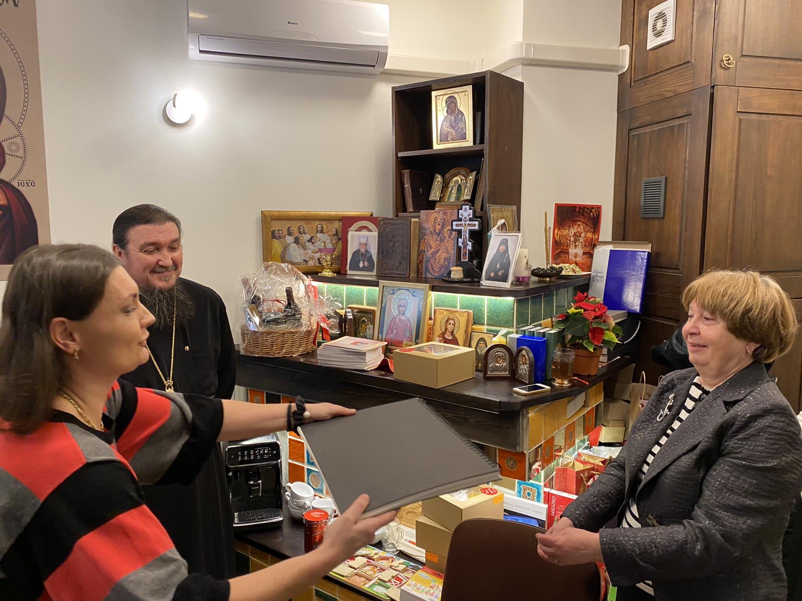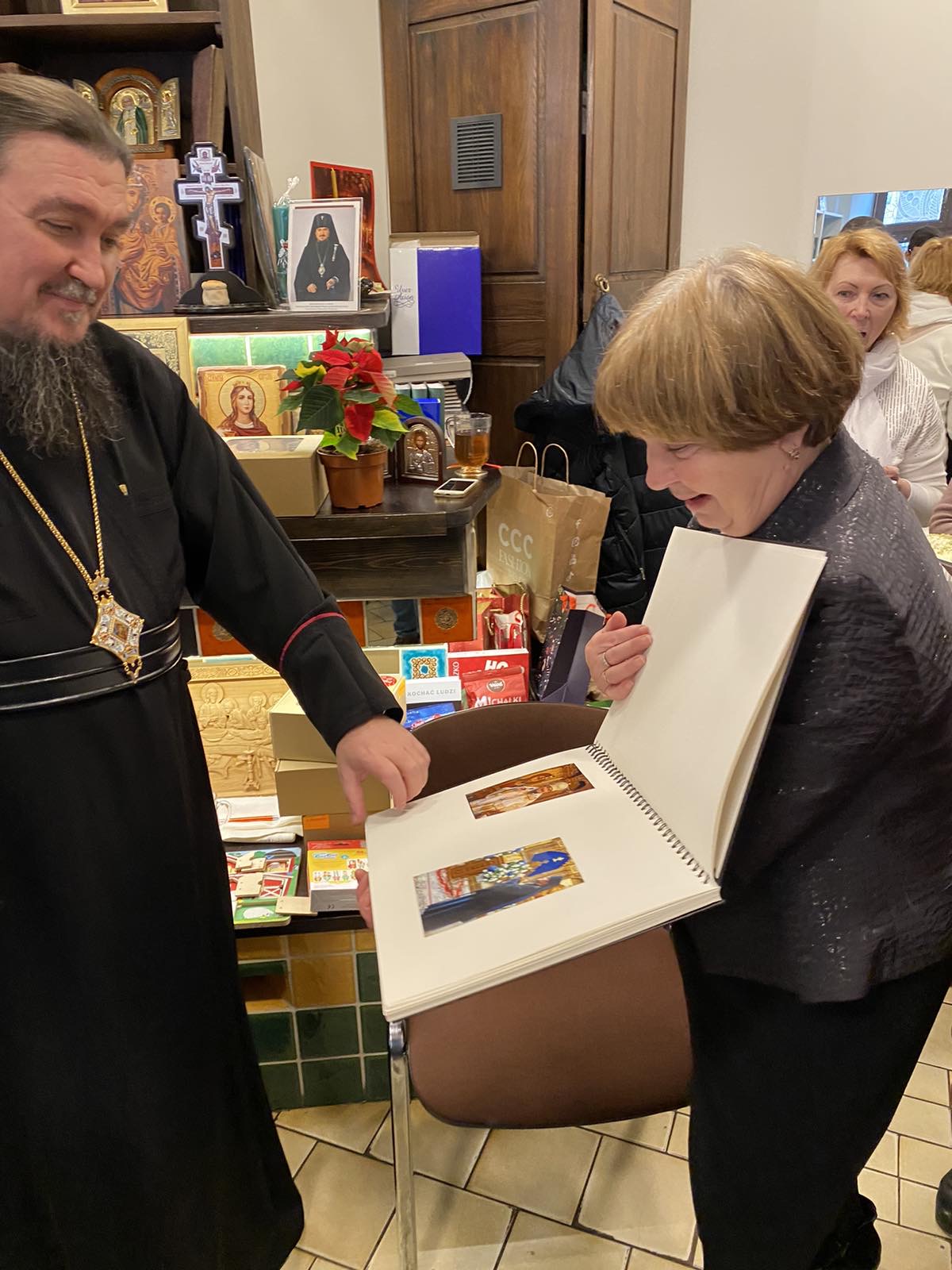 Po liturgii w siedzibie siestryczestwa – cerkiewnym sklepiku „Prosfora”, odbyło się rodzinne spotkanie przyjaciół i miłośników siestryczestwa. Każdy uczestnik otrzymał od Władyki, wydrukowany z okazji „Barbórki” Lubińskiej, akatyst do Świętej Barbary z przewodnim słowem Władyki.