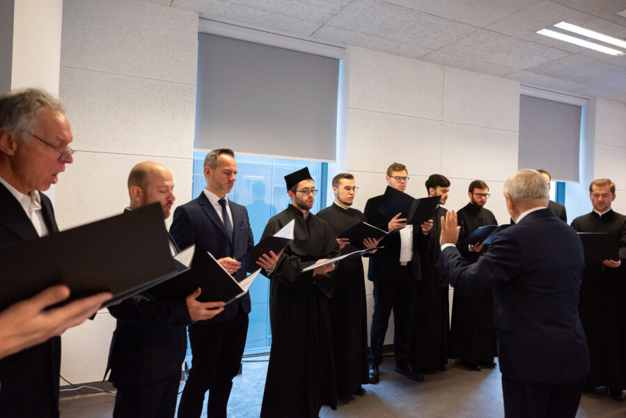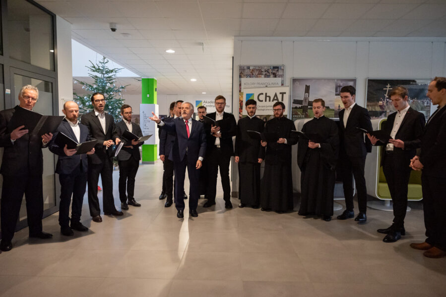 W tym wyjątkowym dniu wysłuchaliśmy kolęd w wykonaniu męskiego chóru Chrześcijańskiej Akademii Teologicznej w Warszawie pod dyrekcją prof. Włodzimierza Wołosiuka.