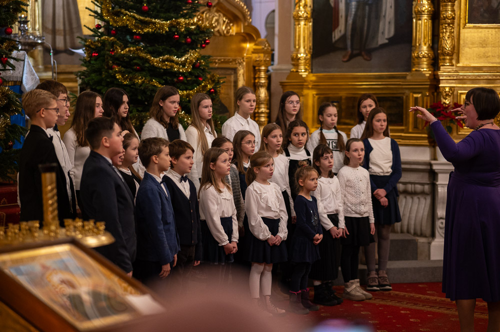W trakcie wieczoru wysłuchano kolęd polskich, ukraińskich, białoruskich oraz żołnierskiej aranżacji kolędy „Wśród nocnej ciszy” dedykowanej pokojowi na świecie. Tego dnia zaprezentowały się następujące chóry: dziecięcy katedry św. Marii Magdaleny w Warszawie (dyrygent Marta Czaban), Rodzinne trio z parafii św. Aleksandry w Stanisławowie (dyrygent Anastazja Goriełow), Chór młodzieżowy katedry św. Marii Magdaleny w Warszawie (dyrygent protodiakon Rafał Dmitruk), Męski chór wojskowy „Stratos” (dyrygent ks. prot. ppłk. Łukasz Godun), Chór katedry św. Aleksandra w Łodzi (dyrygent Elżbieta Weremiejewicz), Chór duchowieństwa Diecezji Lubelsko-Chełmskiej (dyrygent diakon Ivan Natiażko), Chór katedry św. Marii Magdaleny w Warszawie (dyrygent protodiakon dr Sergiusz Bowtruczuk). Występy chórów zwieńczył fragment nabożeństwa w aranżacji ks. Aleksandra Maszkowa: „dzisiaj aniołowie weselą się w niebie, radują się ludzie na ziemi, całe stworzenie jest ruchu, albowiem odtąd Chrystus króluje na wieki” w wykonaniu chóru katedry.