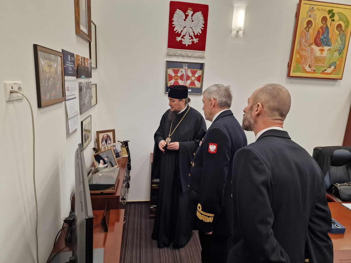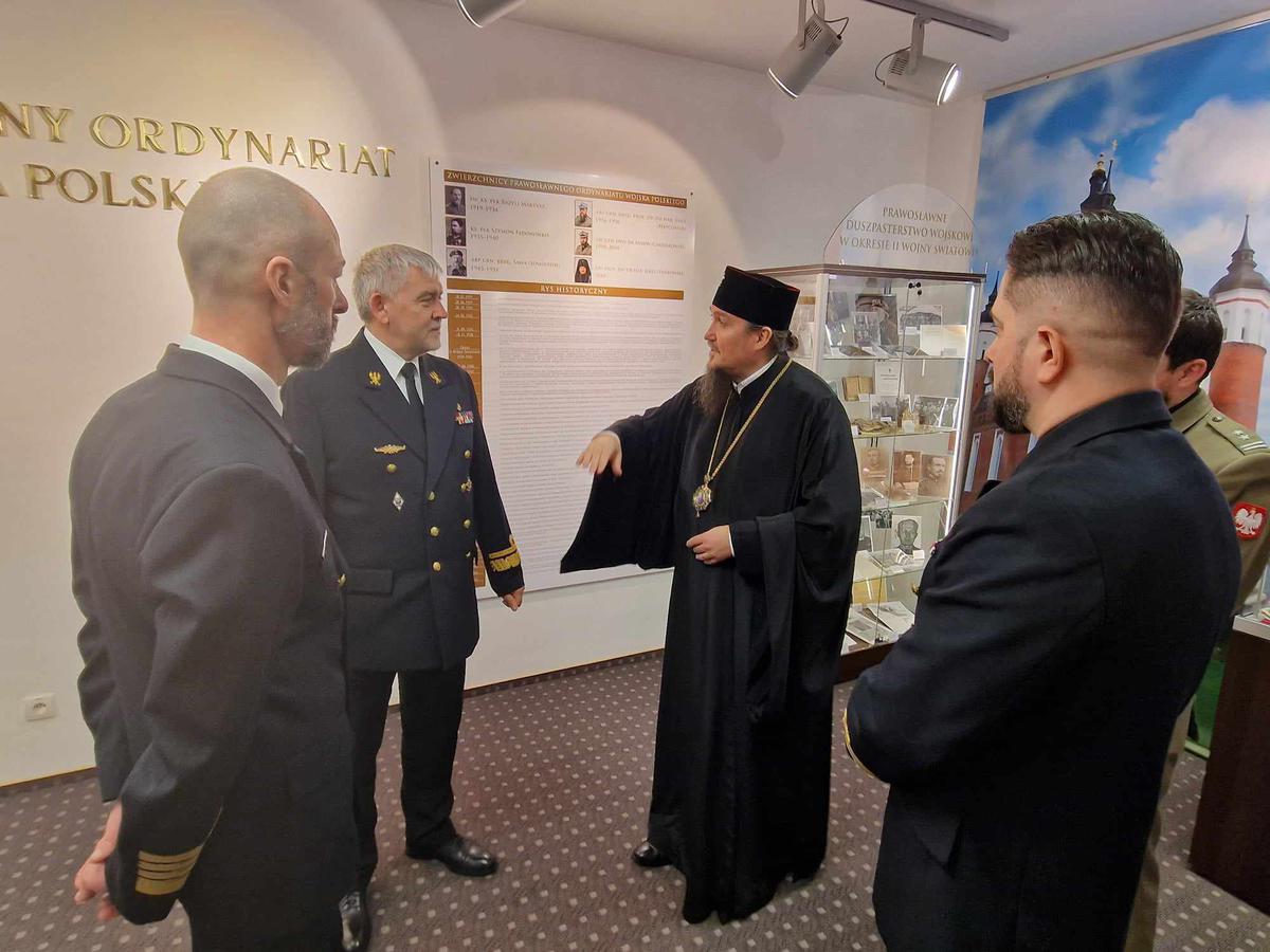Arcybiskup Jerzy przywitał szanownych gości u progu katedralnej świątyni, gdzie przybliżył krótką historię jej powstania. Następnie wojskowy ordynariusz oprowadził delegację po siedzibie prawosławnego ordynariatu i sali tradycji oraz zapoznał z charakterystyką funkcjonowania naszej instytucji.