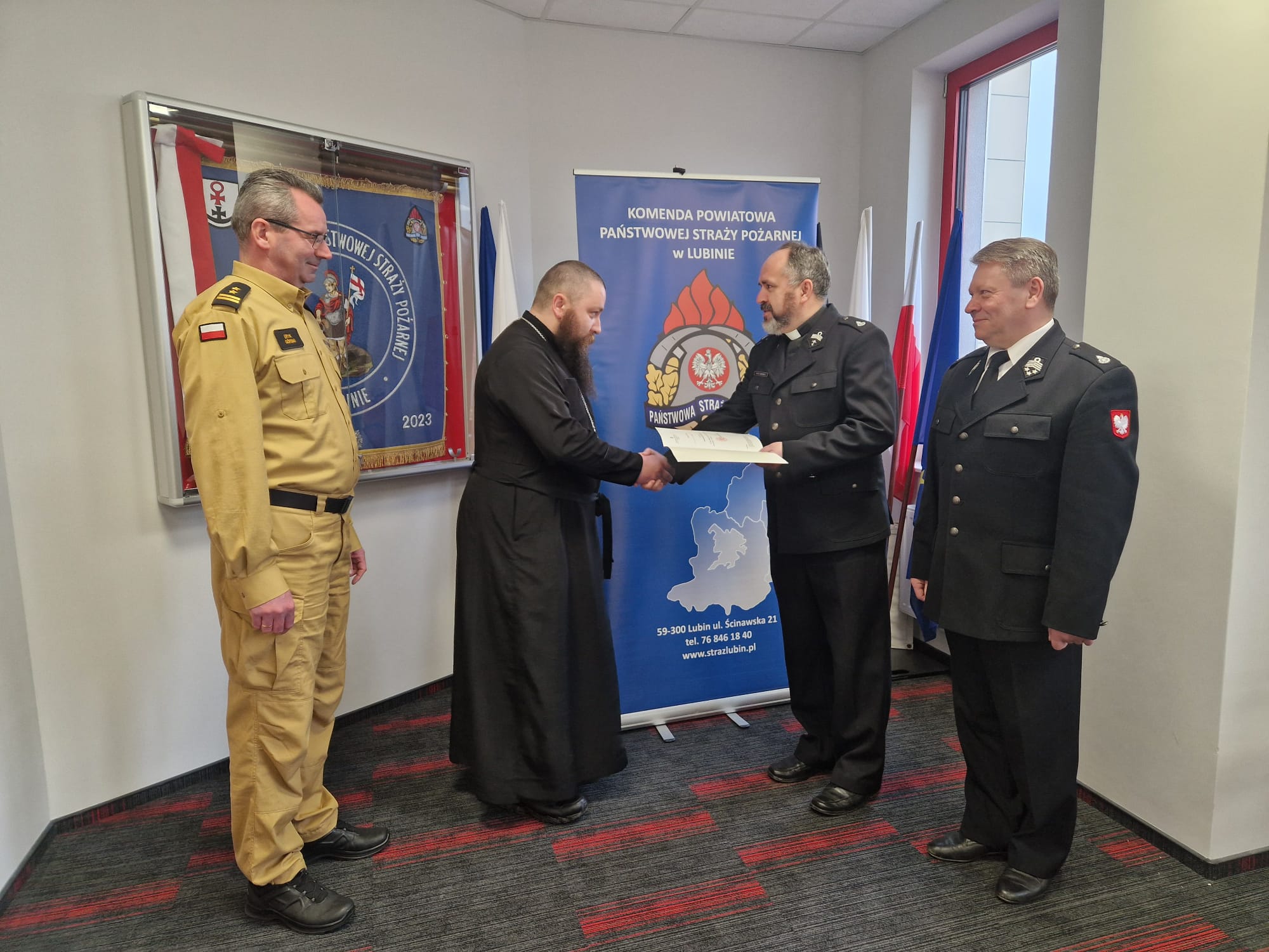 5 marca ks. Marek Bonifatiuk dolnośląski kapelan straży pożarnej złożył wizytę duszpasterską w Komendzie Powiatowej Państwowej Straży Pożarnej w Lubinie.