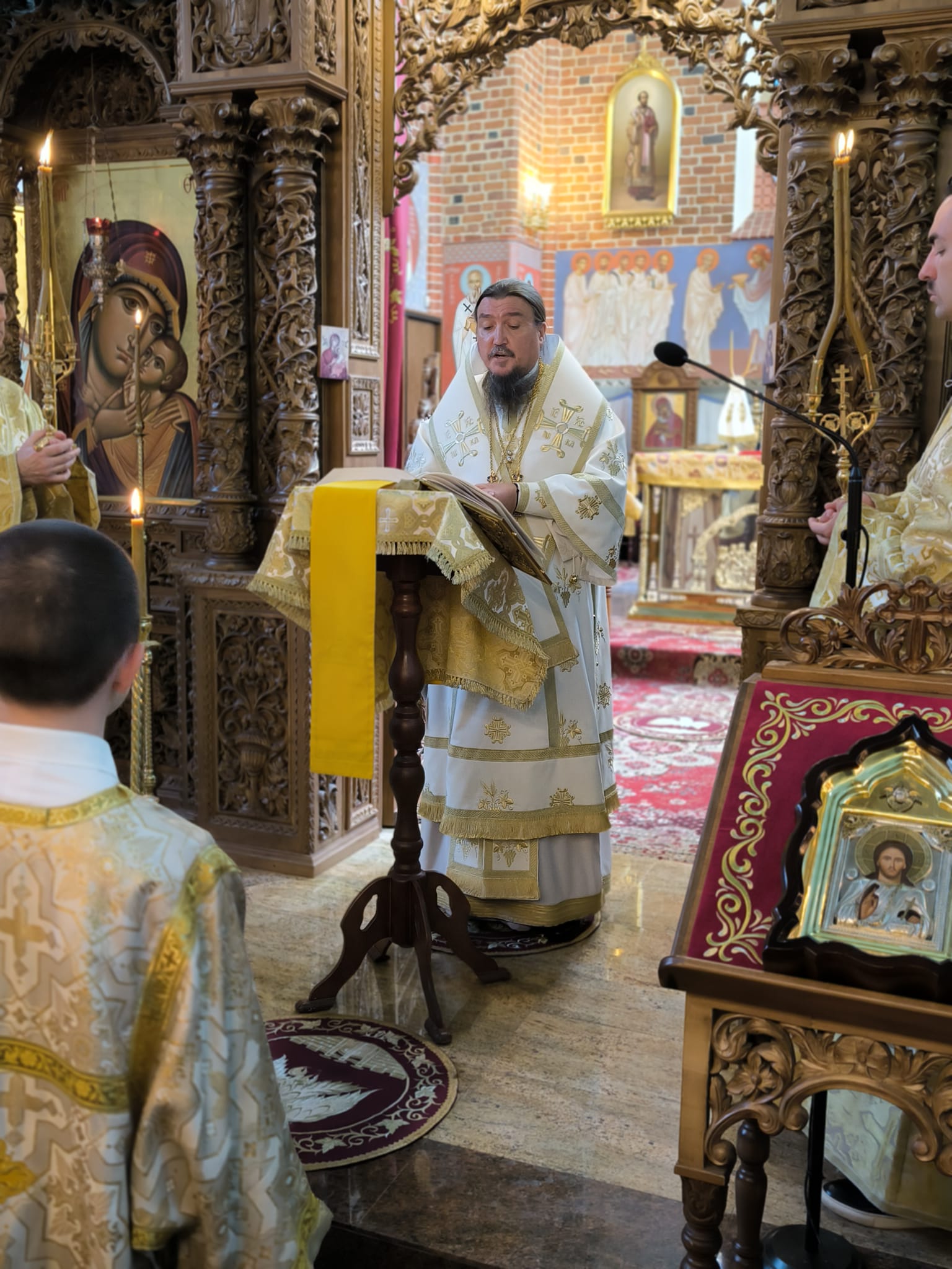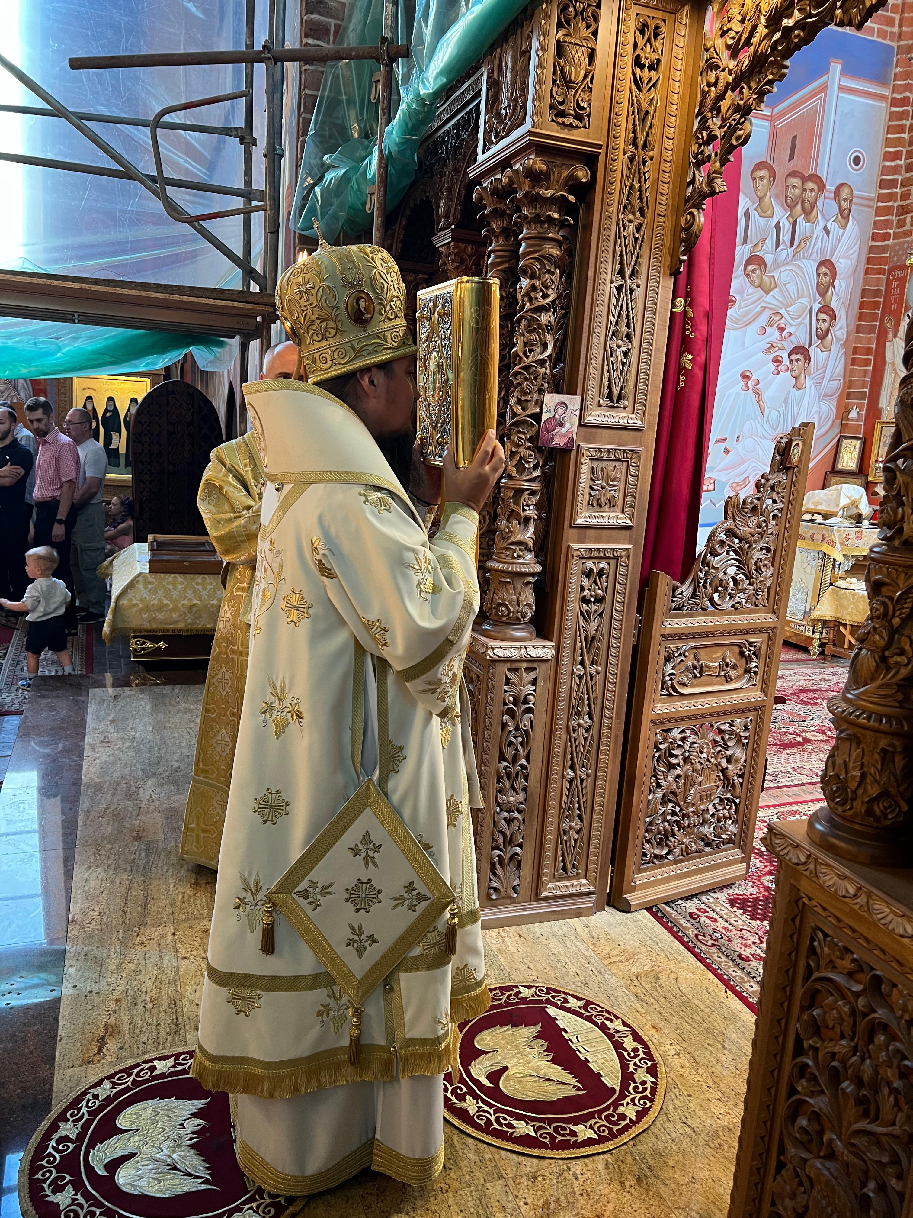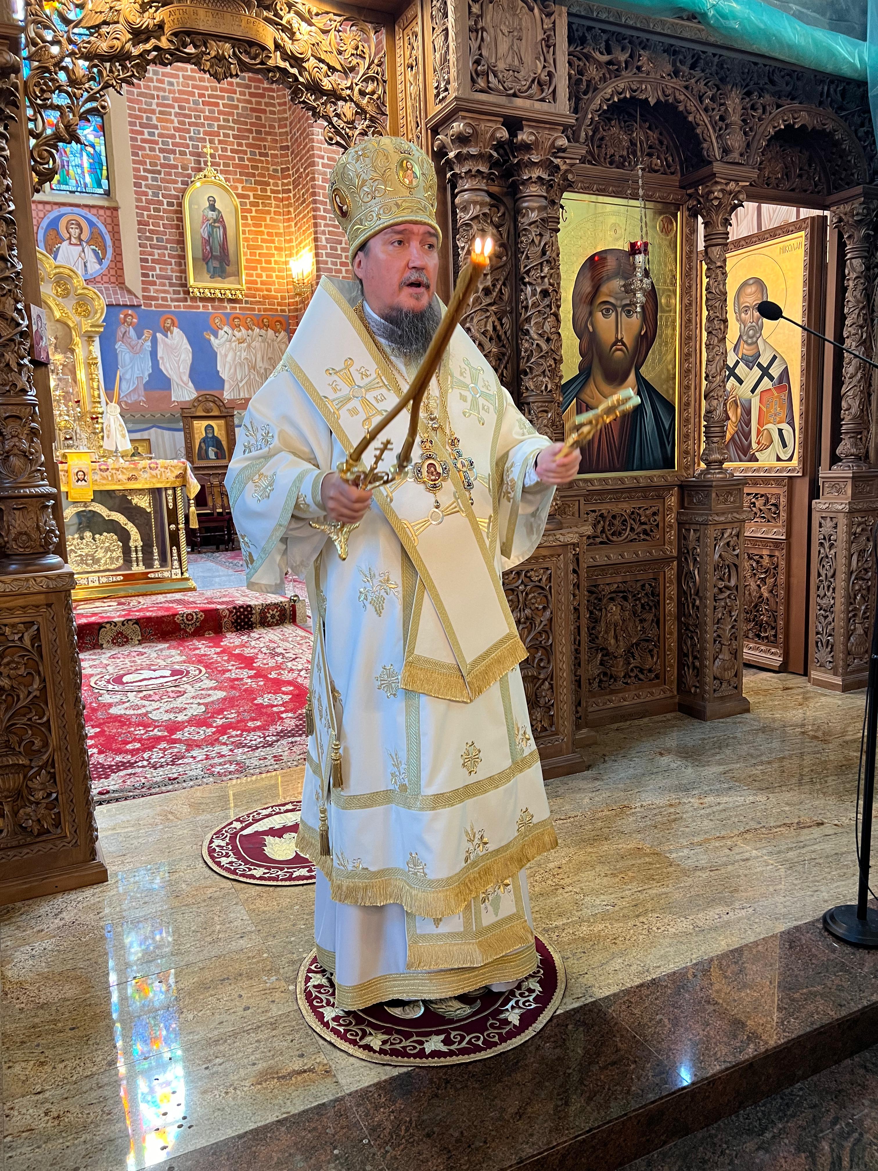 Boską Liturgię, podczas której wierni tłumnie przystąpili do misterium spowiedzi oraz eucharystii, modlitewnym śpiewem upiększył chór katedry pod dyr. lektora Dawida Dubeca.