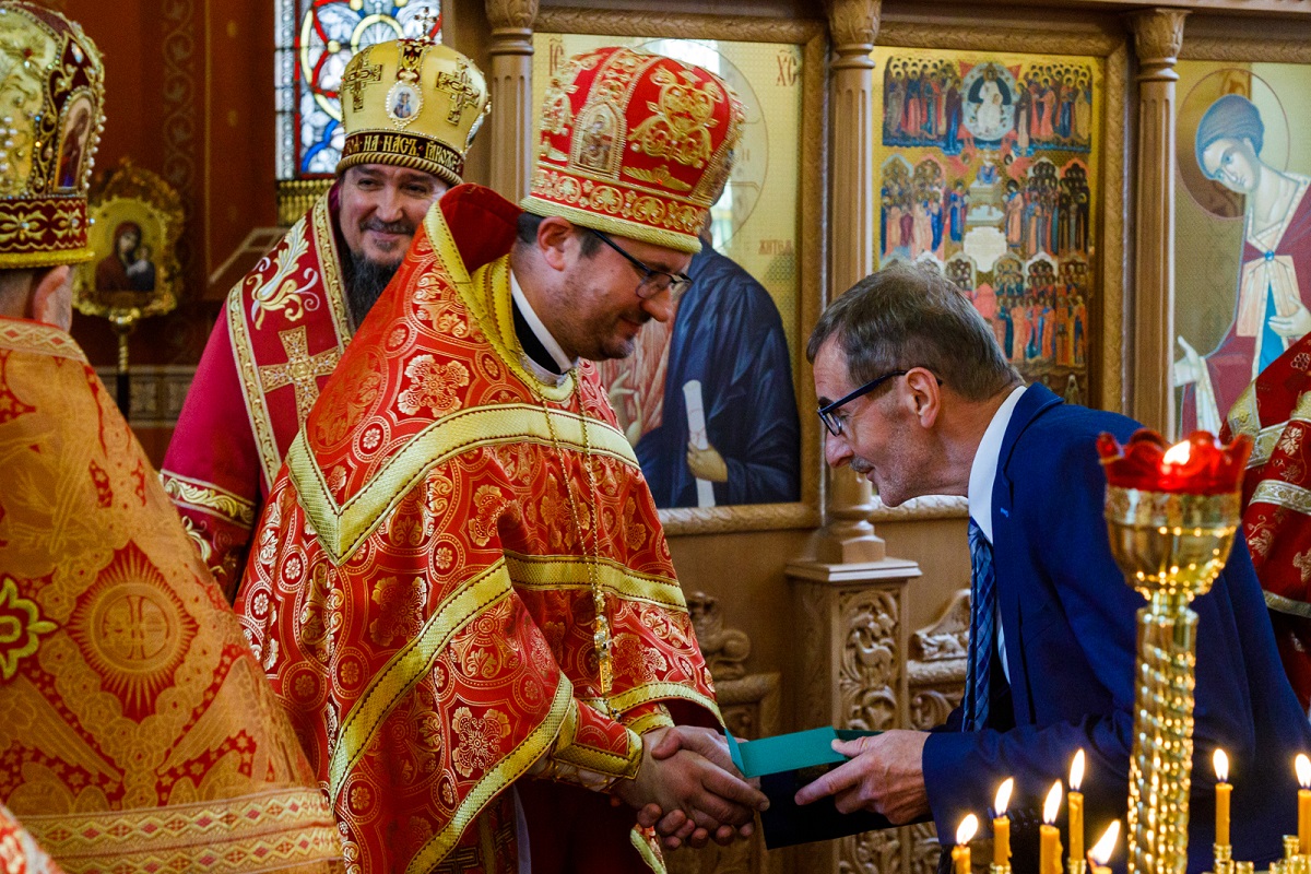 Biskupim Krzyżem z ozdobami i medalem stulecia autokefalii został odznaczony ks. Proboszcz mitrat Leon Karpiuk. Słowa wdzięczności skierował abp Jerzy do ks. mitrata Jarosława Biryłki, Diecezjalnego konserwatora zabytków, który dołożył wszelkich starań, aby ta świątyni mogła dziś służyć wiernym. To on czuwał nad remontem i dbał o każdy szczegół wystroju cerkwi.