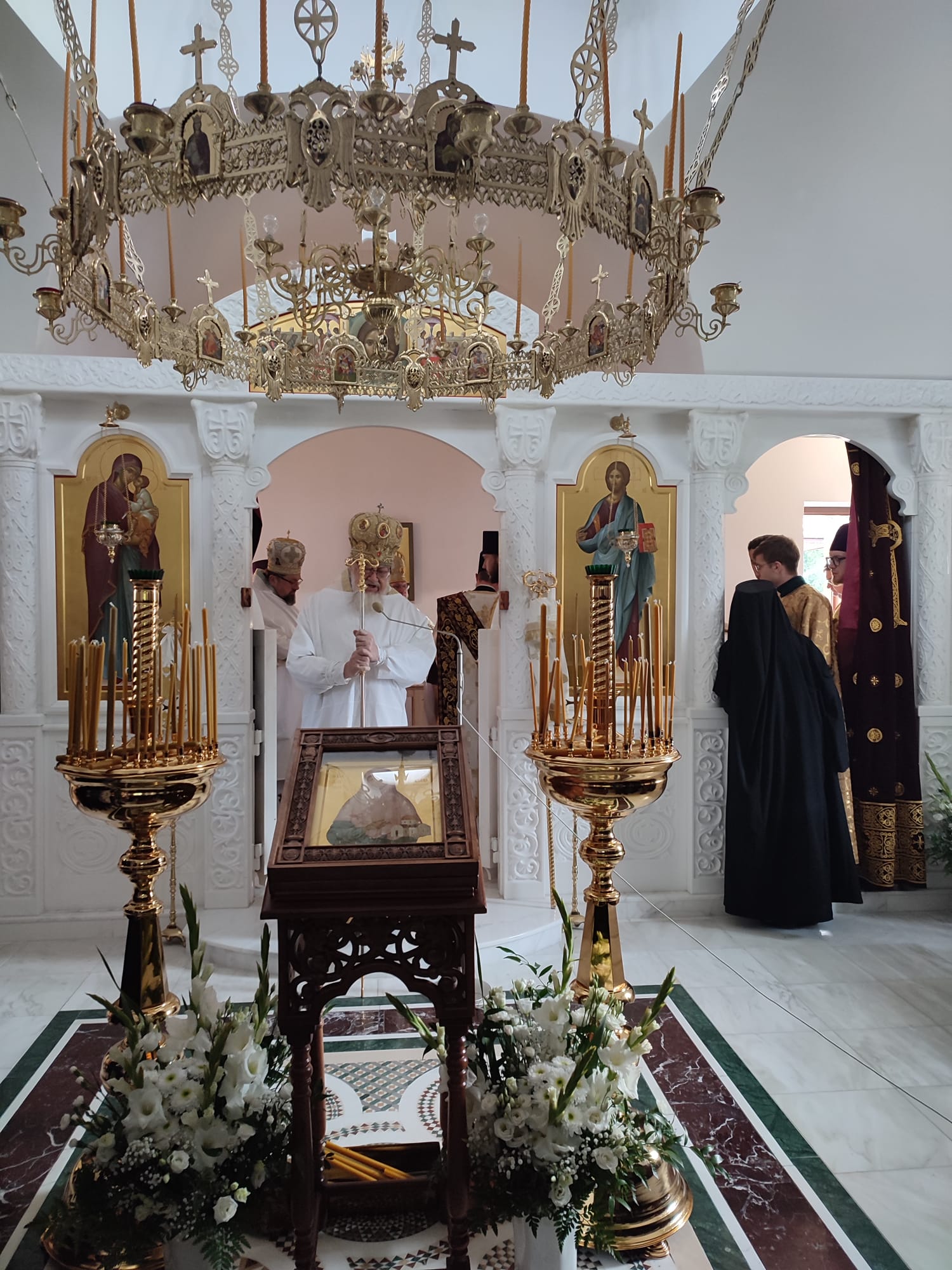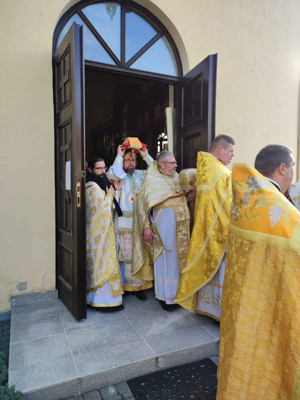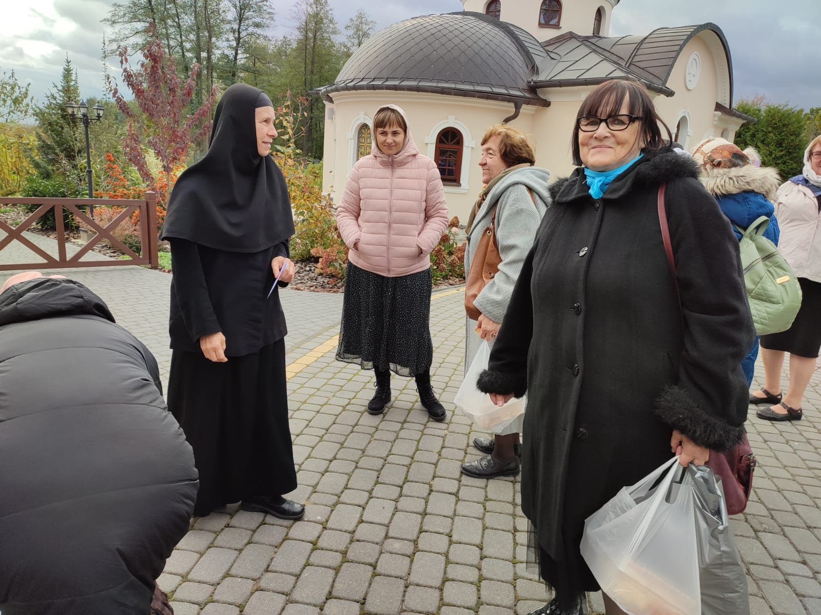 14 października w poniedziałek, w Święto Opieki Matki Bożej – dzień patronalnego święta Monasteru w Turkowicach, pielgrzymi uczestniczyli w poświęceniu wody, później w Św. Liturgii, którą sprawował Jego Ekscelencja Paisjusz w asyście duchownych. Po poczęstunku pielgrzymi pojechali do Hrubieszowa zwiedzić cerkiew pw. Zaśnięcia Matki Bożej o unikalnej bogatej architekturze i wystroju, która została zbudowana w XIX wieku z 13 kopułami. O burzliwychh losach cerkwi, parafiach, parafianach w Hrubieszowie szczegółowo opowiedział ks. Paweł Nikiel.