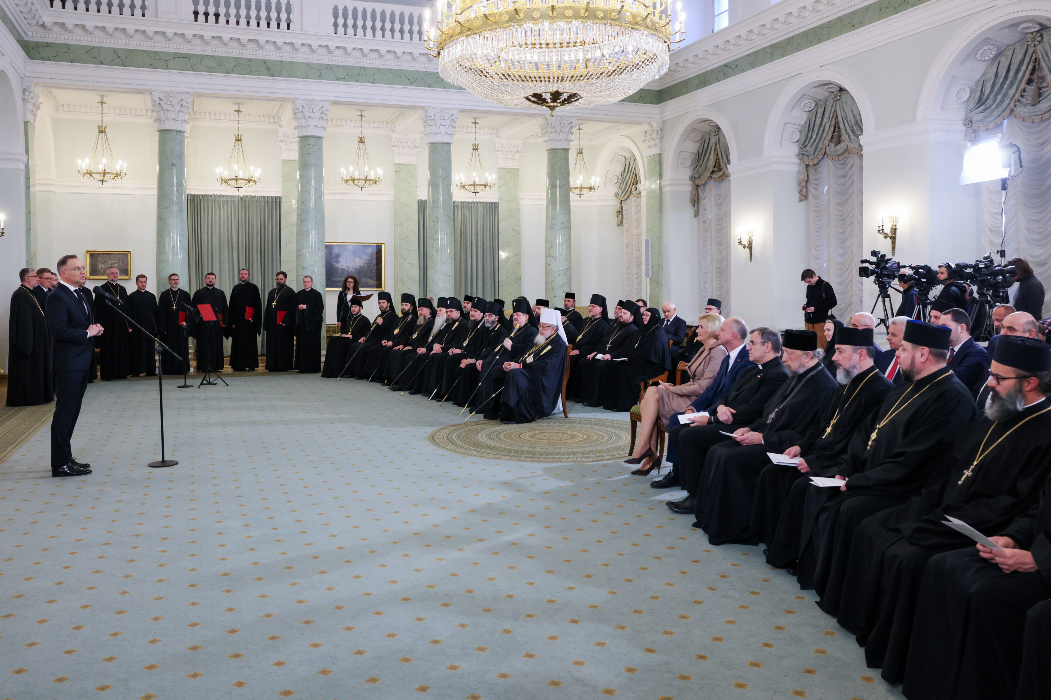 W swoim wystąpieniu Prezydent przypomniał, że sto lat temu kwestia autokefalii Polskiego Autokefalicznego Kościoła Prawosławnego nie była sprawą nową, bo narodziła się jako idea po spotkaniu duchownych w Pińsku w 1791 roku. – Wtedy powstał pierwszy projekt autokefalii, noszono się z zamiarem jej uzyskania, ale wojna, która wkrótce się rozpoczęła, zniweczyła te zamiary. Po odzyskaniu przez Polskę niepodległości w 1918 roku te starania zostały ponowione i zakończyły się uzyskaniem od patriarchatu konstantynopolskiego autokefalii dla Polskiego Autokefalicznego Kościoła Prawosławnego 13 listopada 1924 roku – wskazał. Dziękuję za to, co Polski Autokefaliczny Kościół Prawosławny wniósł do Rzeczypospolitej, do historii Rzeczypospolitej, również w znaczeniu wychowawczym, również w znaczeniu obrońców Rzeczypospolitej, których groby znaczą tak wiele miejsc w Polsce i na świecie. Dziękuję za budowanie postaw, współbudowanie Rzeczypospolitej i proszę o jeszcze – powiedział Prezydent.