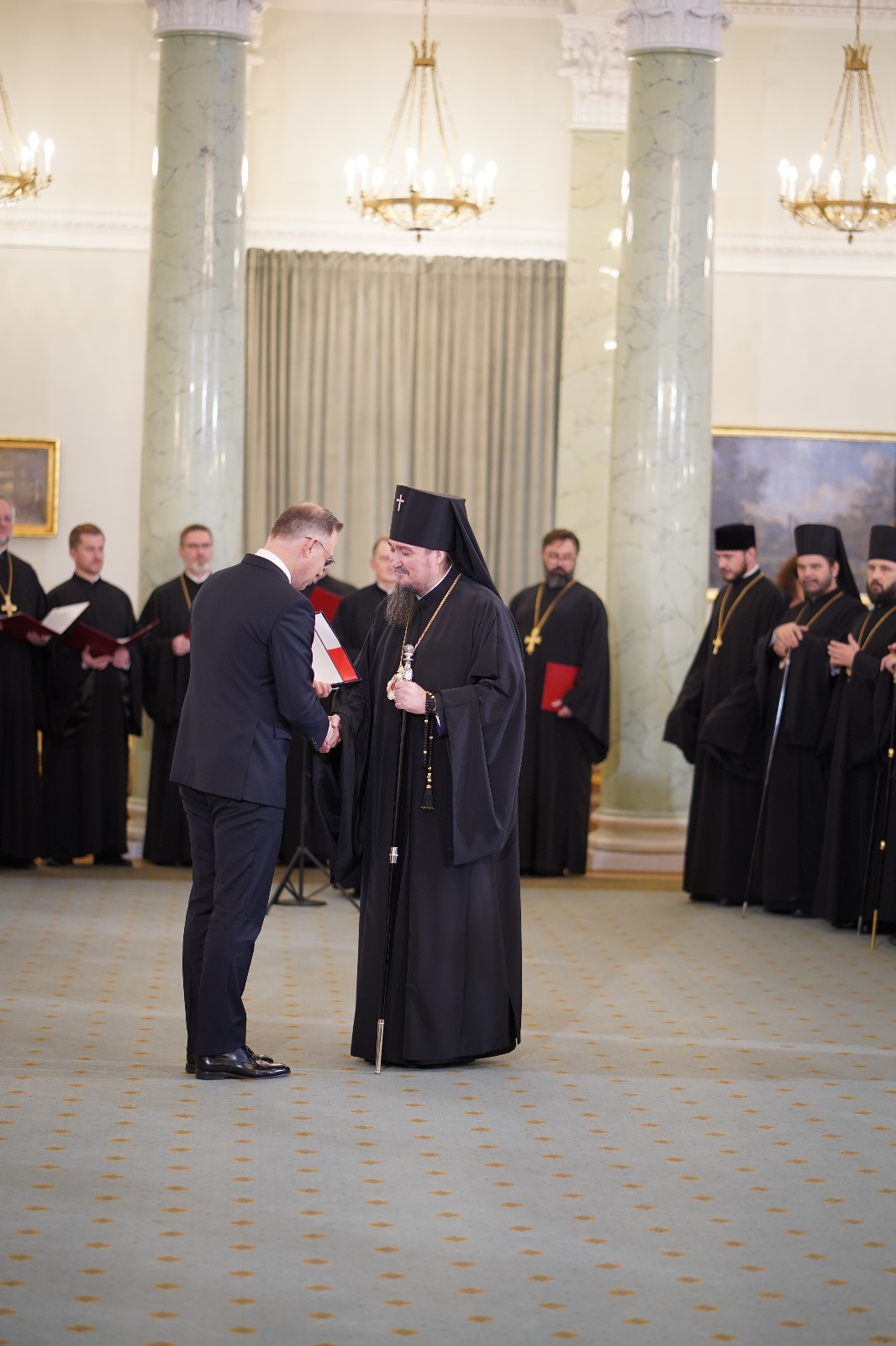 Pan Prezydent Andrzej Duda przekazał dary dla społeczności prawosławnej w postaci Świętej Ewangelii oraz flag państwowych RP z okolicznościowym przesłaniem, które złożył na ręce wszystkich ordynariuszy diecezjalnych PAKP.