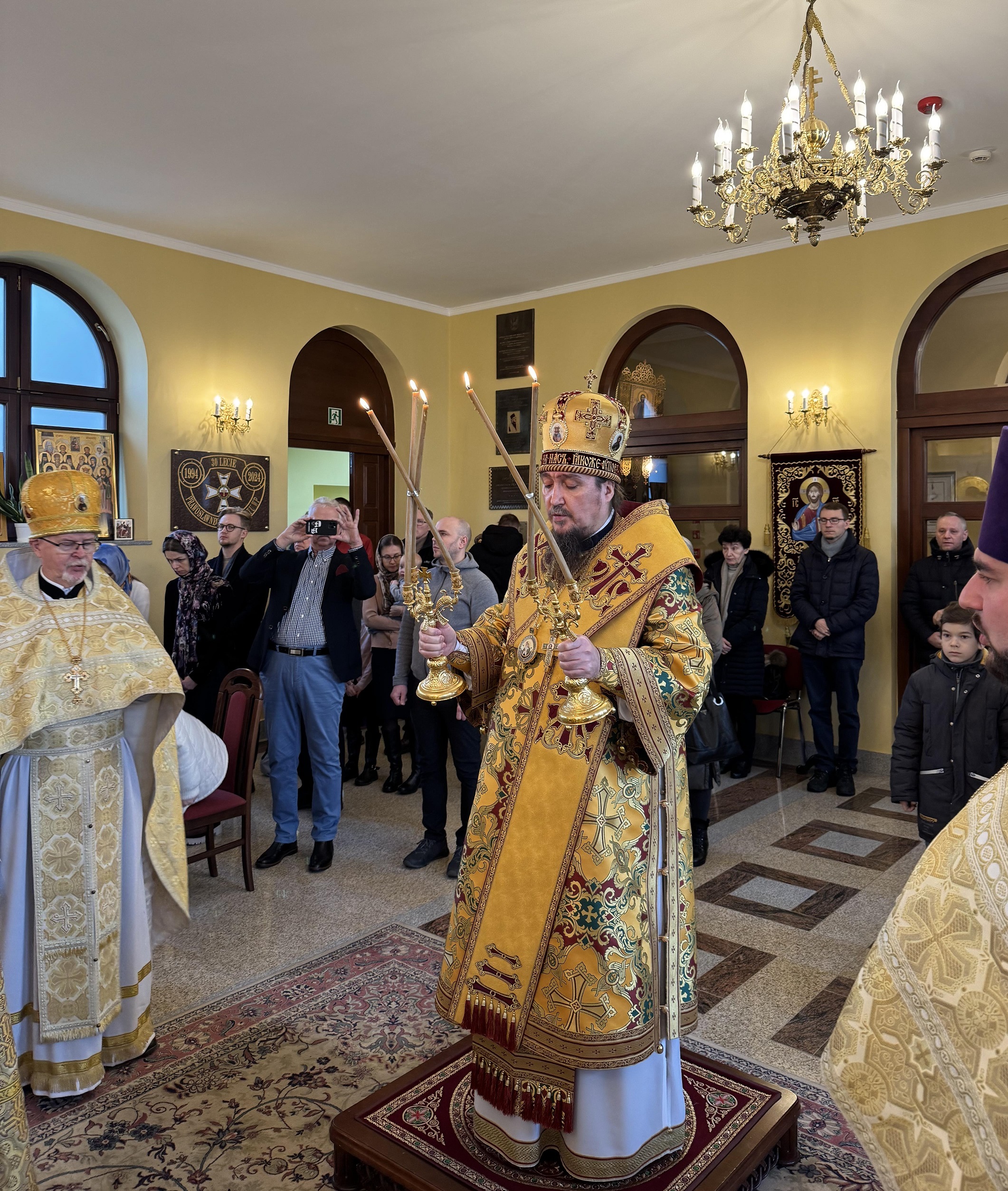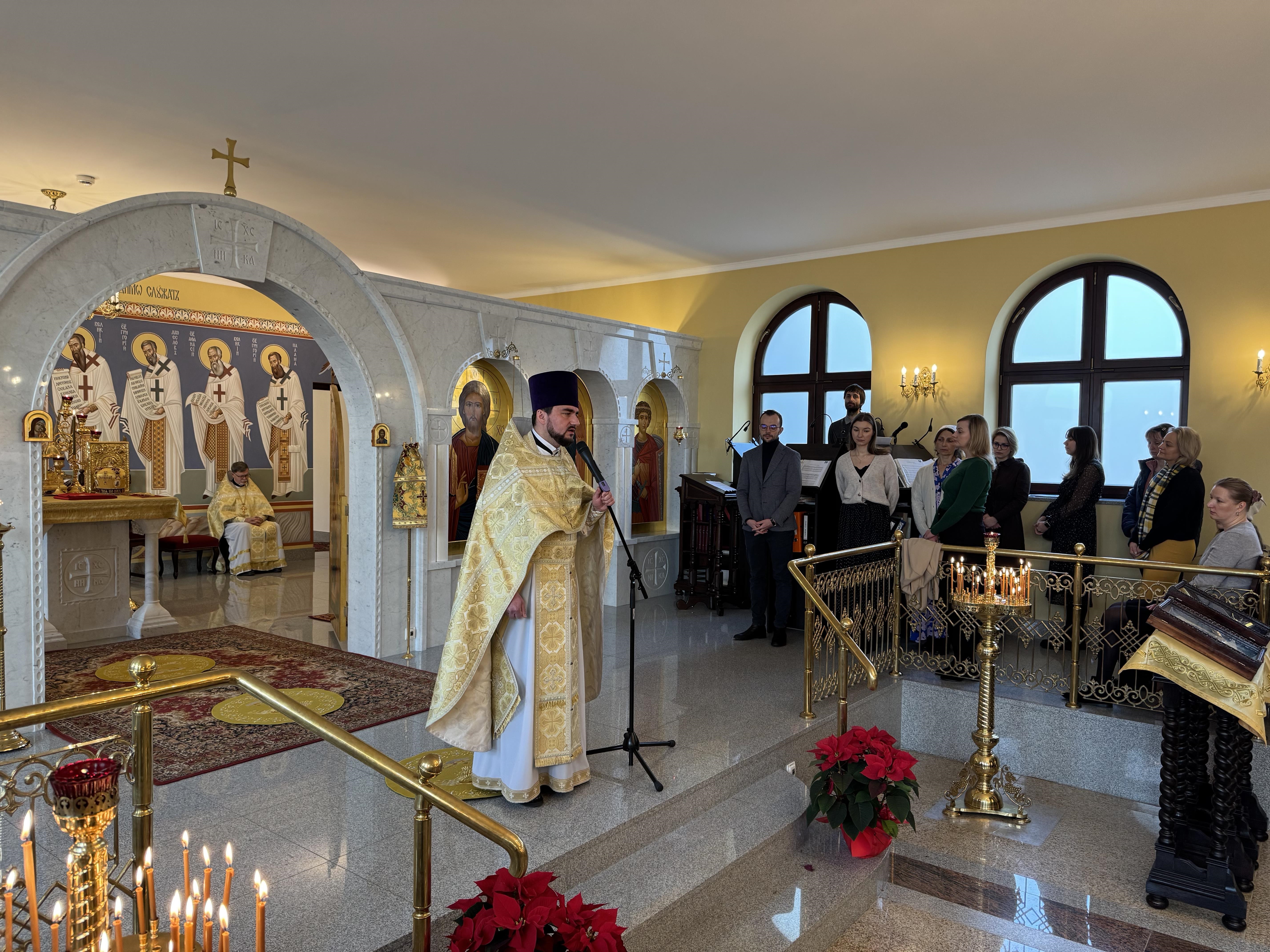 Do wiernych ze słowem pozdrowienia zwrócił się zastępca Prawosławnego Ordynariusza Wojskowego, proboszcz parafii ks. płk Łukasz Godun. Sparafrazował prokimenon wygłaszany przed lekcją apostolską oraz czytania z Pisma Świętego przypadające na niedzielę. Na zakończenie zwrócił uwagę na fakt że wszyscy są zaproszeni na ucztę jaka jest przygotowana – mianowicie Boska Liturgia.