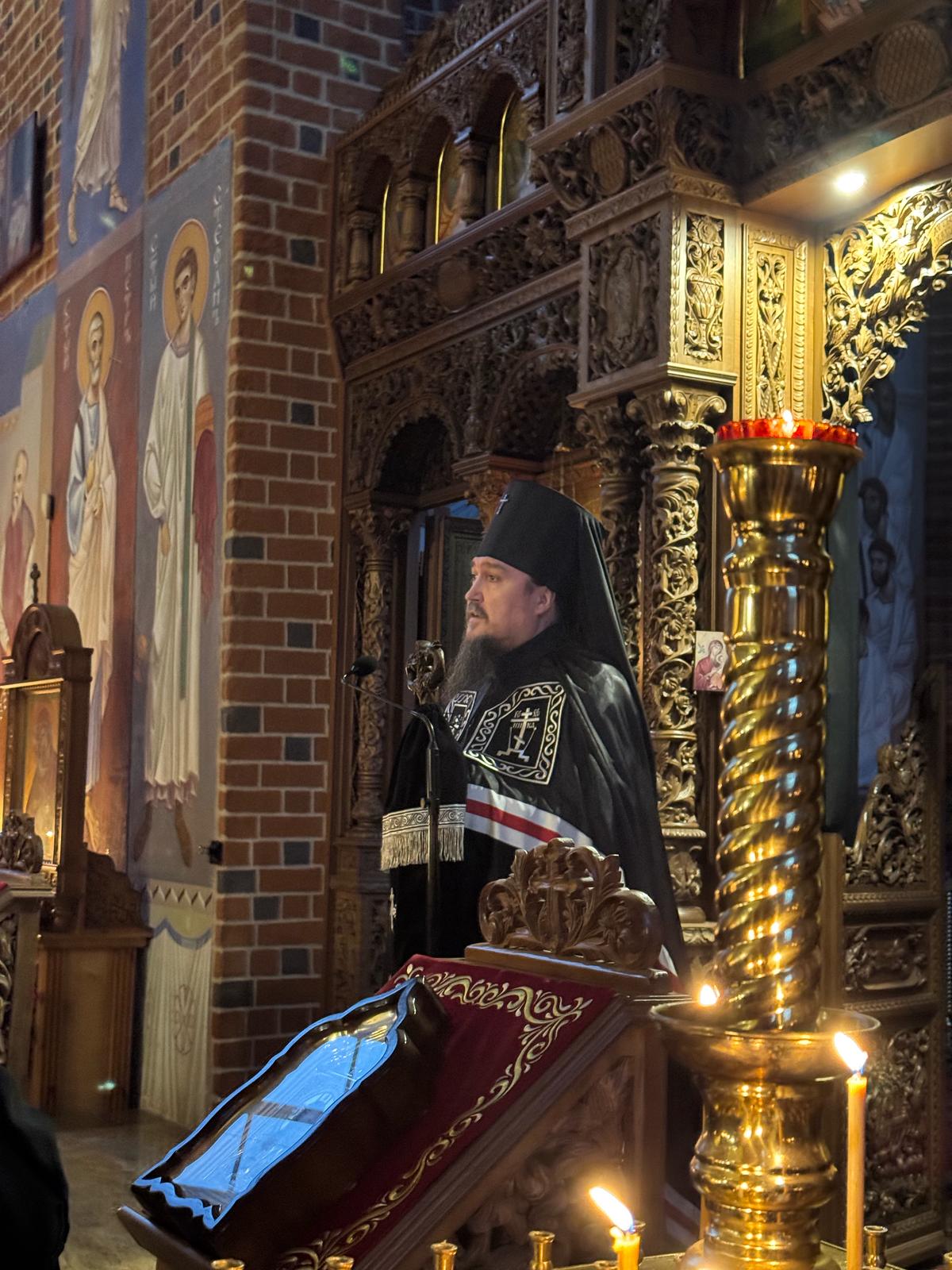 Po wysłuchaniu Ewangelii ze słowem do zebranych wiernych zwrócił się Władyka Jerzy. W swojej homilii zwrócił uwagę na Ewangeliczny warunek, z łacińskiego sine qua non. Jest to warunek bezwarunkowy, nie ma żadnych możliwości niewypełnienia tego warunku. Jeśli chcesz żeby Bóg odpuścił Twoje grzechy musisz odpuścić grzechy innym. Ta kolejność jest bardzo ważna. Jeśli człowiek najpierw nie odpuści bliźniemu to Bóg mu nie odpuści grzechy. Człowiek najpierw musi uporządkować swoją relację z innym człowiekiem żeby Bóg mógł odpuścić. Jest tak dlatego że Bóg jest beznamiętny, nie trzyma zła, nie jest pamiętliwy, Bóg nie trzyma urazy, dlatego dla Boga wybaczyć jest zupełnie inaczej niż nam.