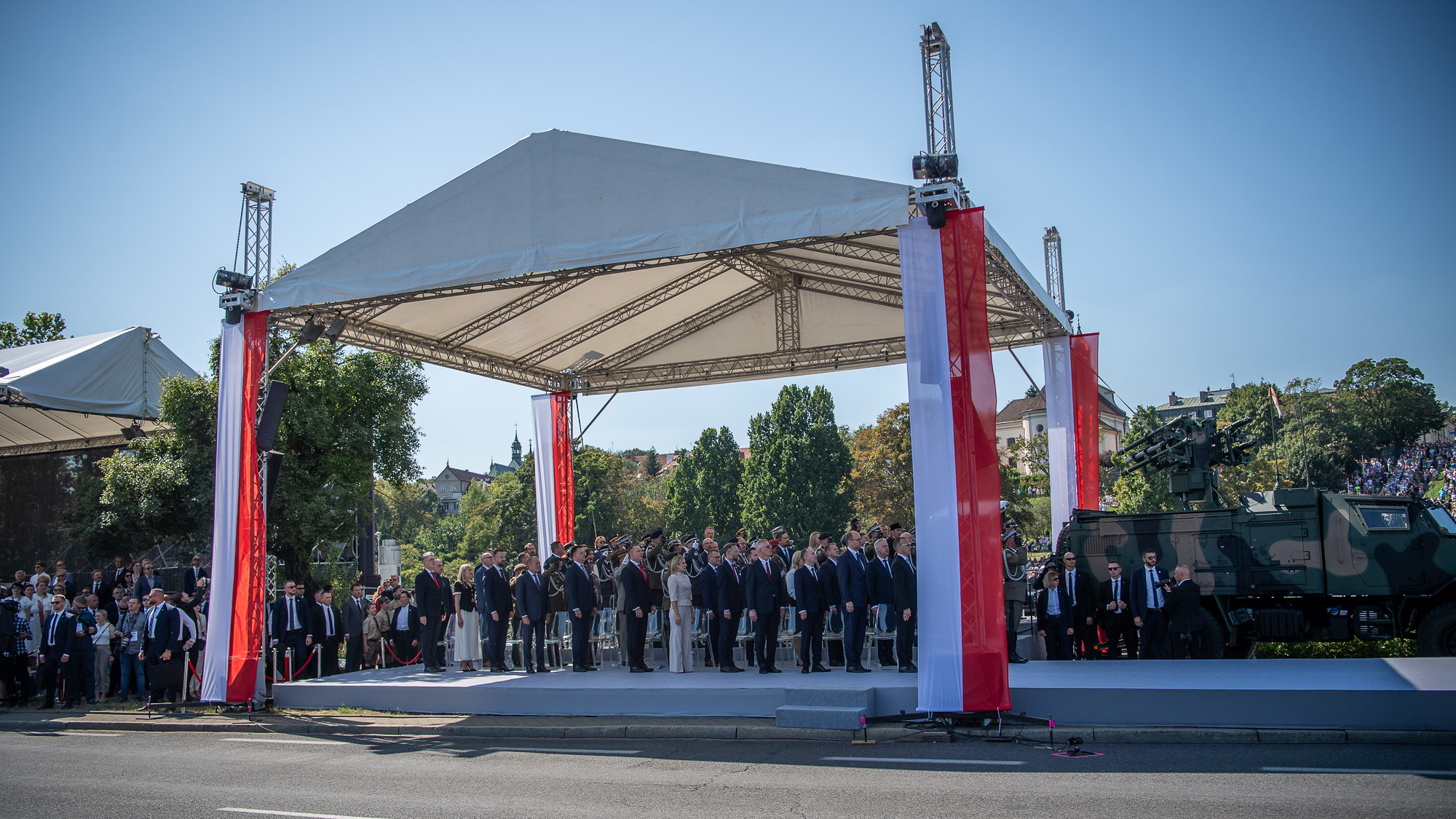 Uroczystości przeniosły się następnie na Wisłostradę, gdzie zwieńczeniem obchodów Święta Wojska Polskiego była uroczysta defilada wojskowa: piesza, kołowa i lotnicza - i po raz pierwszy na Helu parada morska. Na tę uroczystość przybył Prezydent RP, Zwierzchnik Sił Zbrojnych Karol Nawrocki w towarzystwie Szefa Sztabu Generalnego generała Wiesława Kukuły, obecni byli także wicepremier Władysław Kosiniak-Kamysz, przedstawiciele kadry kierowniczej MON i dowódczej Sił Zbrojnych RP, duchowieństwa, parlamentu oraz liczne tłumy widzów.