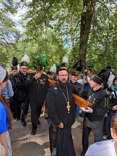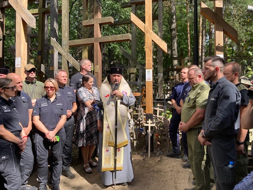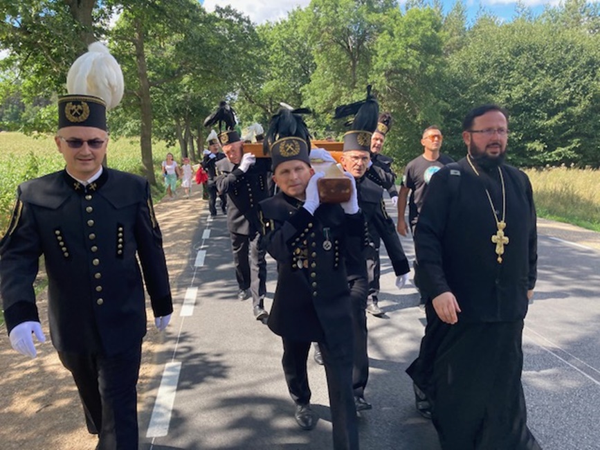 Po raz pierwszy do pielgrzymów Wojska Polskiego i poszczególnych Służb Mundurowych dołączyła w tym roku Dolnośląska Brać Górnicza i Hutnicza z KGHM Polska Miedź S.A., której towarzyszyły także ich rodziny. Po dotarciu na Św. Górę Grabarkę pielgrzymi zgromadzili się wokół Krzyża Wotywnego wzniesionego w intencji Dolnośląskiej Braci Górniczej i Hutniczej KGHM Polska Miedź S.A. Poświęcenia Krzyża dokonał Jego Ekscelencja, Najprzewielebniejszy Jerzy, Arcybiskup Wrocławski i Szczeciński, Prawosławny Ordynariusz Wojskowy, z modlitwą i dziękczynieniem za Opatrzność Bożą dla całego Stanu Górniczego i Hutniczego. Na koniec Ekscelencja podziękował wszystkim służbom mundurowym za ich trud i poświęcenie w codziennej służbie i wszystkim pielgrzymom za wspólną modlitwę. Dla wielu z nas było to niezwykłe duchowe przeżycie, które pozostanie z nami za zawsze.