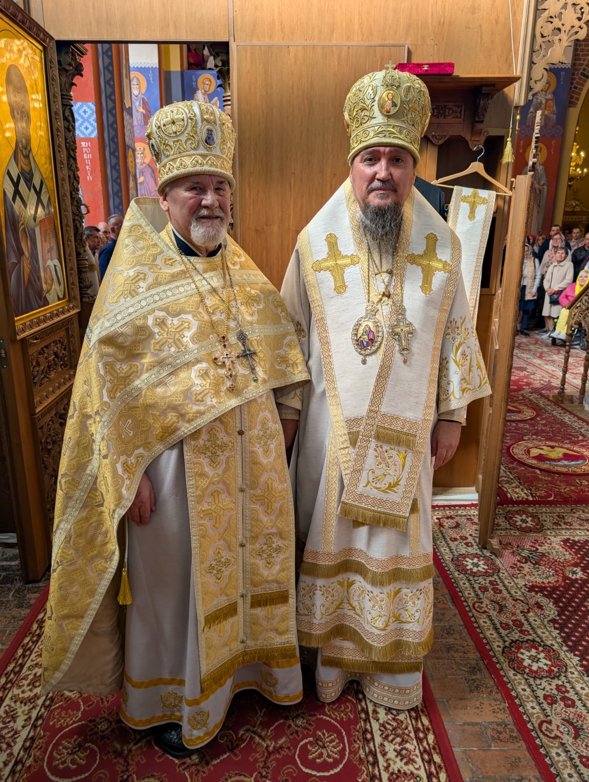 Na zakończenie Boskiej Liturgii Władyka złożył życzenia ks. mitratowi Wiktorowi Jacewiczowi z okazji 70 urodzin “dziękuję Ci ojcze za Twoją ponad 40-letnią posługę”. Jego Ekscelencja wręczył o. Wiktorowi kapłański krzyż z ozdobami a całość życzeń zwieńczyło gromkie “Mnohaja leta”.