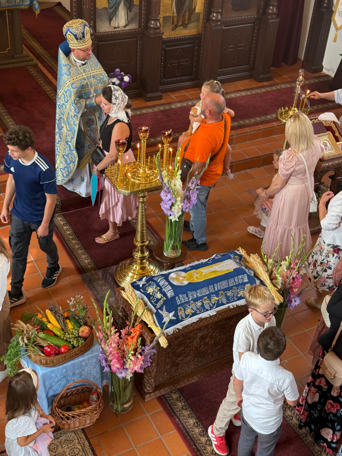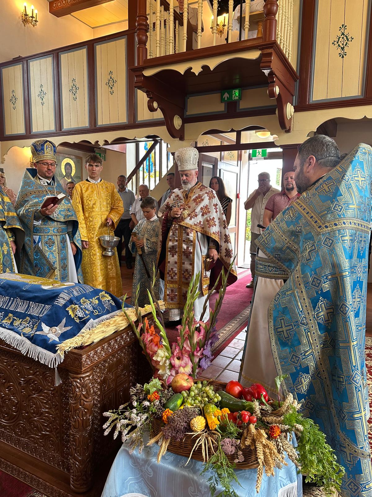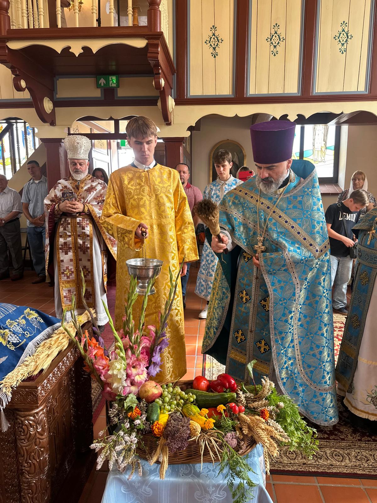 Po zakończeniu świętej liturgii odsłużono molebień , księża poświęcili zbiory i plony, które przynieśli wierni. Po uroczystości ks. Artur Graban podziękował proboszczowi i parafianom za zaproszenie, pozdrowił wszystkich ze świętem parafialnym .