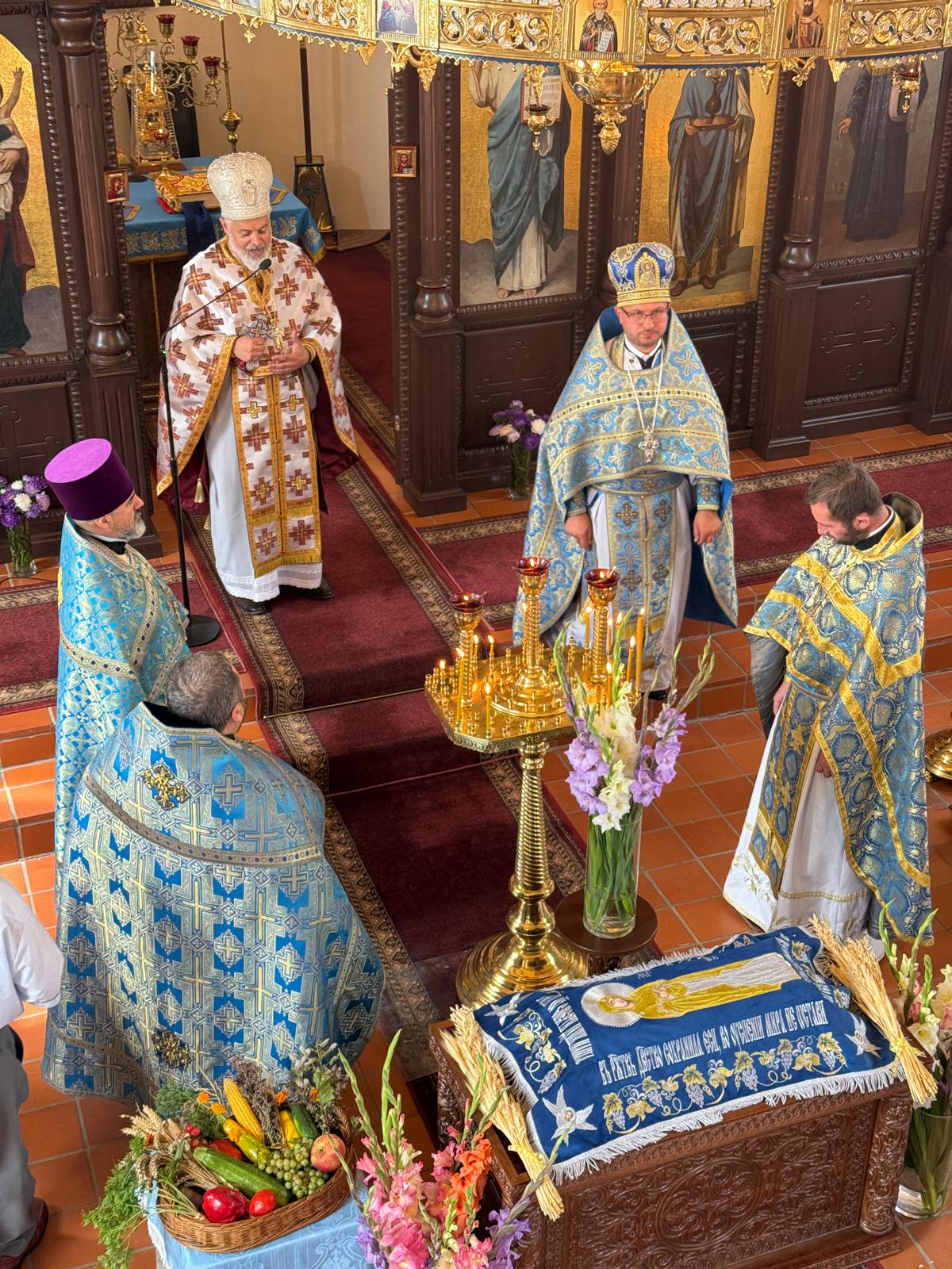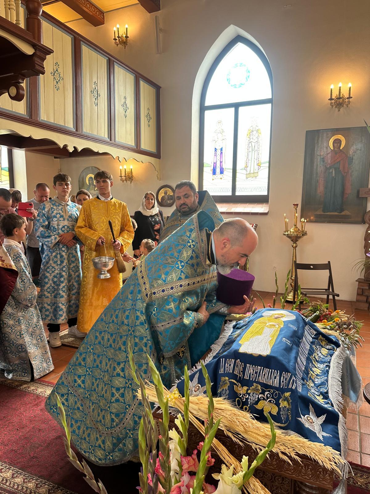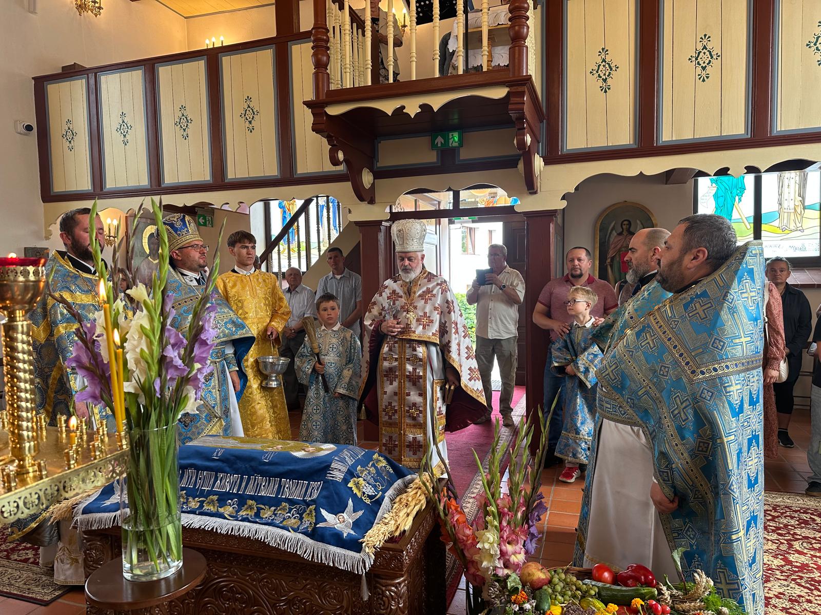 Po zakończeniu świętej liturgii odsłużono molebień , księża poświęcili zbiory i plony, które przynieśli wierni. Po uroczystości ks. Artur Graban podziękował proboszczowi i parafianom za zaproszenie, pozdrowił wszystkich ze świętem parafialnym .