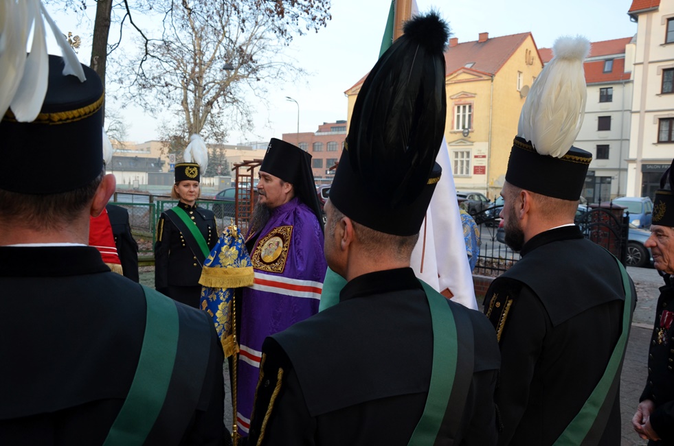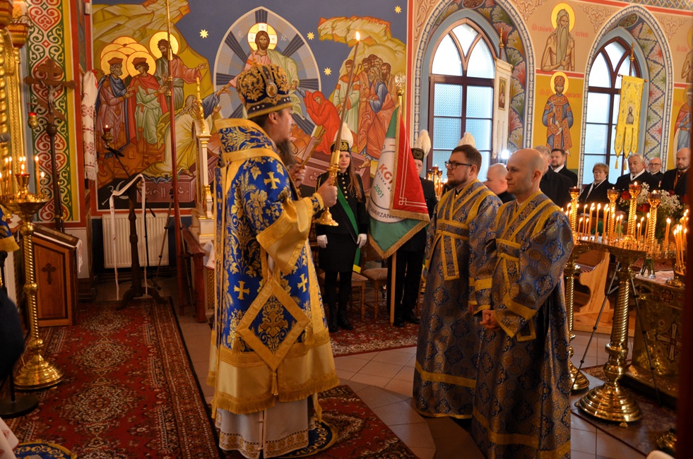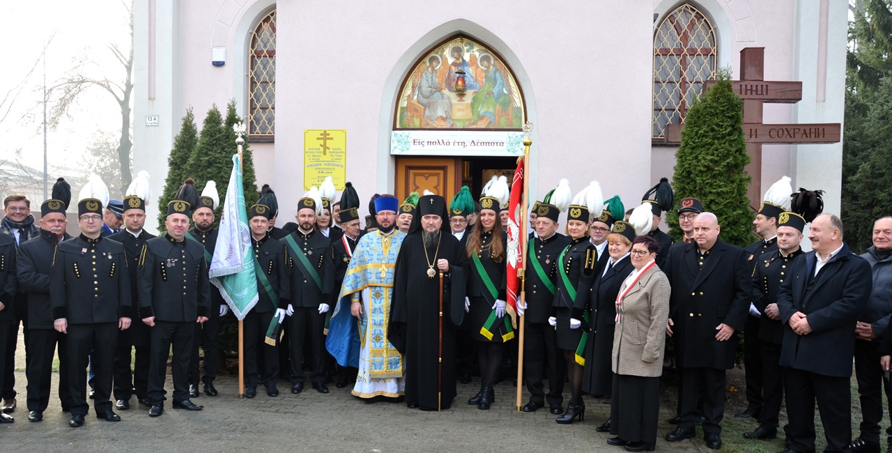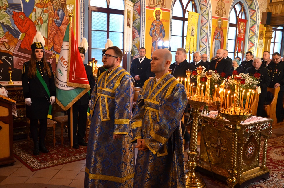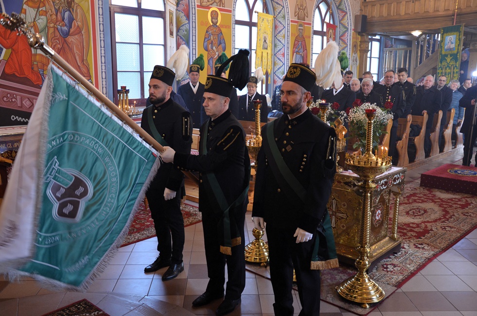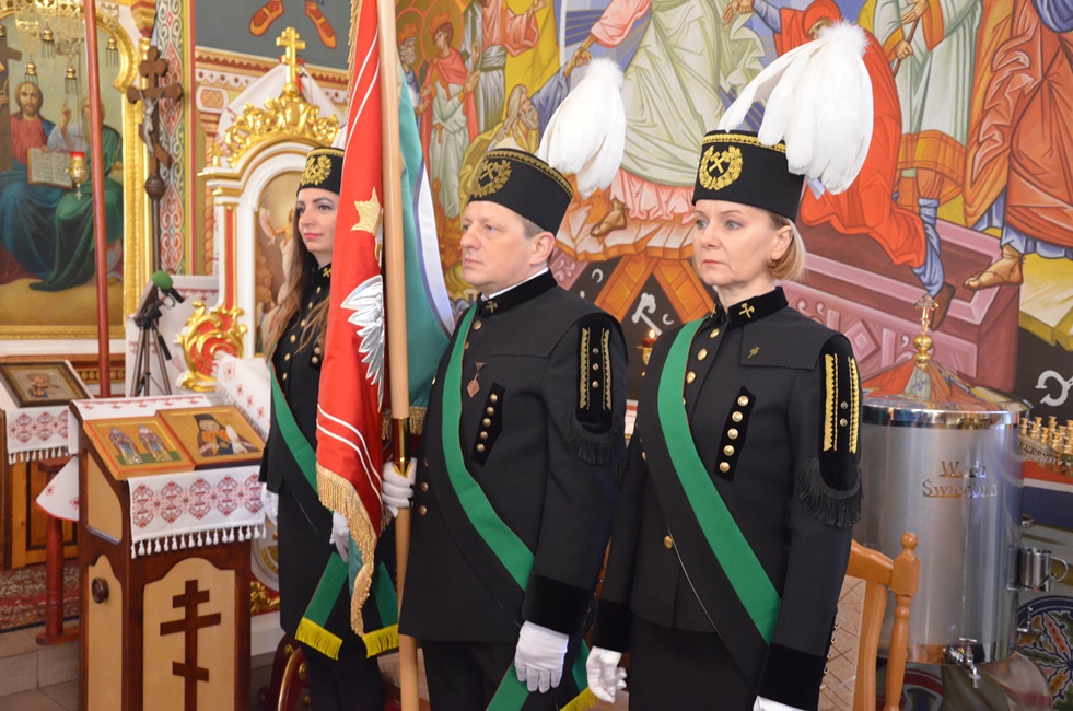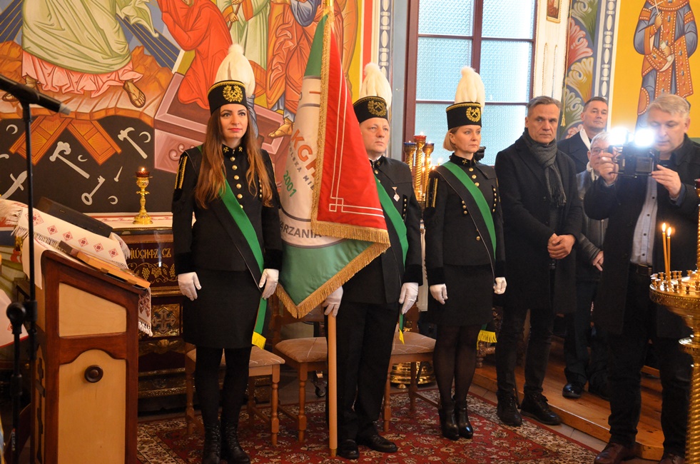 To jednak nie był koniec obchodów górniczego święta, ponieważ już 4 grudnia br. rozpoczęto Barbórkę od tradycyjnych pobudek górniczych w miastach Zagłębia Miedziowego. Następnie Brać Górnicza wzięła udział w uroczystościach nabożeństw Świętej Liturgii w Sanktuarium św. Maksymiliana w Lubinie, a także w Parafii Prawosławnej Świętej Trójcy w Lubinie, w których zanoszono modlitwy za cały Stan Górniczy do Świętej Barbary, a w prawosławnej Cerkwi ponadto do Przenajświętszej Bogarodzicy z okazji przypadającego w tym dniu Święta Ofiarowania do Świątyni Przenajświętszej Bogarodzicy, zawierzając Matce Bożej Brać Górniczą wraz z ich Rodzinami. Tegorocznej Świętej Boskiej Liturgii w Parafii Prawosławnej Świętej Trójcy w Lubinie przewodniczył Jego Ekscelencja, Najprzewielebniejszy Jerzy, Ordynariusz Diecezji Wrocławskiej i Szczecińskiej, Prawosławny Ordynariusz Wojskowy w asyście Prawosławnego Kapelana Górniczego, Generalnego Honorowego Dyrektora Górniczego, Ks. prot. Bogdana Repeły i Ks. Ihumena Spirydona (Kuziaka). U progu świątyni Ekscelencję powitał Komitet Górniczy w osobach pana Mariana Szkurata, Adama Herbuta i Piotra Fesza. Górnicy podziękowali Władyce za obecność w tegorocznym święcie, duchową opiekę, nieustanna modlitwę i Arcypasterskie Błogosławieństwo dla Stanu Górniczego. Następnie słowa powitania i podziękowania za przewodniczenie w świętej Boskiej Liturgii oraz modlitwę za cały Stan Górniczy skierował do Ekscelencji Kapelan Dolnośląskiej Prawosławnej Braci Górniczej, proboszcz lubińskiej parafii ks. prot. Bogdan Repeła. Powitał on także wszystkich zebranych na tegorocznym barbórkowym święcie, dostojnych Gości w szczególności: Dyrektora Naczelnego KGHM ds. Górnictwa Pana Krzysztofa Porębskiego, Dyrektor ds. Pracowniczych KGHM O/ZG Lubin – Panią Anettę Borkowską, Dyrektora ds. Utrzymania Ruchu KGHM O/ZG Rudna – Pana Tomasza Gromka, Dyrektora ds. Produkcji KGHM O/ZWR – Pan Rafała Pępkowskiego, Dyrektora Naczelnego Jednostki Ratownictwa Górniczo-Hutniczego KGHM Polska Miedź S.A Pana Marcina Górskiego, Dyrektora Naczelnego Oddziału Huty Miedzi „Legnica” – Pana Mariusza Rzepczyńskiego, Dyrektora ds. Pracowniczych pana Grzegorza Styrkowca, Dyrektora Naczelnego Oddziału Huty Miedzi „Głogów” – pana Jarosława Siedleckiego, Dyrektora ds. Pracowniczych, pana Rafała Kosmalskiego, Pełnomocnika Zarządu KGHM ds. współpracy z samorządami – Pana Teodora Haburę, Wójta Gminy Lubin, Pana Norberta Grabowskiego, Wójta Gminy Rudna, Pana Zbigniewa Grabowskiego, Komendanta Komendy Powiatowej Policji w Lubinie, Pana inspektora Waldemara Cichockiego, Zastępcy Komendanta Powiatowego Policji w Lubinie Młodszego Inspektora pana Mirosława Juzaka, Prezesa Zarządu Oddziału Powiatowego Ochotniczej Straży Pożarnej w Polkowicach, pana Krystiana Malinowskiego wraz z małżonką, Poczet Sztandarowy Oddziału Hydrotechnicznego KGHM Polska Miedź S.A, Poczet sztandarowy Centralnego Oddział Przetwarzania Informacji KGHM Polska Miedź S.A Po komendzie wprowadzenia Pocztów Sztandarowych ks. prot. Bogdan Repeła poprosił Jego Ekscelencję Arcybiskupa Jerzego o przewodniczenie nabożeństwu. Władyka w homilii skierowanej do wiernych i Braci Górniczej przybliżył szczególny wymiar życia liturgicznego, tak bardzo potrzebny dla każdego chrześcijanina, na istotę życia duchowego, obecności w Świętej Boskiej Liturgii. Przybliżając święto Wprowadzenia do Świątyni Przenajświętszej Bogarodzicy podkreślił jego ponadczasowy charakter, ukazując na Rodziców Matki Bożej, Joachima i Annę, Ich oddanie i zaufanie Bogu, wiarę, pokorę i mądrość. Łaskę jaką otrzymali poprzez trwanie w ufności wobec Stwórcy oraz pragnienie wypełniania bożych przykazań w swoim życiu, a właściwie pełne oddanie się woli Bożej. Podkreślił jak ważny jest dla nas i całego kraju trud codziennej pracy Górników, prosił, aby nie zapominali o codziennej modlitwie i zaufaniu do swojej niebiańskiej Patronki Świętej Barbary. Podkreślił jak ważną cechą każdego górnika jest wiara, szczególnie w obliczu potęgi żywiołów z którymi spotykają się na co dzień w wykonywanych obowiązkach. Jak budujące są słowa przywitania a zarazem modlitwy górników „Szczęść Boże” rozpoczynających dzień pracy, aby z Bożą pomocą zakończyli ją zawsze szczęśliwie wracając pełni sił do swych rodzin.