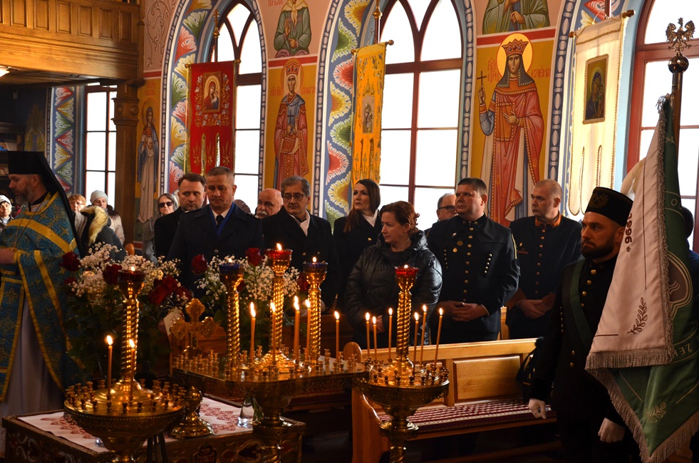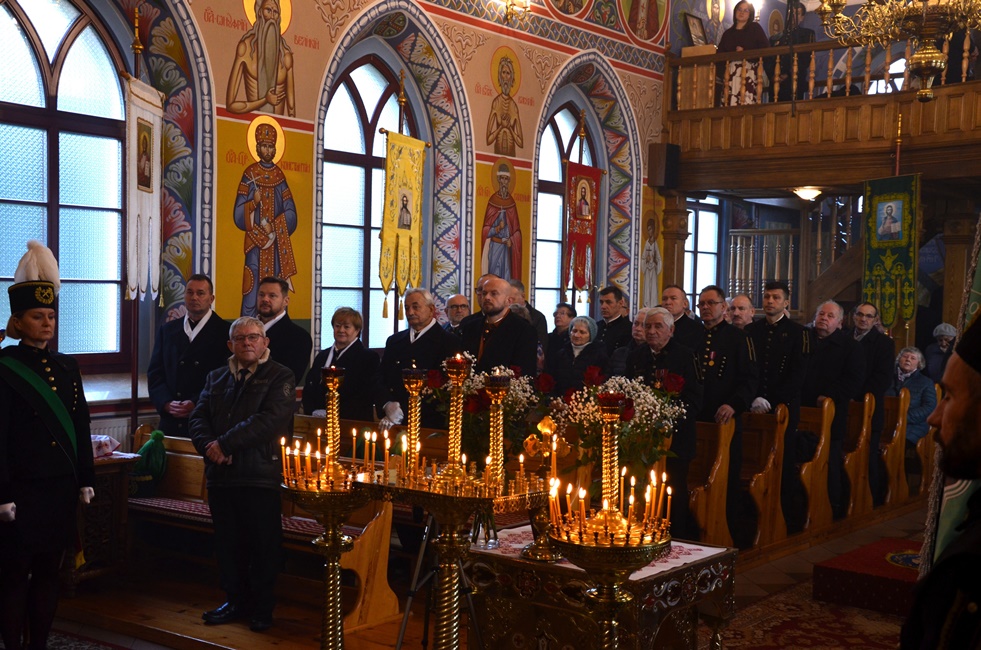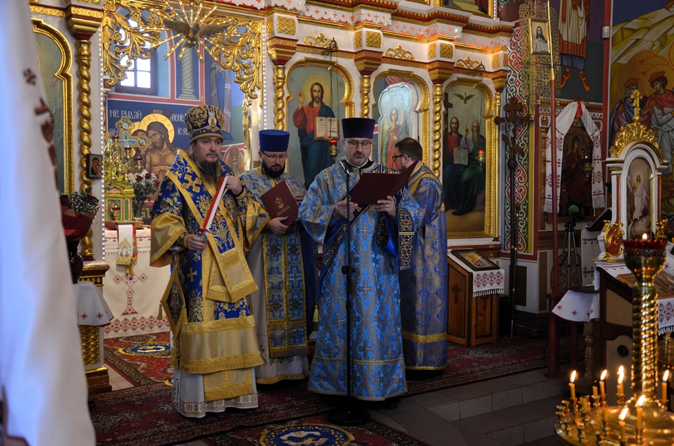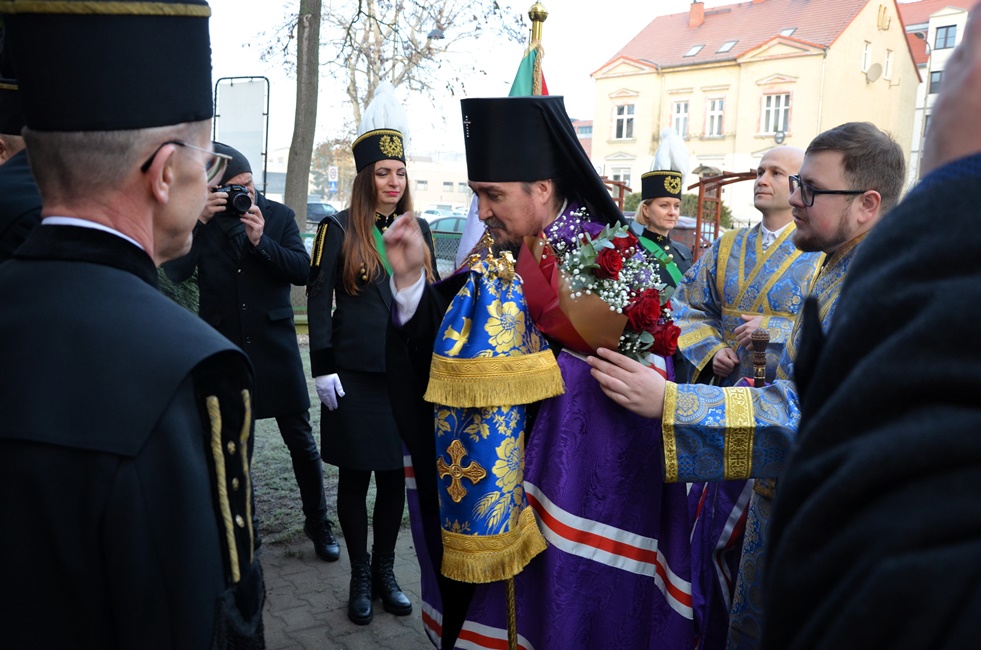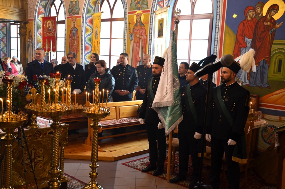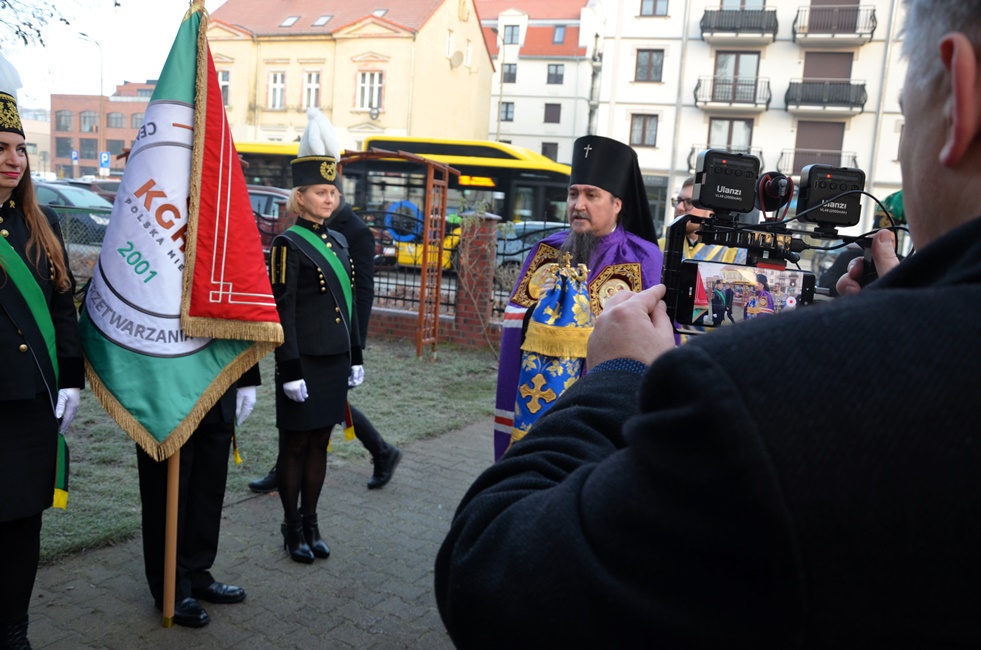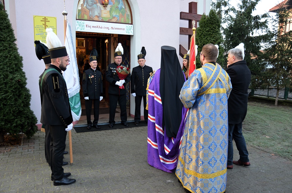 To jednak nie był koniec obchodów górniczego święta, ponieważ już 4 grudnia br. rozpoczęto Barbórkę od tradycyjnych pobudek górniczych w miastach Zagłębia Miedziowego. Następnie Brać Górnicza wzięła udział w uroczystościach nabożeństw Świętej Liturgii w Sanktuarium św. Maksymiliana w Lubinie, a także w Parafii Prawosławnej Świętej Trójcy w Lubinie, w których zanoszono modlitwy za cały Stan Górniczy do Świętej Barbary, a w prawosławnej Cerkwi ponadto do Przenajświętszej Bogarodzicy z okazji przypadającego w tym dniu Święta Ofiarowania do Świątyni Przenajświętszej Bogarodzicy, zawierzając Matce Bożej Brać Górniczą wraz z ich Rodzinami. Tegorocznej Świętej Boskiej Liturgii w Parafii Prawosławnej Świętej Trójcy w Lubinie przewodniczył Jego Ekscelencja, Najprzewielebniejszy Jerzy, Ordynariusz Diecezji Wrocławskiej i Szczecińskiej, Prawosławny Ordynariusz Wojskowy w asyście Prawosławnego Kapelana Górniczego, Generalnego Honorowego Dyrektora Górniczego, Ks. prot. Bogdana Repeły i Ks. Ihumena Spirydona (Kuziaka). U progu świątyni Ekscelencję powitał Komitet Górniczy w osobach pana Mariana Szkurata, Adama Herbuta i Piotra Fesza. Górnicy podziękowali Władyce za obecność w tegorocznym święcie, duchową opiekę, nieustanna modlitwę i Arcypasterskie Błogosławieństwo dla Stanu Górniczego. Następnie słowa powitania i podziękowania za przewodniczenie w świętej Boskiej Liturgii oraz modlitwę za cały Stan Górniczy skierował do Ekscelencji Kapelan Dolnośląskiej Prawosławnej Braci Górniczej, proboszcz lubińskiej parafii ks. prot. Bogdan Repeła. Powitał on także wszystkich zebranych na tegorocznym barbórkowym święcie, dostojnych Gości w szczególności: Dyrektora Naczelnego KGHM ds. Górnictwa Pana Krzysztofa Porębskiego, Dyrektor ds. Pracowniczych KGHM O/ZG Lubin – Panią Anettę Borkowską, Dyrektora ds. Utrzymania Ruchu KGHM O/ZG Rudna – Pana Tomasza Gromka, Dyrektora ds. Produkcji KGHM O/ZWR – Pan Rafała Pępkowskiego, Dyrektora Naczelnego Jednostki Ratownictwa Górniczo-Hutniczego KGHM Polska Miedź S.A Pana Marcina Górskiego, Dyrektora Naczelnego Oddziału Huty Miedzi „Legnica” – Pana Mariusza Rzepczyńskiego, Dyrektora ds. Pracowniczych pana Grzegorza Styrkowca, Dyrektora Naczelnego Oddziału Huty Miedzi „Głogów” – pana Jarosława Siedleckiego, Dyrektora ds. Pracowniczych, pana Rafała Kosmalskiego, Pełnomocnika Zarządu KGHM ds. współpracy z samorządami – Pana Teodora Haburę, Wójta Gminy Lubin, Pana Norberta Grabowskiego, Wójta Gminy Rudna, Pana Zbigniewa Grabowskiego, Komendanta Komendy Powiatowej Policji w Lubinie, Pana inspektora Waldemara Cichockiego, Zastępcy Komendanta Powiatowego Policji w Lubinie Młodszego Inspektora pana Mirosława Juzaka, Prezesa Zarządu Oddziału Powiatowego Ochotniczej Straży Pożarnej w Polkowicach, pana Krystiana Malinowskiego wraz z małżonką, Poczet Sztandarowy Oddziału Hydrotechnicznego KGHM Polska Miedź S.A, Poczet sztandarowy Centralnego Oddział Przetwarzania Informacji KGHM Polska Miedź S.A Po komendzie wprowadzenia Pocztów Sztandarowych ks. prot. Bogdan Repeła poprosił Jego Ekscelencję Arcybiskupa Jerzego o przewodniczenie nabożeństwu. Władyka w homilii skierowanej do wiernych i Braci Górniczej przybliżył szczególny wymiar życia liturgicznego, tak bardzo potrzebny dla każdego chrześcijanina, na istotę życia duchowego, obecności w Świętej Boskiej Liturgii. Przybliżając święto Wprowadzenia do Świątyni Przenajświętszej Bogarodzicy podkreślił jego ponadczasowy charakter, ukazując na Rodziców Matki Bożej, Joachima i Annę, Ich oddanie i zaufanie Bogu, wiarę, pokorę i mądrość. Łaskę jaką otrzymali poprzez trwanie w ufności wobec Stwórcy oraz pragnienie wypełniania bożych przykazań w swoim życiu, a właściwie pełne oddanie się woli Bożej. Podkreślił jak ważny jest dla nas i całego kraju trud codziennej pracy Górników, prosił, aby nie zapominali o codziennej modlitwie i zaufaniu do swojej niebiańskiej Patronki Świętej Barbary. Podkreślił jak ważną cechą każdego górnika jest wiara, szczególnie w obliczu potęgi żywiołów z którymi spotykają się na co dzień w wykonywanych obowiązkach. Jak budujące są słowa przywitania a zarazem modlitwy górników „Szczęść Boże” rozpoczynających dzień pracy, aby z Bożą pomocą zakończyli ją zawsze szczęśliwie wracając pełni sił do swych rodzin.