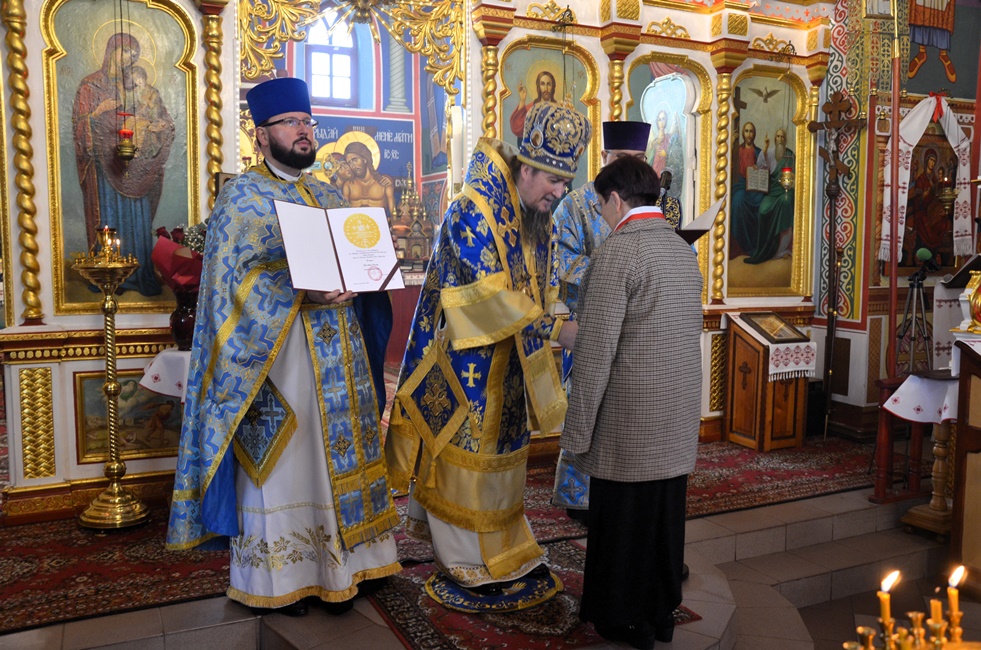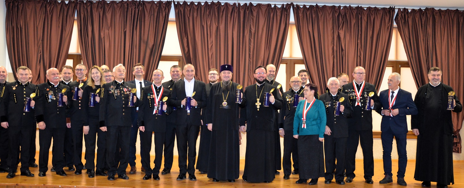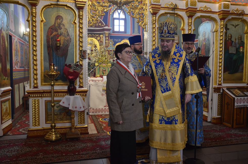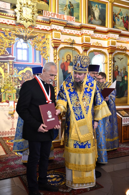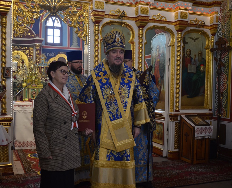 Zakończenie tegorocznych uroczystości święta miało podniosły charakter z okazji nadania Orderów Świętych Równych Apostołom Marii Magdaleny III Stopnia wiernym lubińskiej parafii, Marianowi Szkuratowi, Adamowi Herbutowi, Józefowi Czyrniańskiemu i Helenie Chomiak oraz Listu Pochwalnego panu Adamowi Stafiniakowi za pracę dla dobra Cerkwi. Na zakończenie uroczystości Władyka podziękował wszystkim za wspólną modlitwę, udzielając zebranym Arcypasterskiego Błogosławieństwa. Zwrócił się ze słowami duchowej radości i wdzięczności dla Braci Górniczej za ich świadectwo wiary, wyrażone w ich udziale w pierwszej w historii kraju obecności Braci Górniczej na Świętej Górze Grabarce. Za zorganizowanie pielgrzymki, w której Dolnośląska Prawosławna Brać Górnicza ofiarowała Krzyż Wotywny na Świętą Górę Grabarkę zanosząc modlitwy, z wiarą i nadzieją na błogosławieństwo Boże dla całego Stanu Górniczego. Krzyż oświęcił Jego Ekscelencja Arcybiskup Jerzy w obecności Służb Mundurowych pielgrzymujących rok rocznie do świętego miejsca na święto Przemienienia Pańskiego na Świętej Górze Grabarce. Było to wielkie wydarzenie i duchowe przeżycie, które Brać Górnicza pragnie kontynuować. Proboszcz lubińskiej parafii Ks. prot. Bogdan Repeła na zakończenie wspólnej modlitwy podziękował Ekscelencji za przewodniczenie w tegorocznych uroczystościach górniczego święta, za duchową opiekę i wsparcie, a wszystkim zebranym i całemu Stanowi Górniczemu złożył najserdeczniejsze życzenia, zdrowia oraz wszelkiej pomyślności i opieki Świętej Barbary w trudach codziennej pracy. Tylu zjazdów co wyjazdów oraz górniczego szczęścia. Podziękowania skierowano także dla chóru parafialnego za piękny śpiew i wysiłek włożony w przygotowanie święta na czele z panią dyrygent Anną Andrianow. Wszystkich zaproszonych gości zaproszono na świąteczny górniczy obiad.