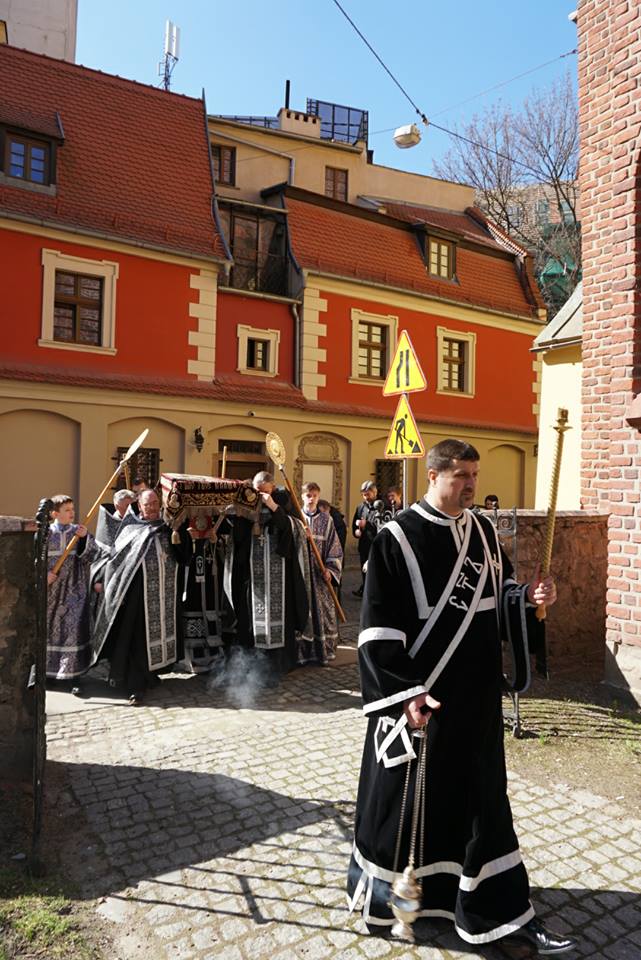 W Wielki Piątek rano we wrocławskiej katedrze sprawowane były wielkie godziny kanoniczne. Następnie o godzinie 14 sprawowana była wielka wieczernia, podczas której na uroczystej procesji na środek świątyni wyniesiona została płaszczennica – ikona z wizerunkiem Chrystusa złożonego do grobu. Po wielkiej wieczerni odprawiono małe powieczerze, a następnie o godzinie 18 sprawowana była jutrznia Wielkiej Soboty.