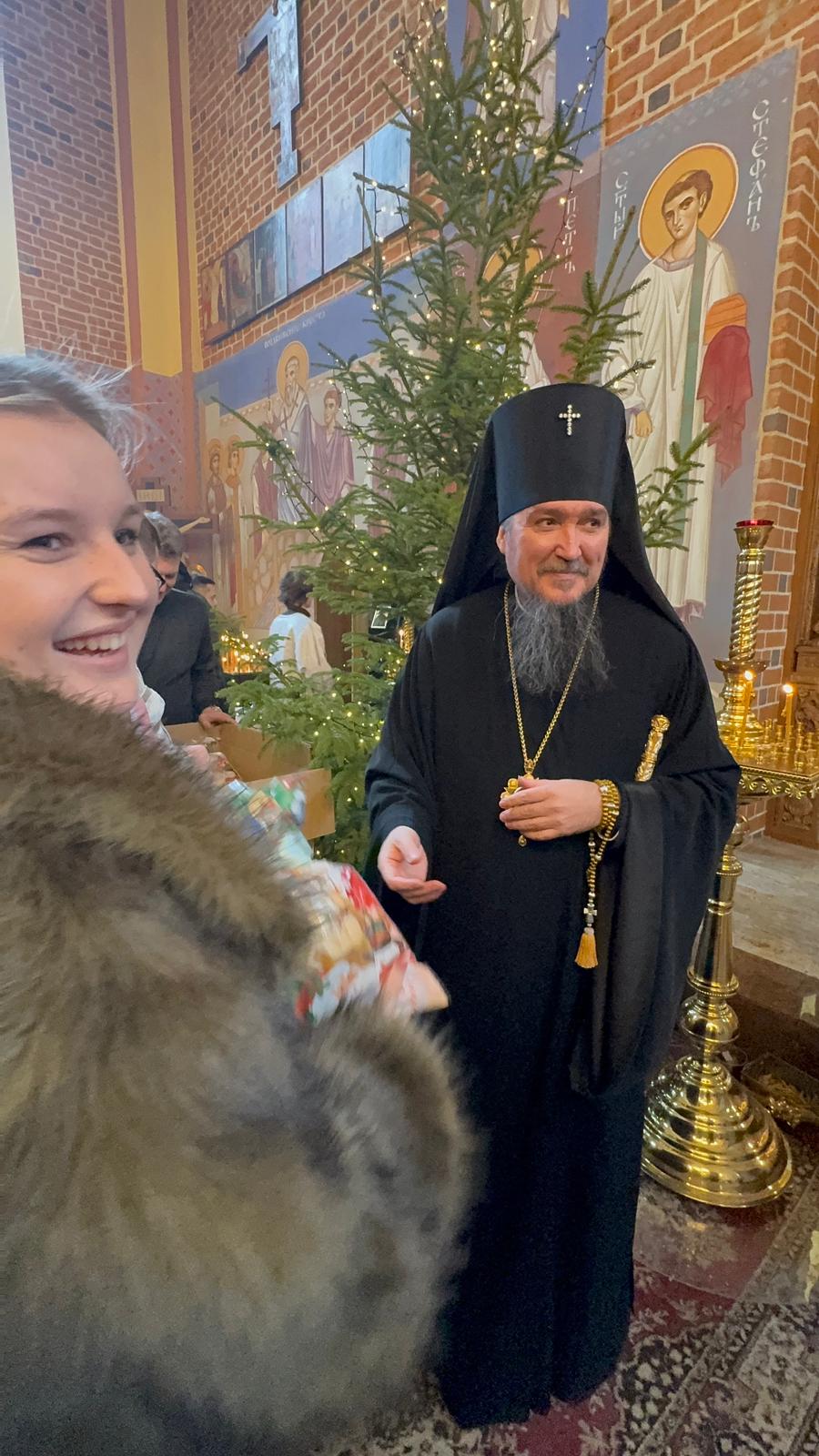 Po zakończeniu Boskiej Liturgii Władyka Jerzy pozdrowił wszystkich obchodzących dziś imieniny - Dawidów, Józefów i Jakubów, w tym w sposób szczególny dyrygenta katedralnego chóru - lektora Dawida Dubeca. Następnie abp Jerzy rozdawał licznie zgromadzonym w świątyni dzieciom świąteczne prezenty. Ponad setka najmłodszych otrzymała od Władyki upominki przedłużając tym samym dziecięcą radość z okazji świąt Bożego Narodzenia.