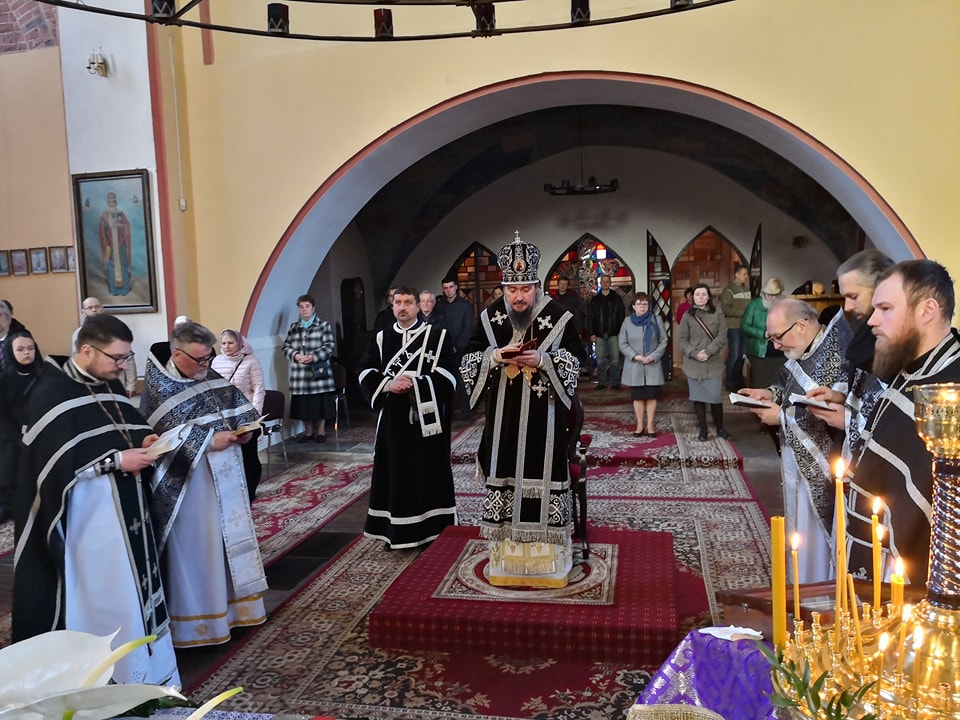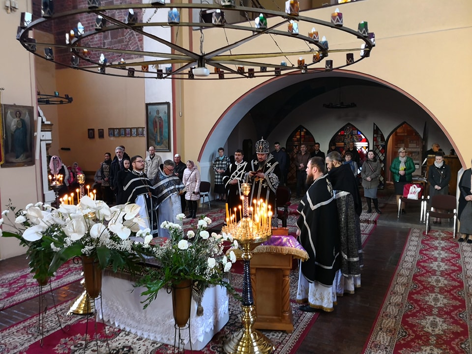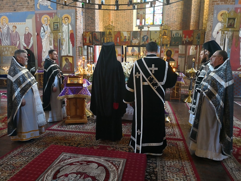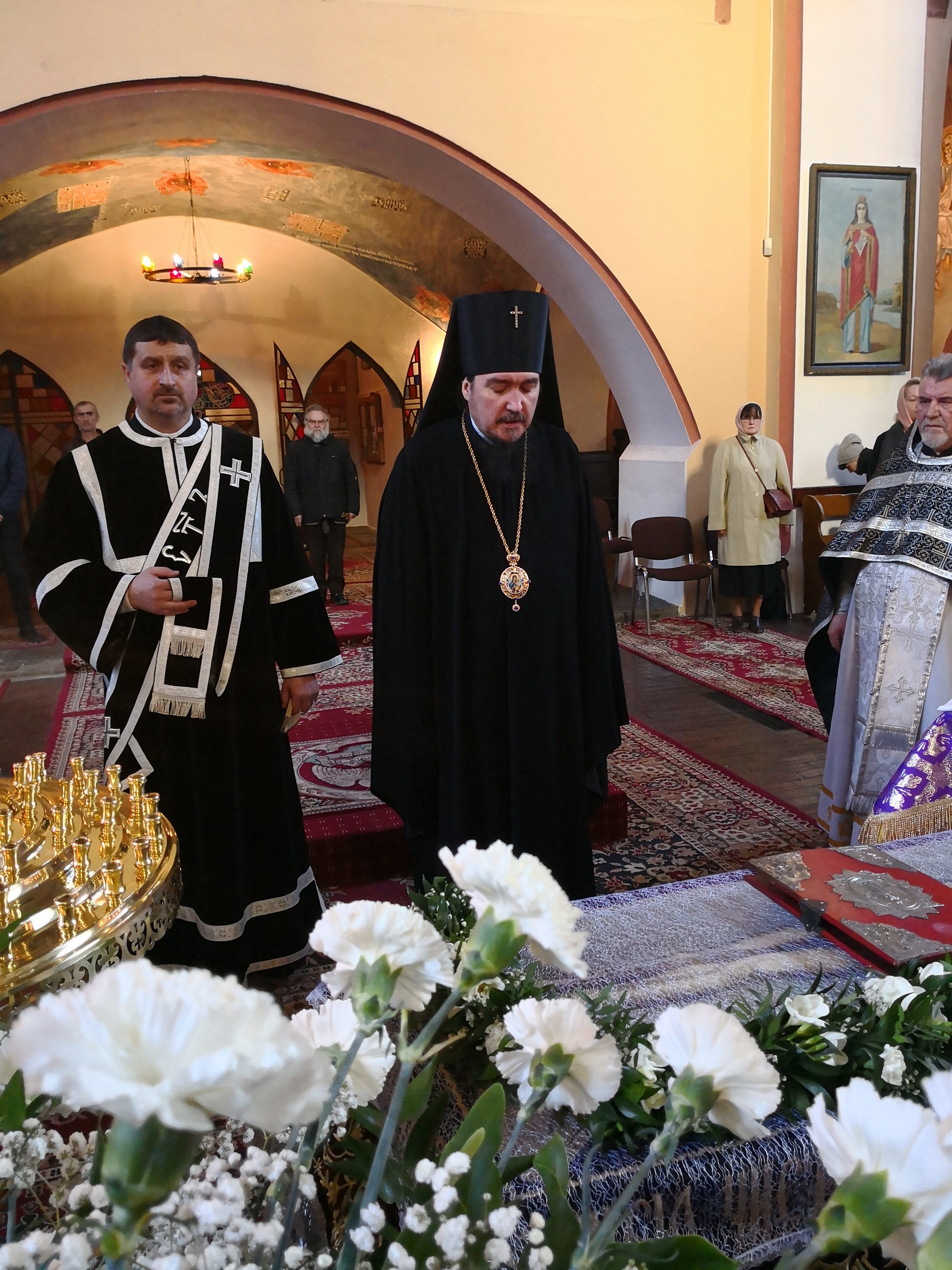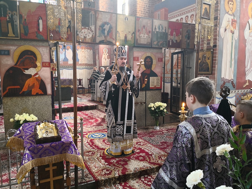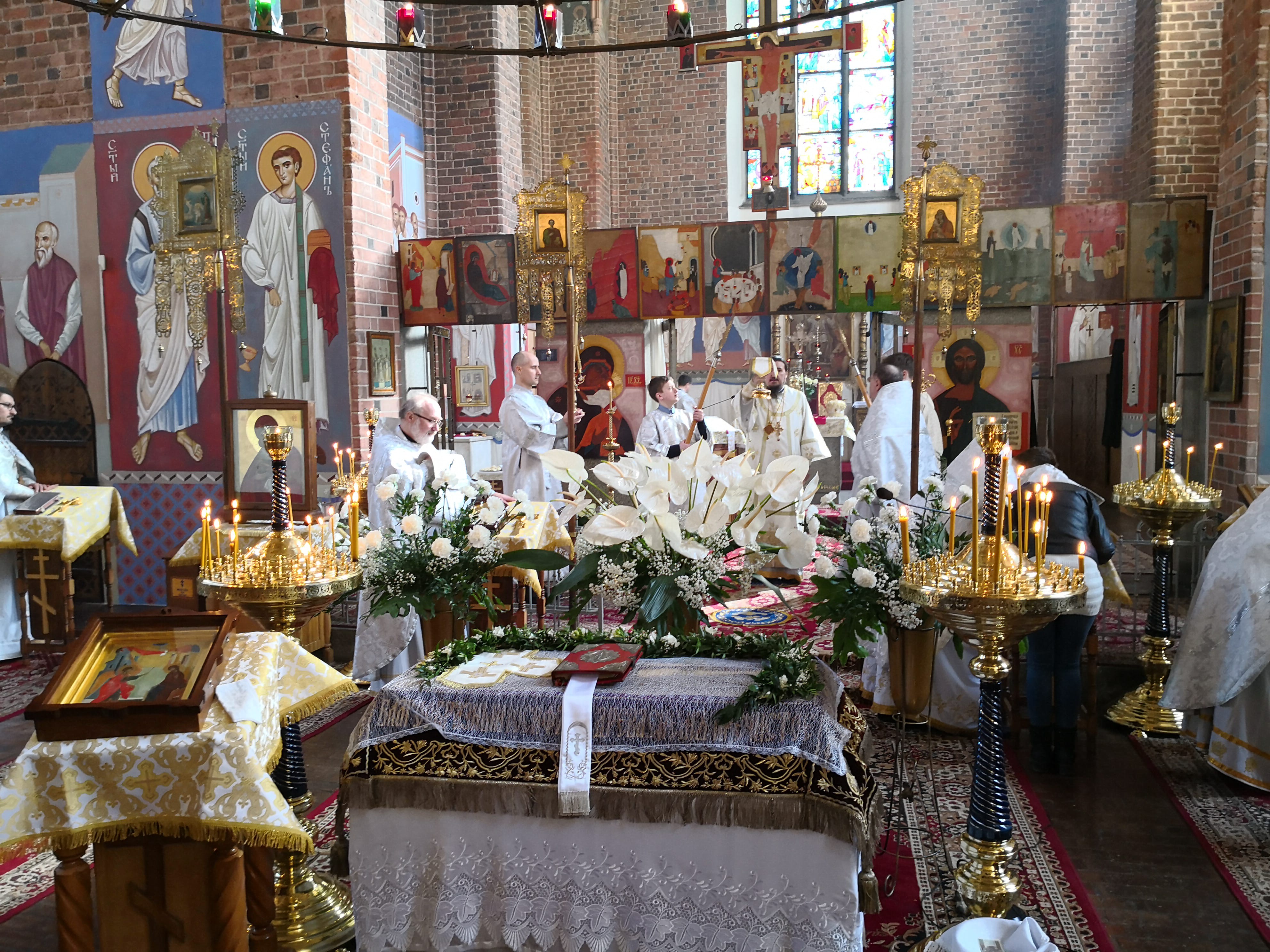 Po św. Liturgii Władyka Jerzy pobłogosławił chleby i wino, a następnie poświęcił przyniesione przez wiernych pokarmy paschalne.
