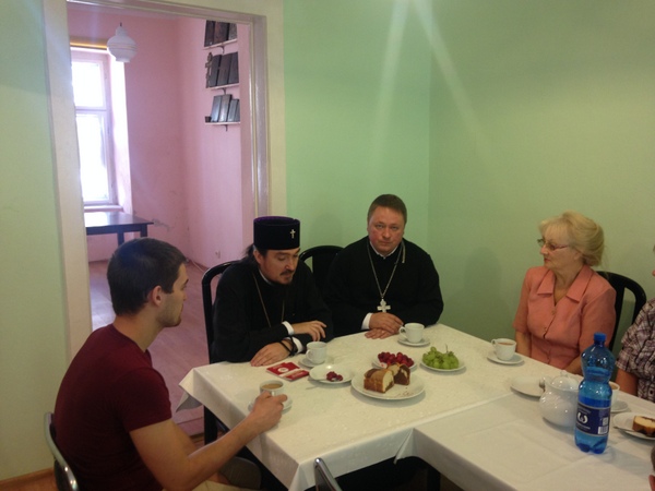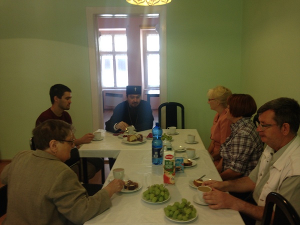 Następnie odbyło się spontaniczne spotkanie Arcybiskupa z wiernymi wałbrzyskiej parafii w kaplicy przy ul. Mickiewicza 31. Władyka poprzez rozmowy z parafianami i lekturę parafialnej kroniki zapoznał się z życiem wewnętrznym parafii. W słowie skierowanym do zebranych życzył błogosławieństwa bożego w życiu parafialnym. Parafianie natomiast, dziękując za wizytę hierarchy poprosili Władykę o modlitwę i częstą obecność w wałbrzyskiej parafii.