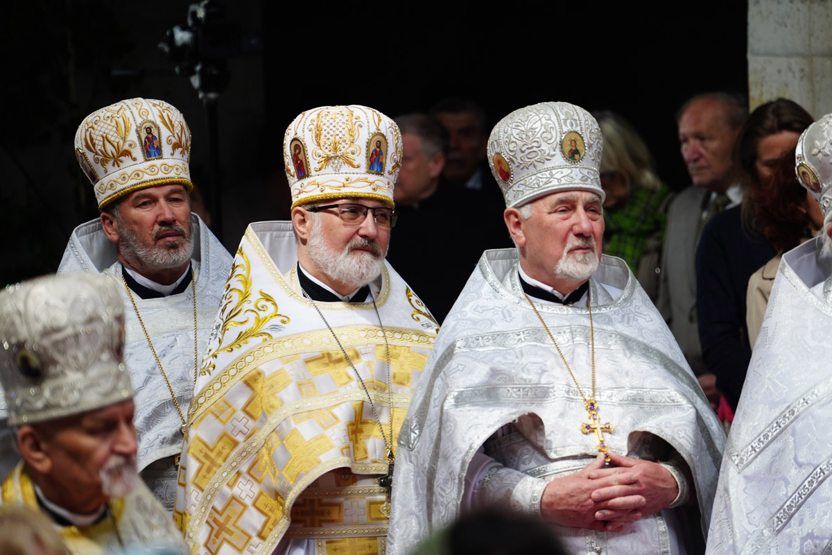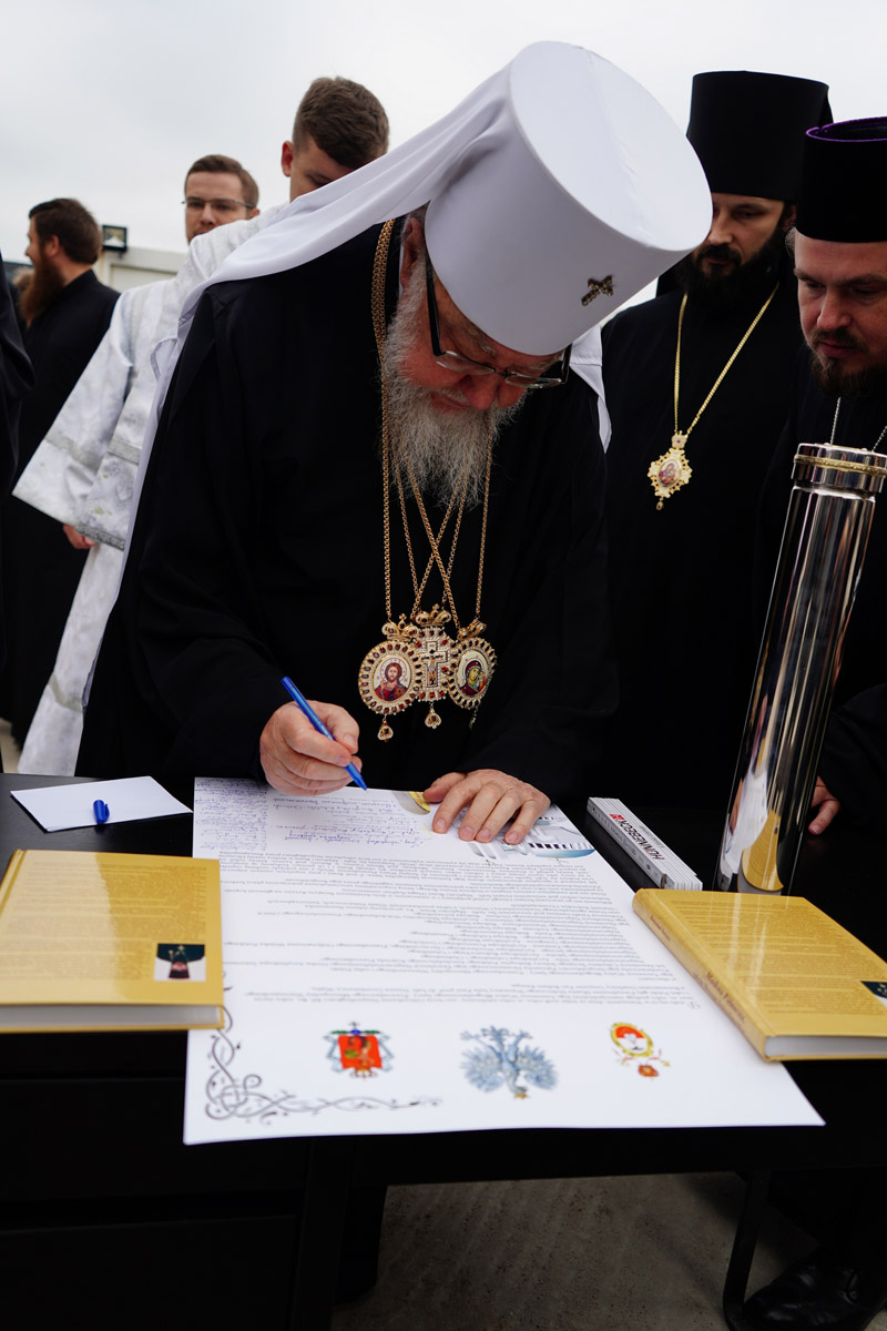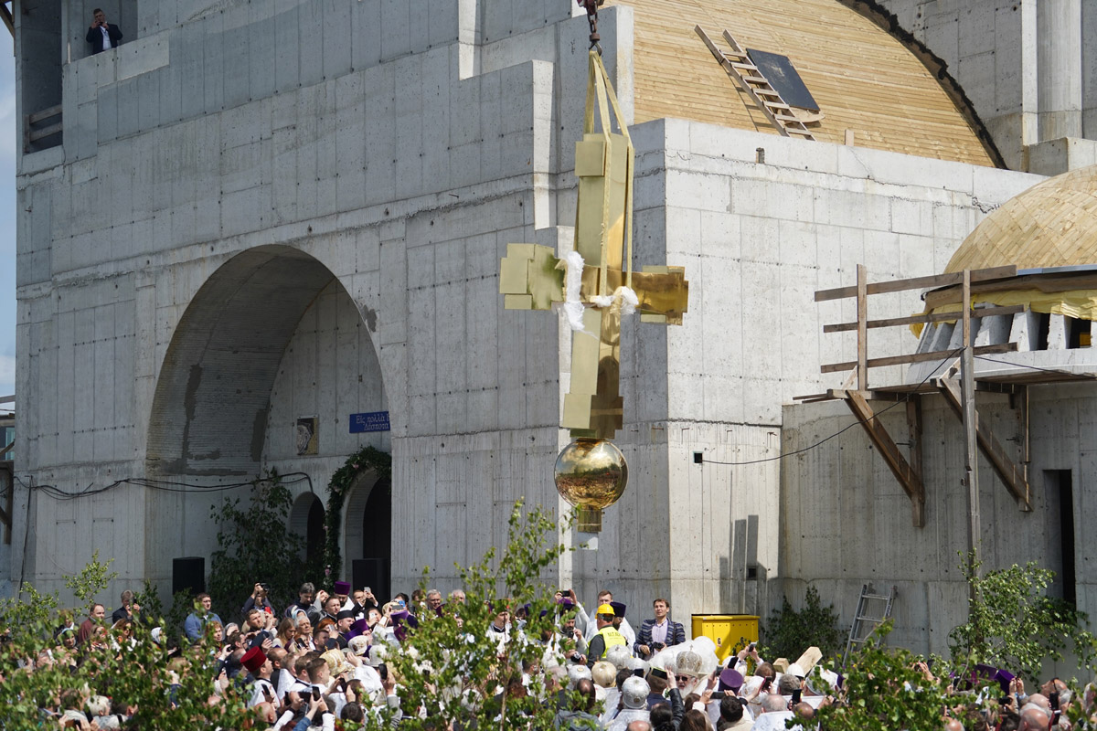 Po zakończeniu św. Liturgii wszyscy zebrani udali się przed cerkiew, gdzie miało miejsce doniosłe wydarzenie. Jego Eminencja dokonał poświęcenia czteroramiennego krzyża, wewnątrz którego umieszczony został specjalnie na tę okazję sporządzony akt. Następnie na oczach zgromadzonych, przy śpiewie troparionu poświęconego św. Krzyżowi zwieńczył on główną kopułę świątyni. Przy końcu uroczystości głos zabrał proboszcz nowej świątyni ks. Adam Siemieniuk podziękował Jego Eminencji za ojcowską troskę i uwagę, jaką przykłada na każdym kroku powstawania cerkwi Hagii Sophii