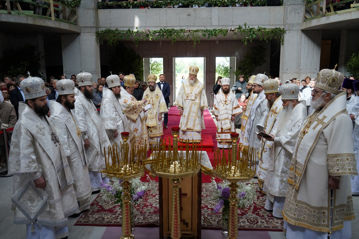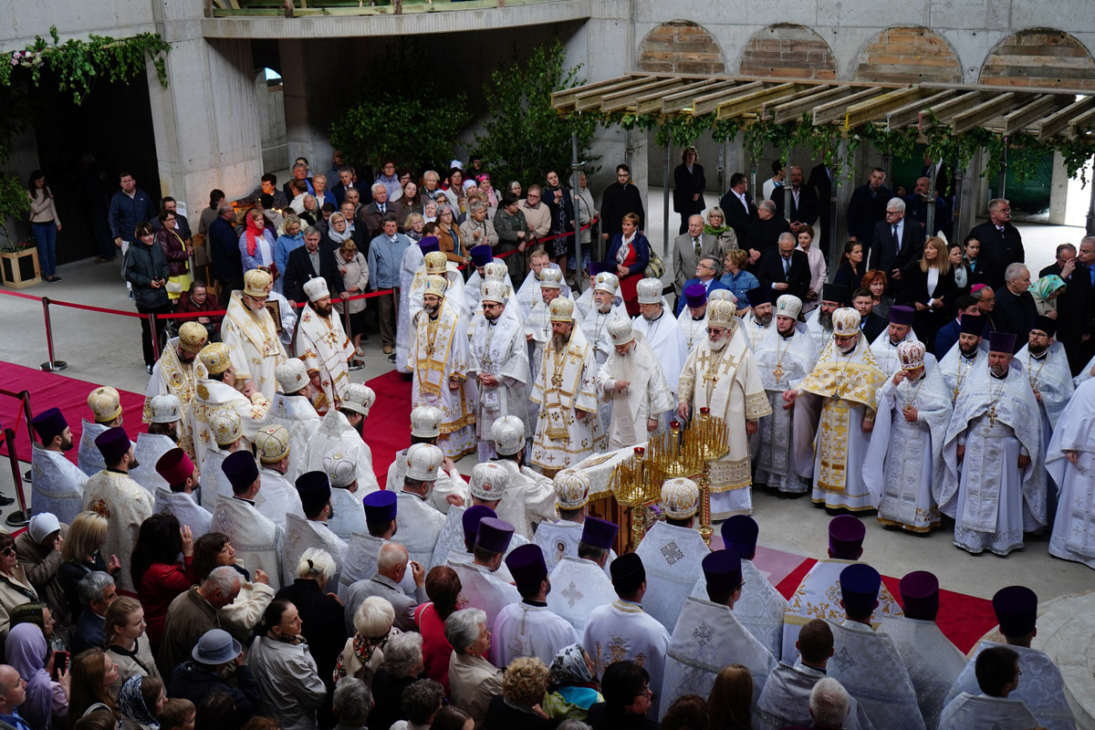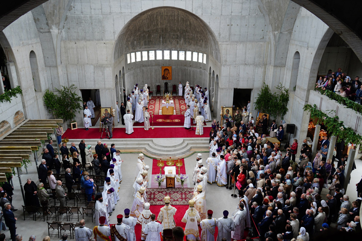 Po niespełna trzech latach od dnia poświęcenia placu oraz położenia kamienia węgielnego pod budowę warszawskiej cerkwi Hagia Sophia Mądrości Bożej doczekaliśmy się kolejnego niezwykle istotnego i historycznego wydarzenia. 19 maja br. po raz pierwszy w murach w.w. świątyni odprawiona została pierwsza św. Liturgia. Świętej Liturgii przewodniczył Jego Eminencja Metropolita warszawski i całej Polski Sawa, w asyście: arcybiskupa Telmessos Hioba z Patriarchatu Konstantynopolitańskiego, metropolity wołokołamskiego Hilariona reprezentującego Patriarchat Moskiewski, arcybiskupa lubelskiego i chełmskiego Abla, arcybiskupa białostockiego i gdańskiego Jakuba, arcybiskupa wrocławskiego i szczecińskiego Jerzego, arcybiskupa przemyskiego i gorlickiego Paisjusza, arcybiskupa bielskiego Grzegorza, biskupa łódzkiego i poznańskiego Atanazego, biskupa jużnienskiego Diodora (Ukraińska Cerkiew Prawosławnego), biskupa hajnowskiego Pawła, biskupa supraskiego Andrzeja, biskupa siemiatyckiego Warsonofiusza, oraz bardzo licznie zgromadzonego duchowieństwa. Cerkiew wypełniła się po brzegi nie tylko prawosławnymi mieszkańcami stolicy, ale i pielgrzymami z całej Polski i zagranicy. Obecni byli przedstawiciele duchowieństwa Kościoła Rzymskokatolickiego na czele z biskupem Michałem Janochą, korpusu dyplomatycznego jak też władz samorządowych dzielnicy Ursynów