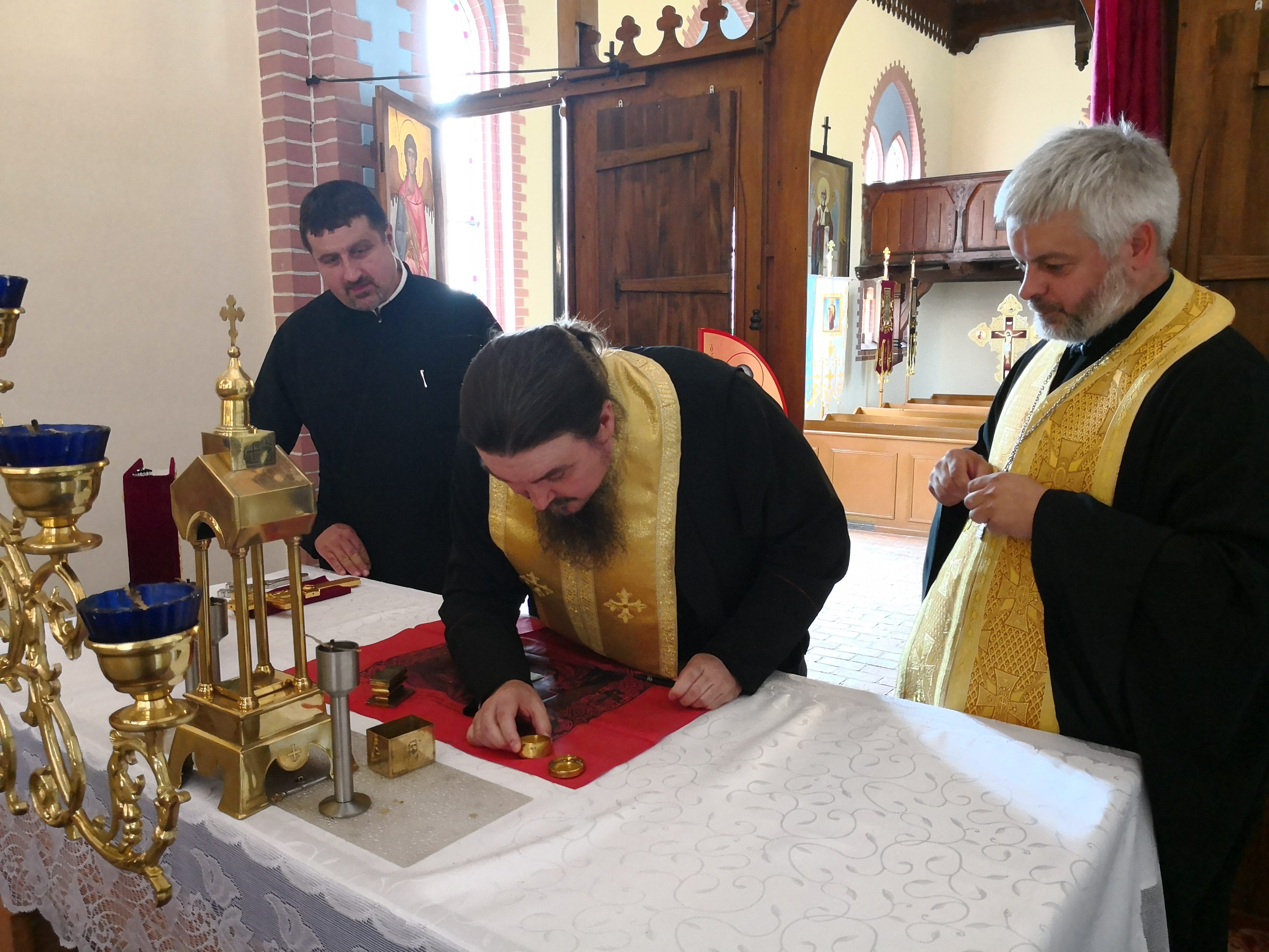 Arcybiskupowi Jerzemu towarzyszył sekretarz kancelarii arcybiskupiej ks. protodiakon Mieczysław Oleśniewicz.