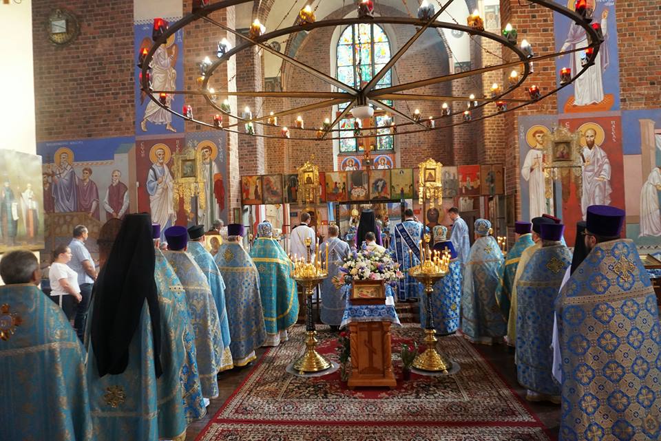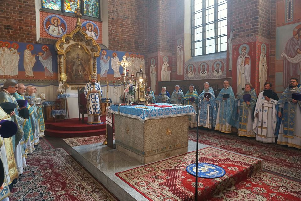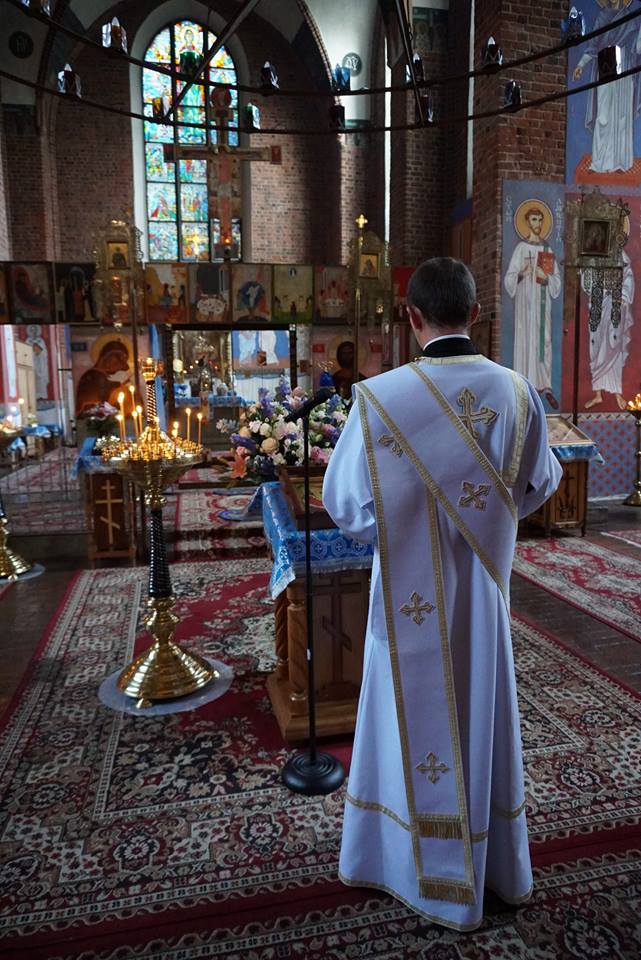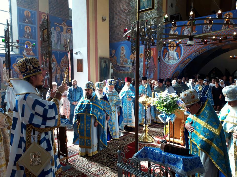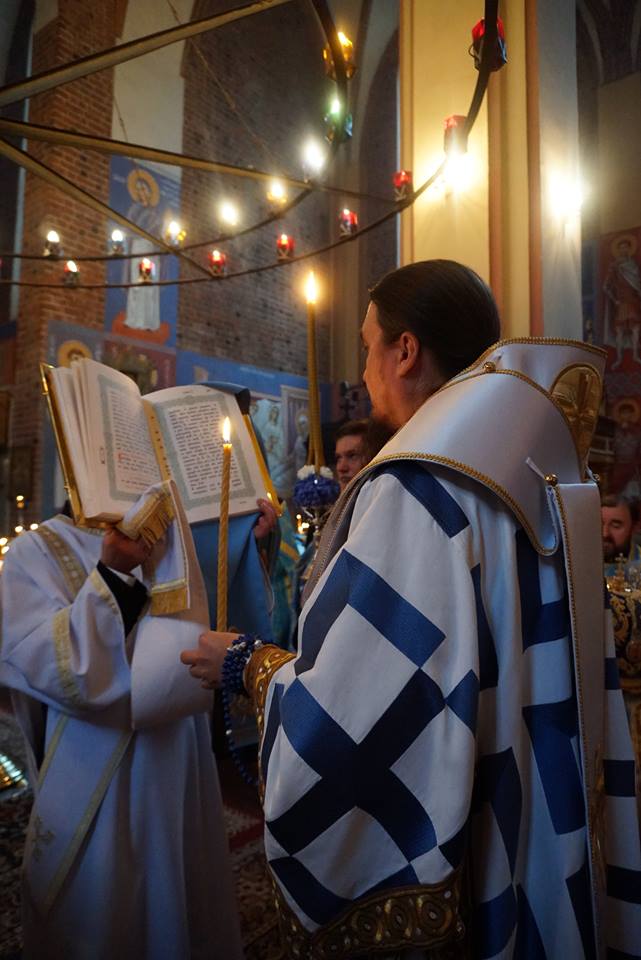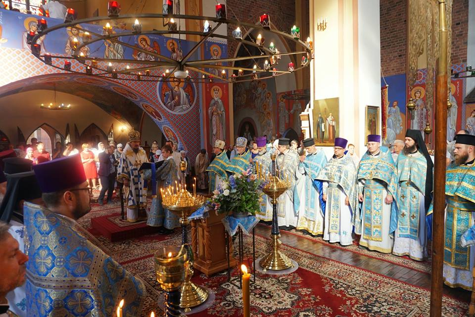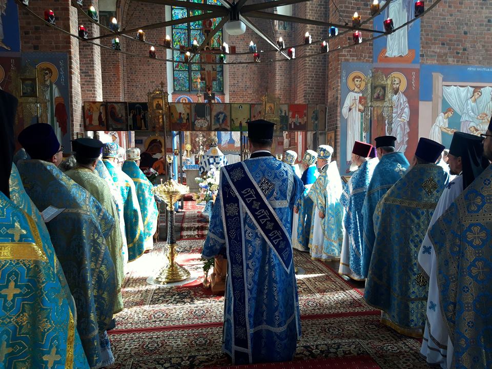 Podczas Boskiej Liturgii władyka Jerzy udzielił święceń kapłańskich diakonowi Tomaszowi Mędryckiemu, w akompaniamencie gromkich śpiewów Axios – godzien, najpierw współbraci kapłanów, a następnie całego zgromadzonego na nabożeństwie ludu. Po zakończeniu Boskiej Liturgii rozpoczął się świąteczny moleben, podczas którego udano się z procesją wokół świątyni. W trakcie procesji przy pomniku upamiętniającym błogosławionej pamięci abp. Jeremiasza odsłużono zaupokojną litiję. Na zakończenie molebna wznoszono modlitwy dziękczynne w związku z przypadającym w tym roku jubileuszem 100-lecia odzyskania przez Polskę niepodległości. Po zakończeniu Liturgii Władyka pozdrowił wszystkich zebranych. W szczególności zwrócił się do 80 letniego ks. mitrata Eugeniusza Cebulskiego, który obchodzi w tym roku 53-lecie kapłaństwa.