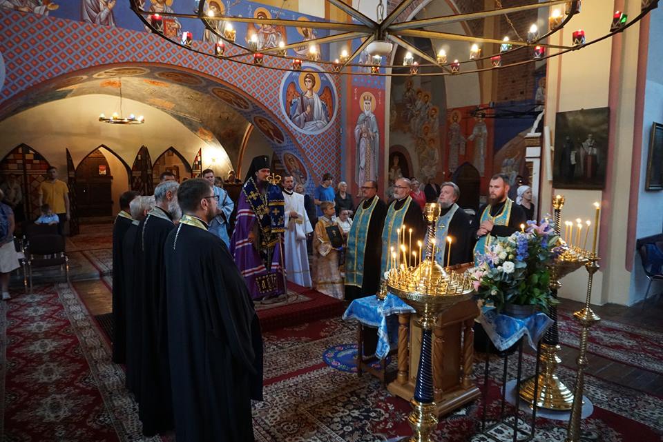 Uroczystości świąteczne rozpoczęły się w piątek wczesnym rankiem od małego oświęcenia wody, którego dokonał dziekan okręgu wrocławskiego ks. mitrat Aleksander Konachowicz. Przed rozpoczęciem Boskiej Liturgii naszego Arcypasterza w drzwiach świątyni powitały dzieci, prosząc władykę o błogosławieństwo i życząc nieustającej opieki Matki Bożej dla wszystkich wiernych. Następnie chlebem i solą powitał arcybiskupa starosta wrocławskiej katedry pan Mikołaj Zołotariew. Wewnątrz świątyni na Władykę oczekiwało 21 duchownych przybyłych na święto z całej diecezji.