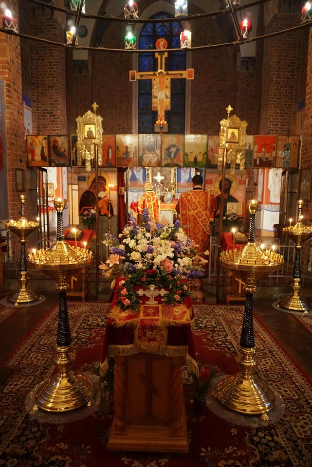 Zgodnie z liturgicznym porządkiem Cerkwi w przeddzień święta przed rozpoczęciem wieczerni, upiększony żywymi kwiatami Krzyż, przy śpiewie troparionu święta, przenoszony jest procesyjnie z żertwiennika na prestoł gdzie pozostaje do Wielkiej Doksologii. Przed Krzyżem umieszczana jest zapalona świeca.