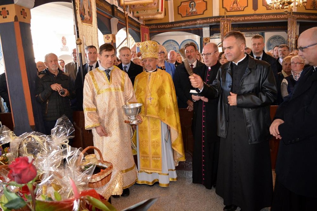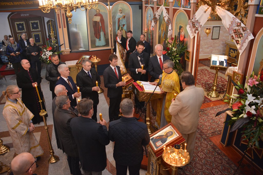 Prezydent Polskiego Związku Pszczelarskiego Waldemar Kudła poprosił o błogosławieństwo i modlitwę. Cerkiew wypełniła się po brzegi. W duchu ekumenicznej modlitwy obecni byli ks. Kanonik Krzysztof Mrukowicz proboszcz sąsiedniej parafii rzymskokatolickiej, ks. Jarosław Leśny kapelan pszczelarzy z ramienia Kościoła rzymskokatolickiego oraz proboszcz parafii grecko-katolickiej ks. płk. Bogdan Miszczyszyn. Obecni byli również przedstawiciele władz różnych szczebli w tym województwa, sejmu, senatu, starostwa. Władze lokalne reprezentował burmistrz Jerzy Szczupak.