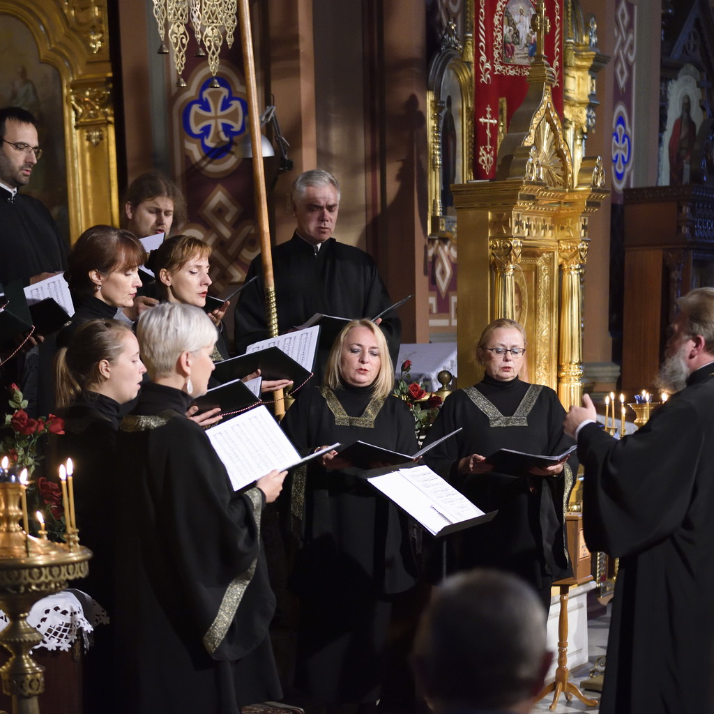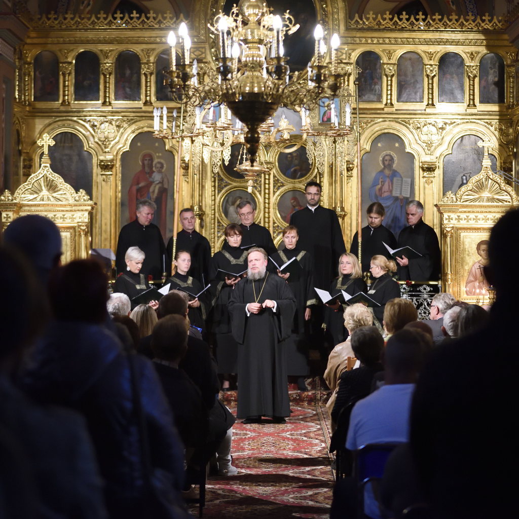 Chór gościł w Piotrkowie po raz czwarty i zaprezentował hymny z tradycji zarówno bizantyjskiej, jak i wschodniosłowiańskiej. Podczas koncertu zabrzmiały utwory średniowieczne oraz współczesnych kompozytorów.