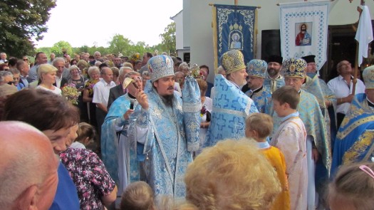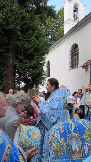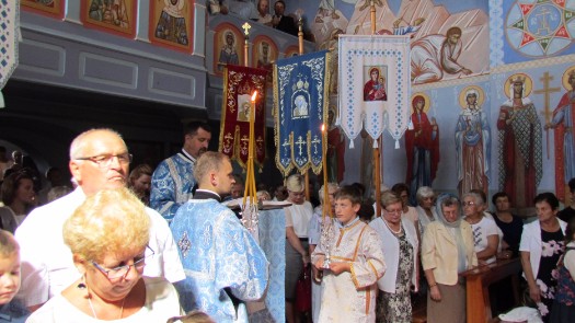 Po liturgii, podczas procesji wokół cerkwi hierarcha poświęcił w asyście licznie zgromadzonego duchowieństwa umieszczoną na ścianie świątyni, z lewej strony wejścia, wykonaną z czarnego granitu tablicę, upamiętniającą 70-lecie założenia parafii. Natomiast przed cerkwią poświęcił przyniesione przez tłumnie przybyłych na uroczystości jubileuszowe parafii w Zimnej Wodzie wiernych, zioła. W języku polskim wyjaśnił też istotę dzisiejszego święta, będącego nieziemskim dowodem pochodzenia chrześcijaństwa. – To święto jest przejściem z ziemskiej wędrówki do niebiańskiej Matki Bożej. (…) Często jesteśmy chorzy na ślepotę duchową, koncentrując się zbytnio nad tym, co przemijające. Nie widzimy tego, co wieczne – mówił. – Tam nie ma ani westchnień, ani choroby, nawet tęsknoty. Jak trudno jest nam zrozumieć, kiedy tracimy kogoś bliskiego(…) To święto przede wszystkim służy rozwijaniu w sobie ogromnych pokładów nadziei na to, że życie tamto jest nieporównywalnie innym, szczęśliwszym, a przede wszystkim nie mającym końca. Kto z nas ucieszyłby się na wiadomość, że umrze? Matka Boża, przepełniona radością, przygotowywała się do odejścia z tego świata. W tym święcie czerpiemy ogromna siłę dla przeżywania tajemnicy życia po śmierci. To święto jest radosne w swej istocie.