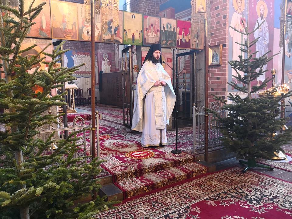 Po odczytaniu Ewangelii słowo do wiernych skierował o. Spirydon. Zwrócił on uwagę na postać św. Jana i świadectwo o nim, które padło z ust Chrystusa „Coście wyszli oglądać na pustyni? Trzcinę kołyszącą się na wietrze? Ale coście wyszli zobaczyć? Człowieka w miękkie szaty ubranego? Oto w domach królewskich są ci, którzy miękkie szaty noszą. Po coście więc wyszli? Proroka zobaczyć? Tak, powiadam wam, nawet więcej niż proroka. On jest tym, o którym napisano: Oto Ja posyłam mego wysłańca przed Tobą, aby Ci przygotował drogę. Zaprawdę, powiadam wam: Między narodzonymi z niewiast nie powstał większy od Jana Chrzciciela” (Mt 11, 7-11). Sam Jezus wskazuje, że Jan przewyższa swoją godnością wszystkich zrodzonych z niewiast, a więc Abrahama i Mojżesza oraz wszystkich proroków i sprawiedliwych Starego Testamentu. Przewyższa również apostołów, męczenników, prepodobnych i swiatitelej. Wszystkich zrodzonych z kobiety. W tym miejscu należy zadać sobie pytanie, któż zatem jest niezrodzony z kobiety? Adam, pierwszy człowiek ulepiony przez Boga z prochu ziemi oraz Bogoczłowiek Jezus Chrystus - Drugi Adam, Syn Boży, zrodzony przedwiecznie z Boga Ojca, który wcielił się dla naszego zbawienia z Ducha Świętego i Maryi Panny. Wszyscy pozostali ludzie, nawet najwięksi święci, są za Janem Chrzcicielem.