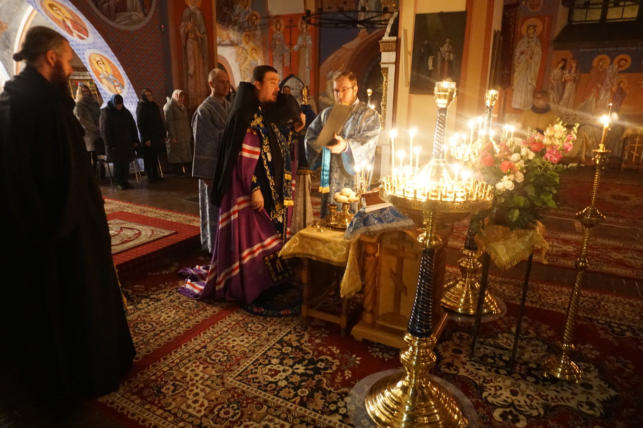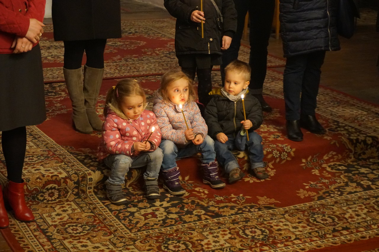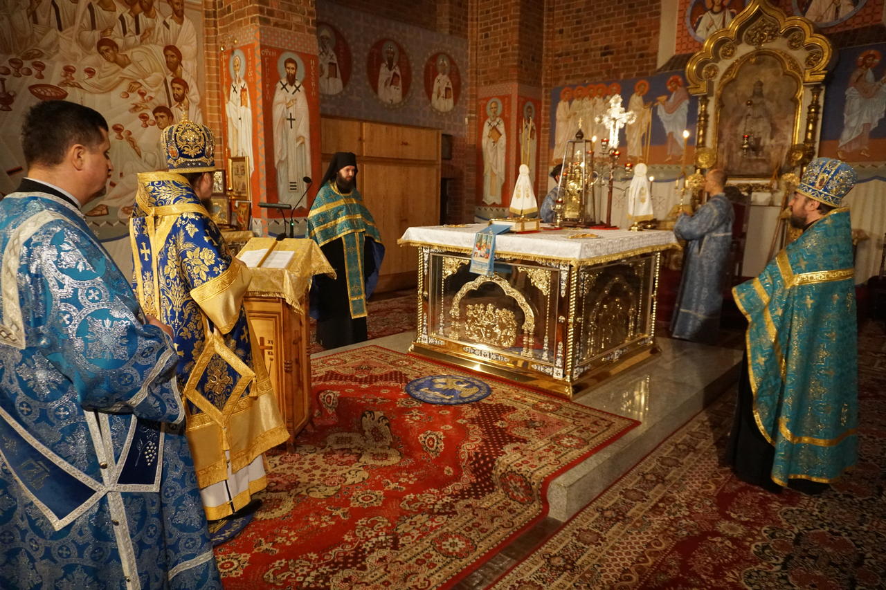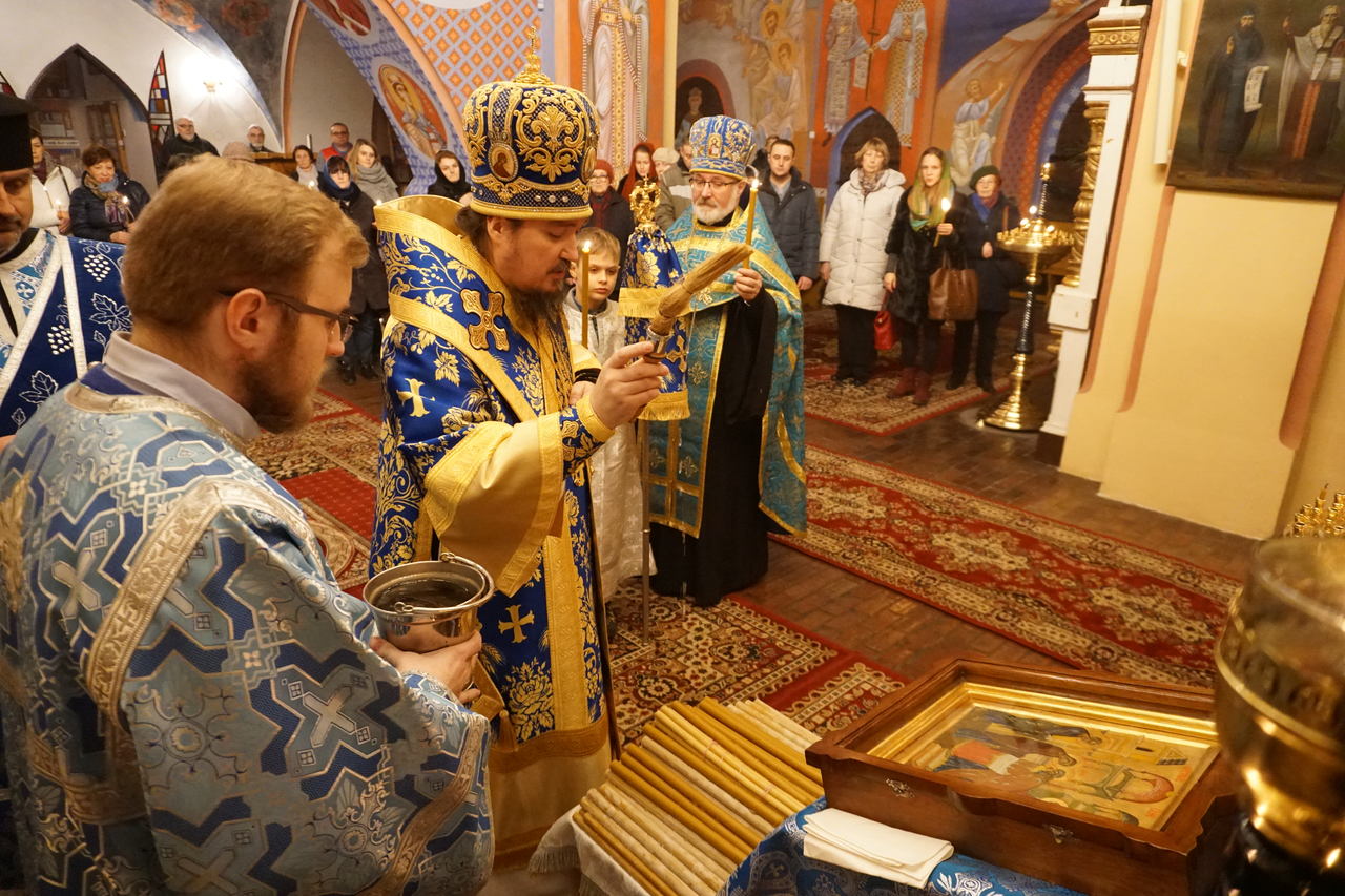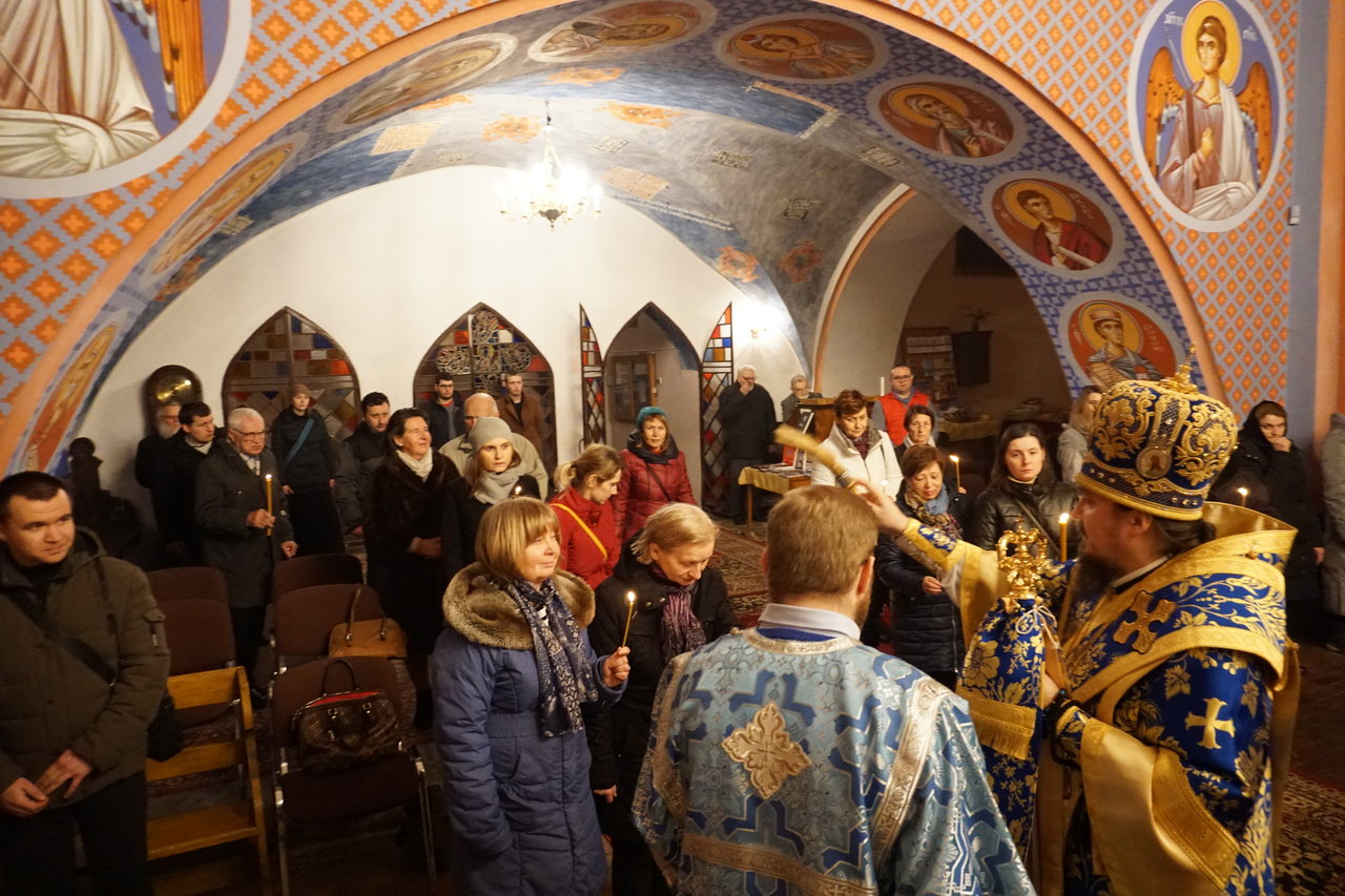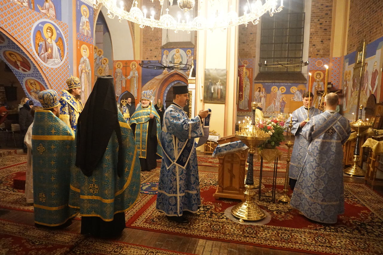 Podczas polieleju zabrzmiał fragment Ewangelii według św. Łukasza opisujący wydarzenie obchodzone w kalendarzu liturgicznym jako święto Spotkania Pańskiego: „A żył w Jerozolimie człowiek, imieniem Symeon. Był to człowiek prawy i pobożny, wyczekiwał pociechy Izraela, a Duch Święty spoczywał na nim. Jemu Duch Święty objawił, że nie ujrzy śmierci, aż zobaczy Mesjasza Pańskiego. Za natchnieniem więc Ducha przyszedł do świątyni. A gdy Rodzice wnosili Dzieciątko Jezus, aby postąpić z Nim według zwyczaju Prawa, on wziął Je w objęcia, błogosławił Boga i mówił: Teraz, o Władco, pozwól odejść słudze Twemu w pokoju, według Twojego słowa. Bo moje oczy ujrzały Twoje zbawienie, któreś przygotował wobec wszystkich narodów: światło na oświecenie pogan i chwałę ludu Twego, Izraela” (Łk 2,25-32).