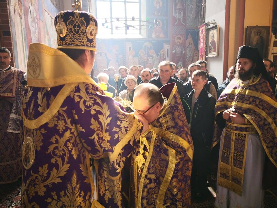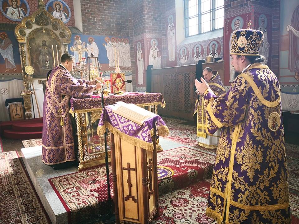 Po zakończeniu molebna, Jego Ekscelencja zwrócił uwagę na jeszcze jedno ważne wydarzenie. 45 lat temu w Niedzielę Tryumfu Ortodoksji, po 11 latach służby diakońskiej, święcenia kapłańskie przyjął ks. mitrat Konstanty Marczyk. W wyraz wdzięczności za łącznie 56 lat posługi przy ołtarzu, Jego Ekscelencja Władyka Jerzy wręczył ks. Marczykowi złoty krzyż kapłański z ozdobami. Następnie cała Cerkiew odśpiewała mnohaja leta dostojnemu jubilatowi.