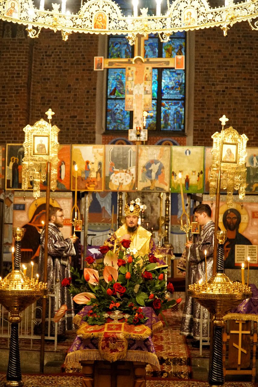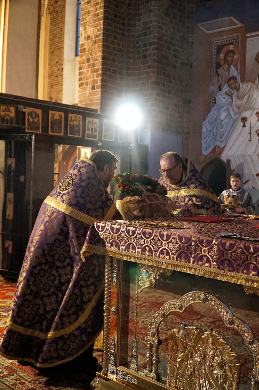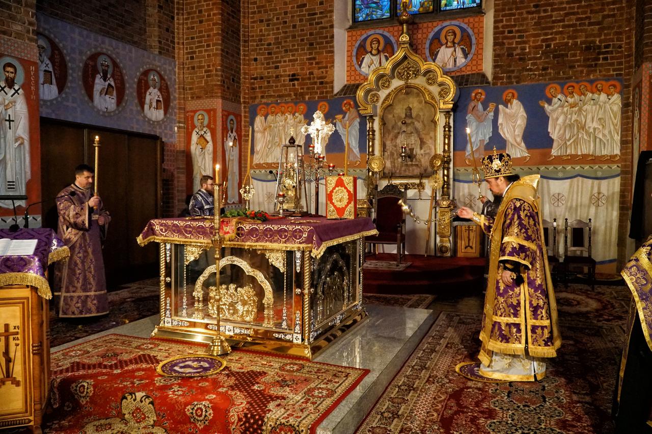 Po zakończeniu śpiewu, począwszy od Arcypasterza przez duchowieństwo i wiernych, każdy podchodził do leżącego na środku świątyni Krzyża, trzykrotnie kłaniając się świętości do ziemi, a następnie całując go. Dalej każdy został namaszczony poświęconym olejem oraz przyjął arcypasterskie błogosławieństwo od Władyki Jerzego. Krzyż będzie wystawiony na środku świątyni przez cały nadchodzący tydzień.