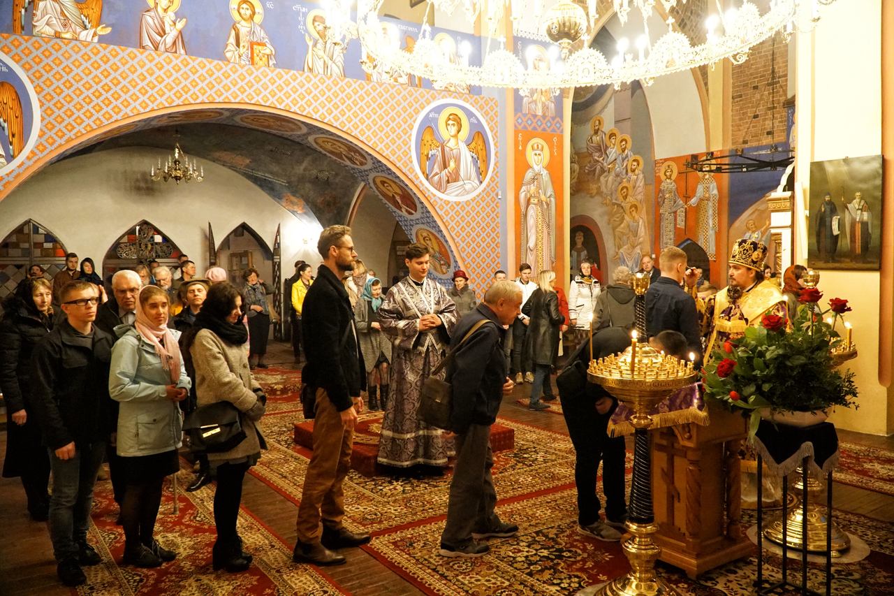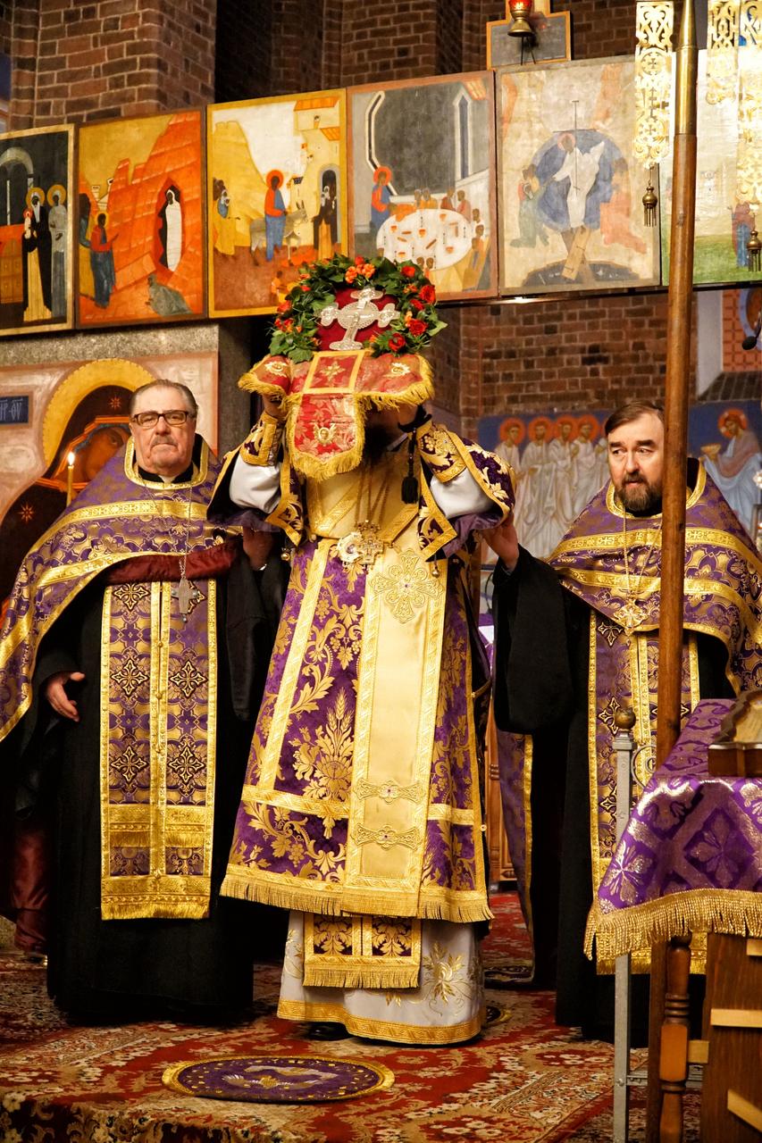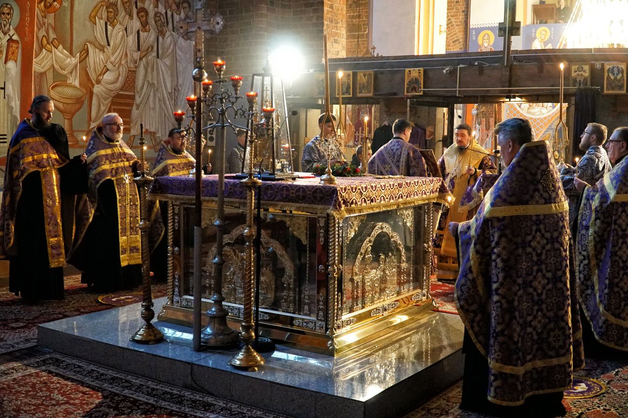 Po zakończeniu śpiewu, począwszy od Arcypasterza przez duchowieństwo i wiernych, każdy podchodził do leżącego na środku świątyni Krzyża, trzykrotnie kłaniając się świętości do ziemi, a następnie całując go. Dalej każdy został namaszczony poświęconym olejem oraz przyjął arcypasterskie błogosławieństwo od Władyki Jerzego. Krzyż będzie wystawiony na środku świątyni przez cały nadchodzący tydzień.