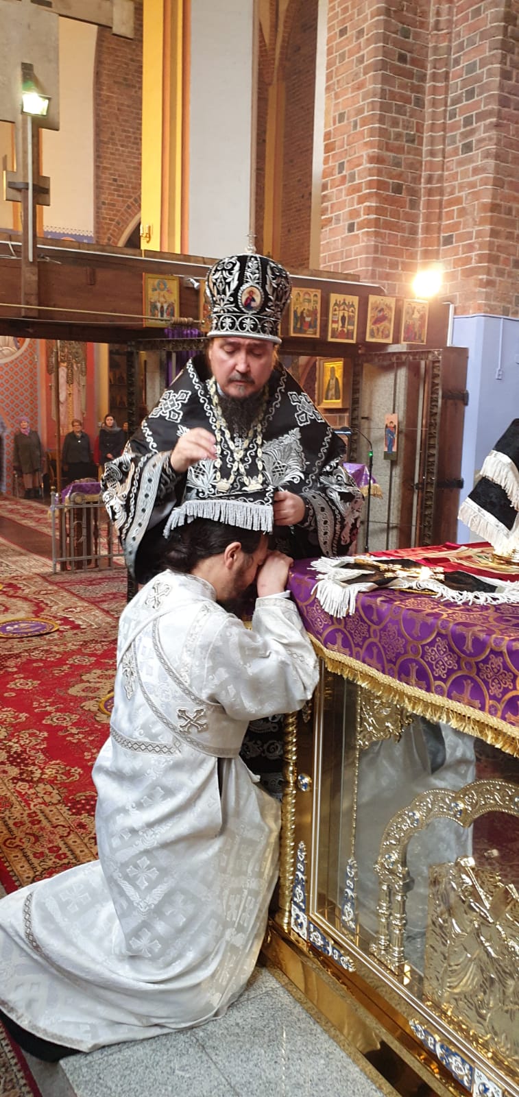 W piątek rano Jego Ekscelencja abp Jerzy wraz z duchowieństwem diecezji sprawował Boską Liturgię Uprzednio Poświęconych Darów. Podczas nabożeństwa śpiewał chór Oktoich pod dyrekcją ks. Grzegorza Cebulskiego. W trakcie Liturgii Władyka Jerzy udzielił święceń diakonatu mnichowi Łukaszowi (Pająk). Nowo wyświęcony o. Łukasz będzie tak jak dotychczas pełnić swoją posługę w parafii św. Arch. Michała w Sokołowsku.